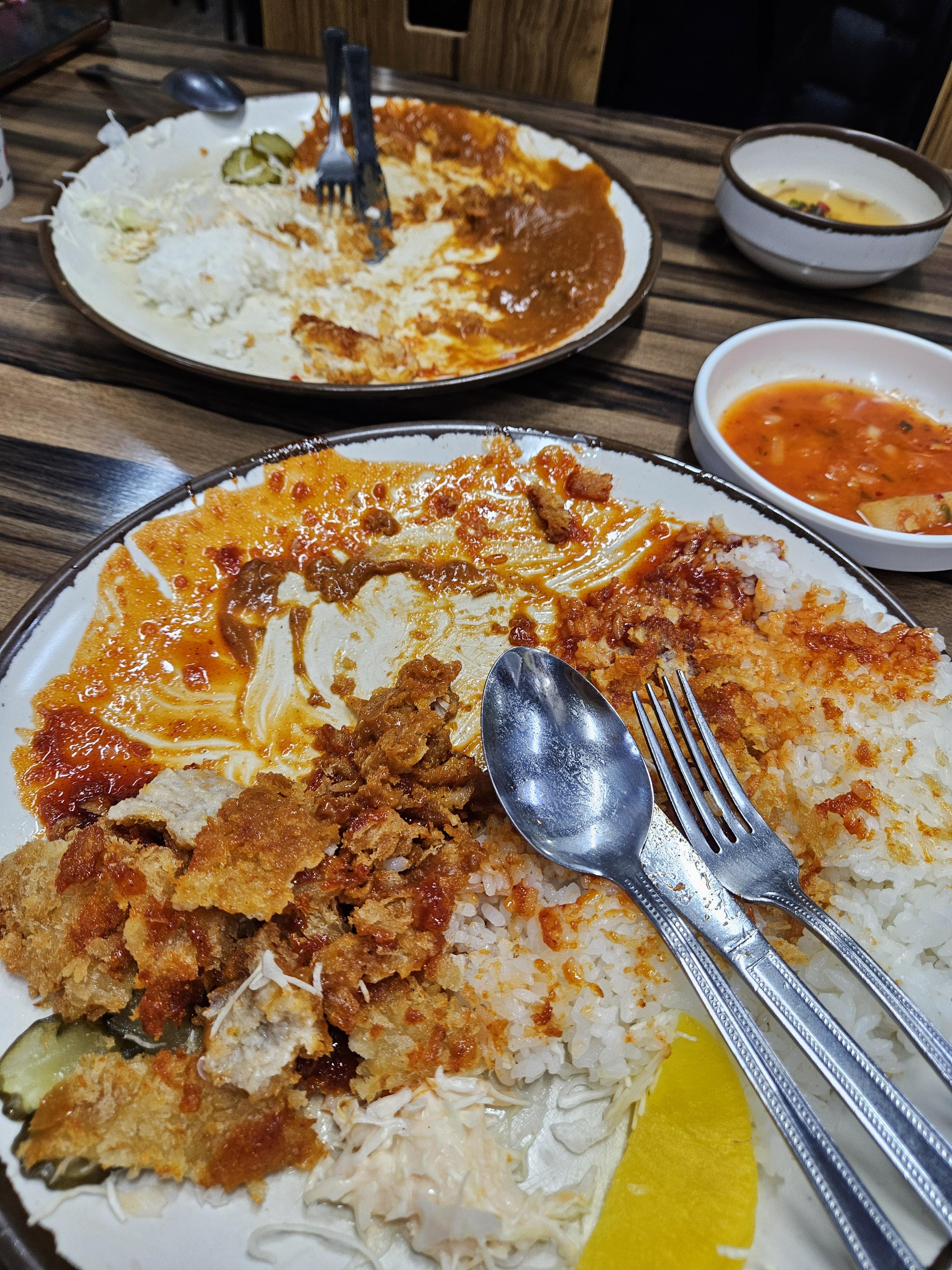 첫 방문한 게 10년도 더 된 것 같은데 유튜브가 활성화되고 개인방송 먹방 BJ들이 엄청나게 많이 촬영 후 소개해서 그런지 여전히 매운맛과 돈가스를 사랑하는 사람들의 발길이 끊이질 않는 모양이다.