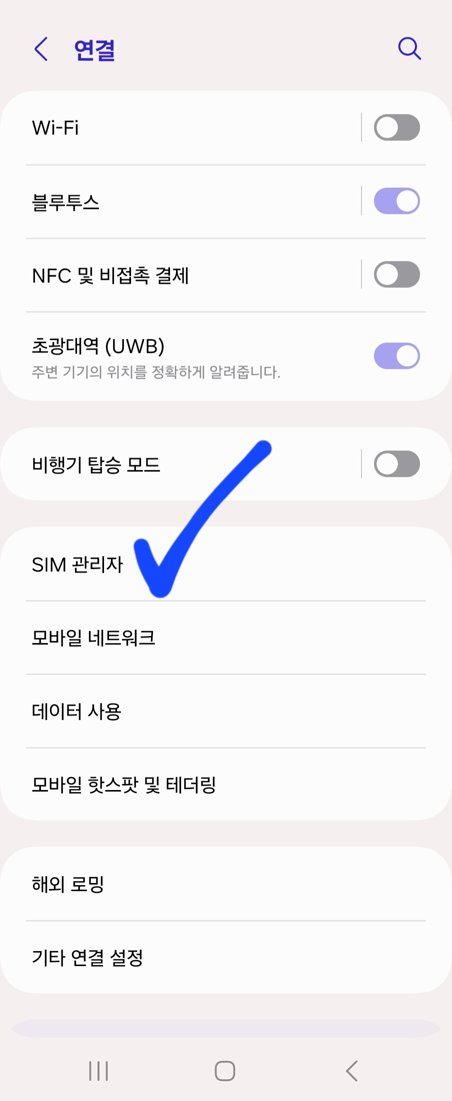 설정 > 연결 > SIM관리자 > E-sim 추가