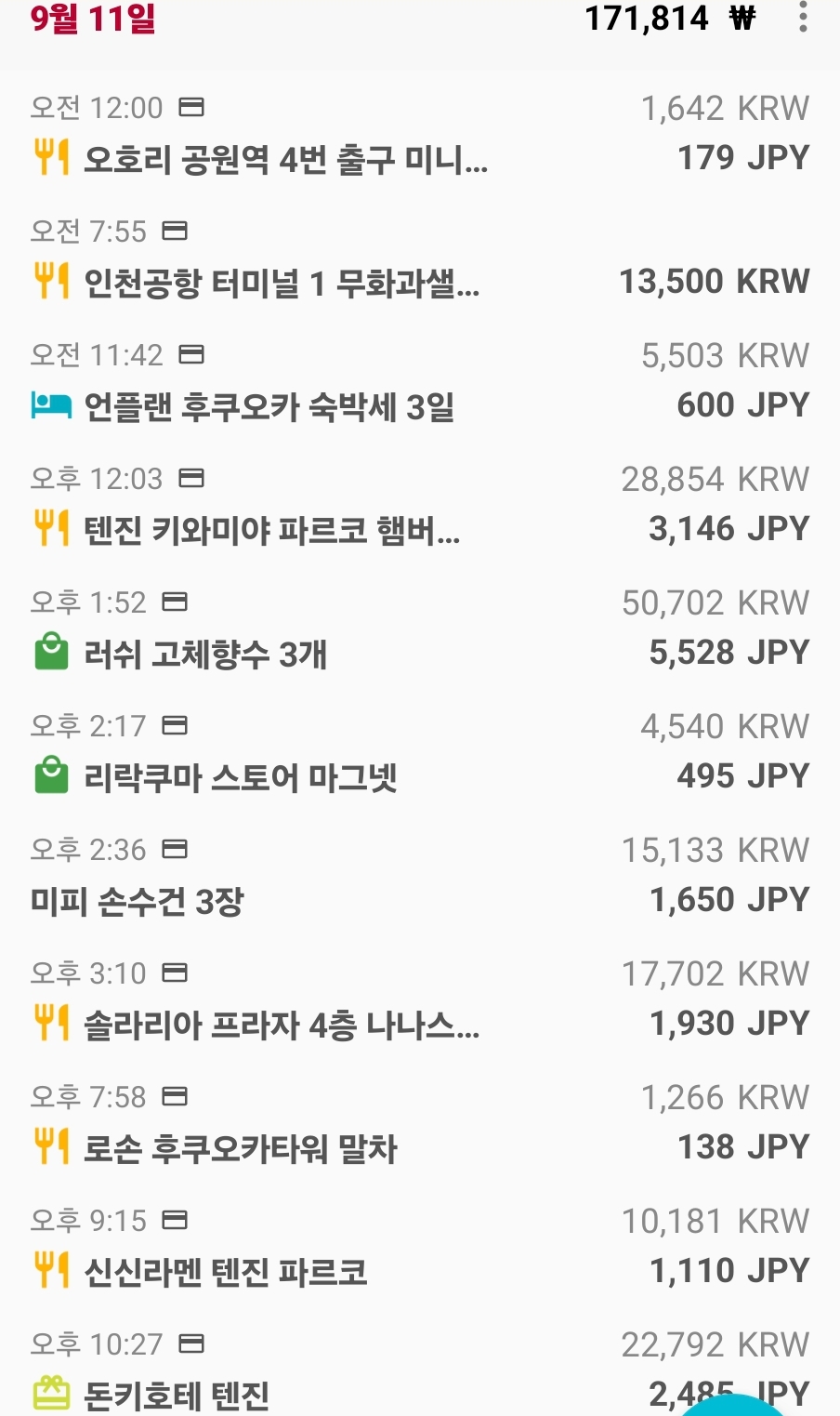 여행전 면세점 쇼핑 제외 여행 준비 지출금액과 여행중, 여행후 지출 비용을 기록해보려 함.