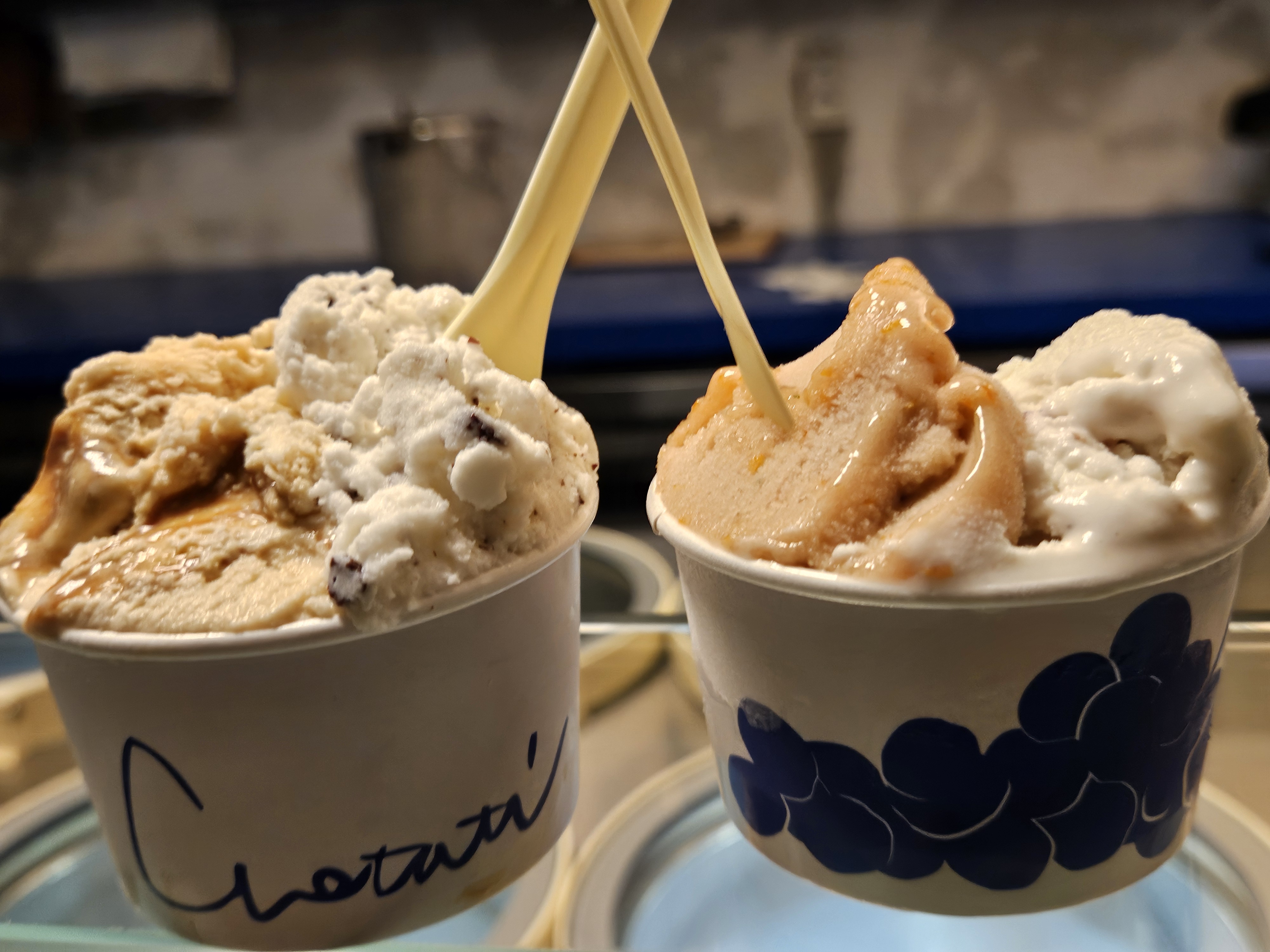 젤라또 종류는 프리미엄(7천) 3가지. 스탠더드(6천) 11가지 있었고 한 컵에 2가지 맛 선택 가능한데 프리미엄 + 스탠더드의 경우 프리미엄 가격인 7천 원 받는다고 함. 가격이 착한 편은 아님.