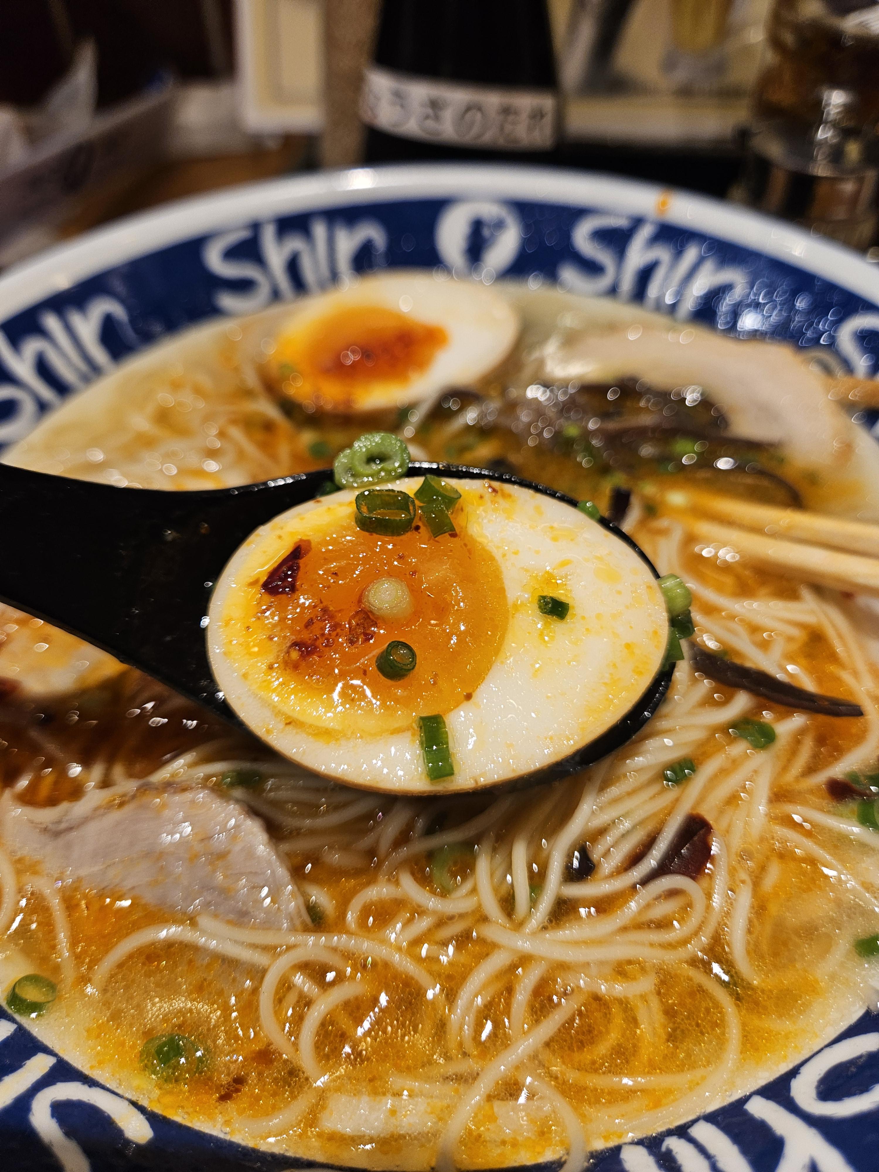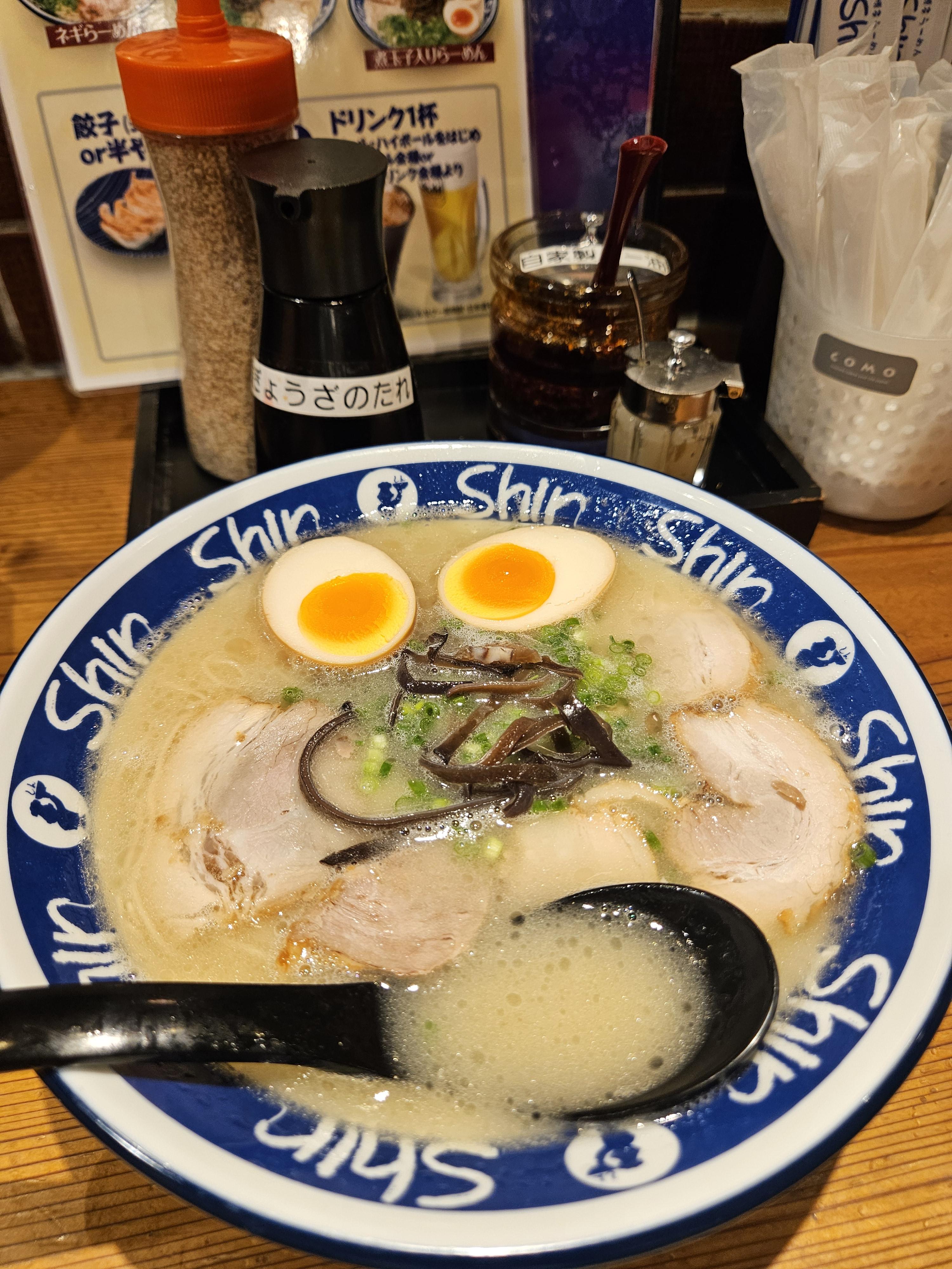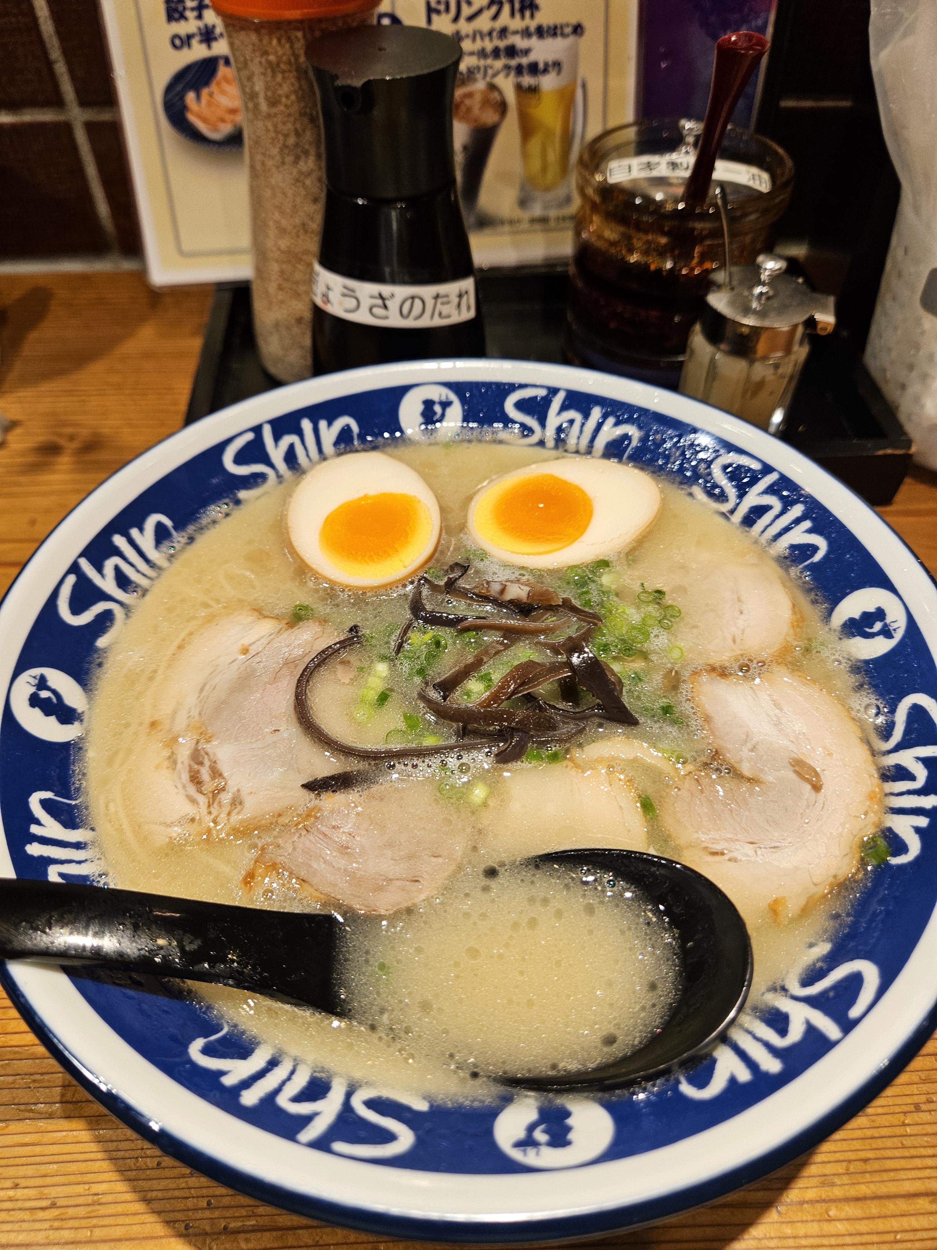 여행 첫 날밤 저녁을 뭘 먹을지 고민하다가 모츠나베, 닭 전골, 야키니쿠 등 후쿠오카에서 유명한 음식 혼자 먹기엔 적합한 메뉴가 아니다 싶어 혼자 간단히 먹을 수 있는 메뉴로 라멘 만한 게 없어 라멘 맛집 검색하다 알게 된 신신라멘.