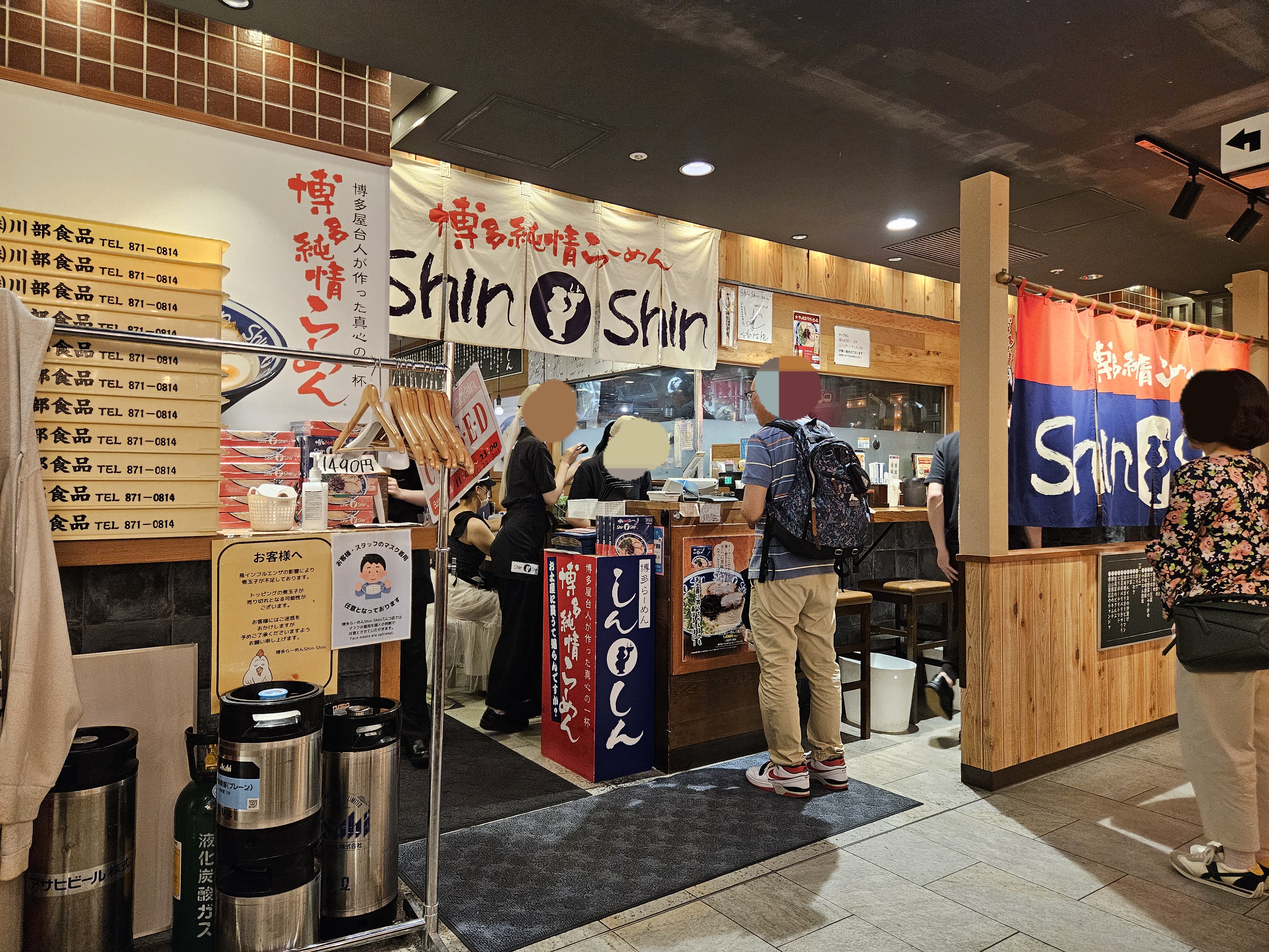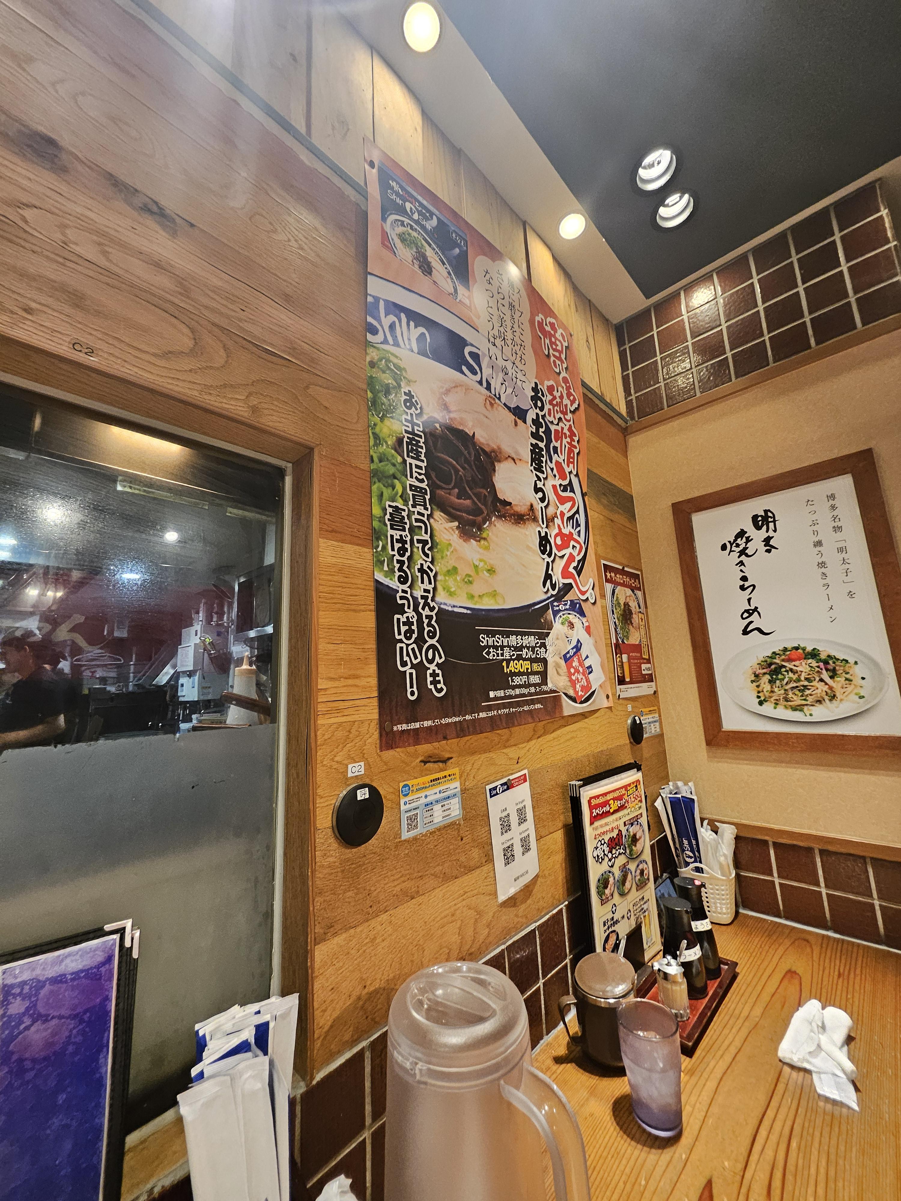 키와미야 옆에 라멘집이 있었는데 거기가 신신라멘인가 싶어 갔는데 간판이 아니었음 ㅎㅎ 안내도 보고 찾아보니 영어로 신신이라 적힌 큼지막한 현수막 같은 게 보여서 바로 식사 가능한지 살폈는데