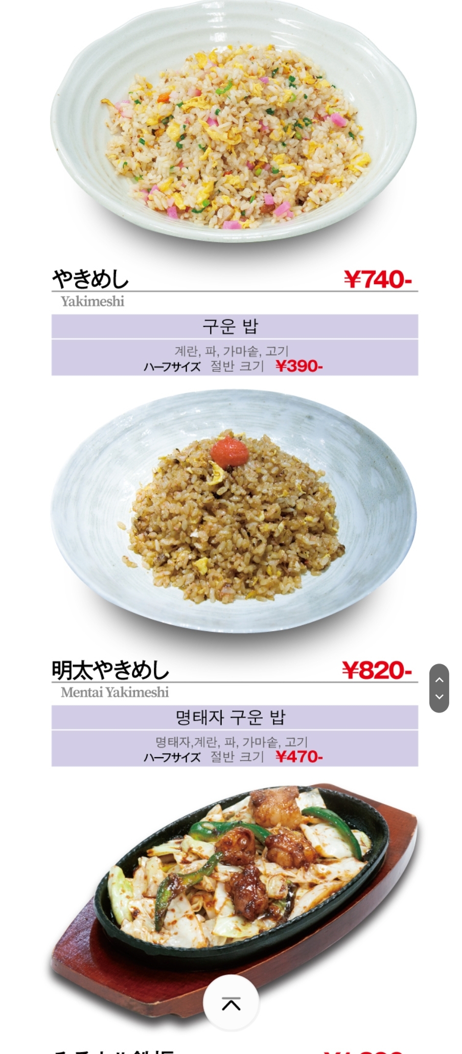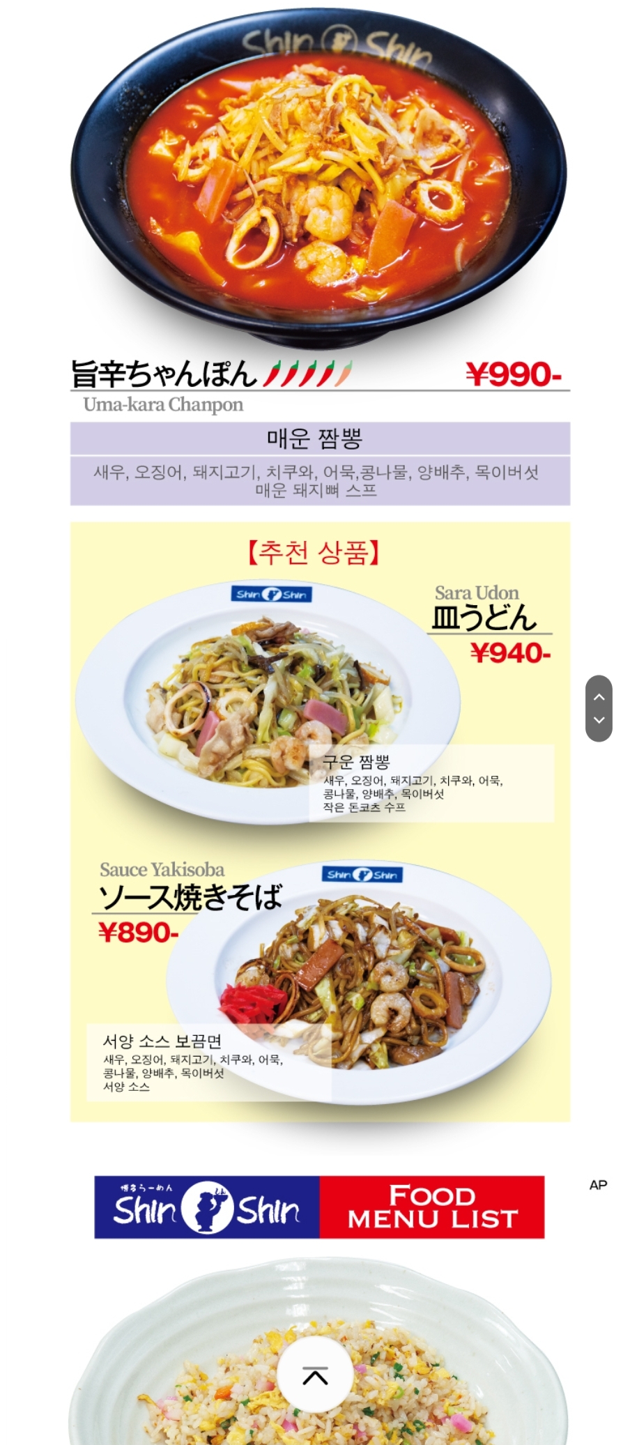 외국인을 위한 메뉴 리스트 QR마크가 한 영 일 중 4개 국어가 있어서 한국어 QR 읽어 좀 더 편하게 살펴보면서 캡처해 왔음.