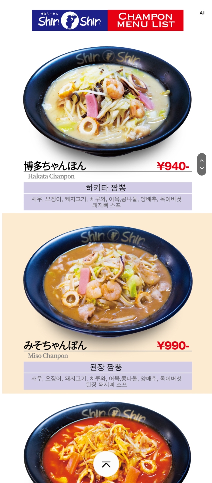 후쿠오카 텐진 파르코 일본 현지인 라멘맛집 신신라멘