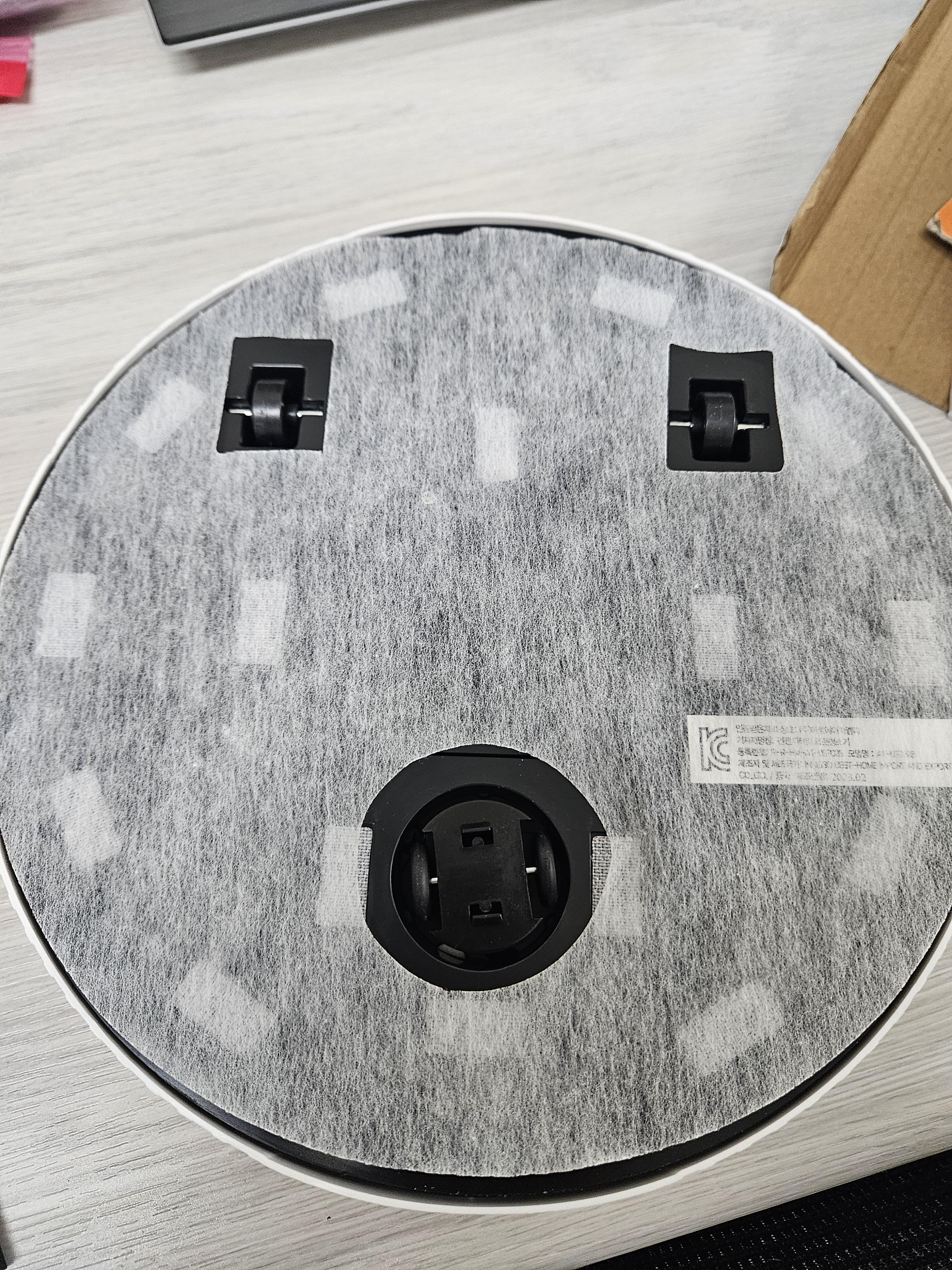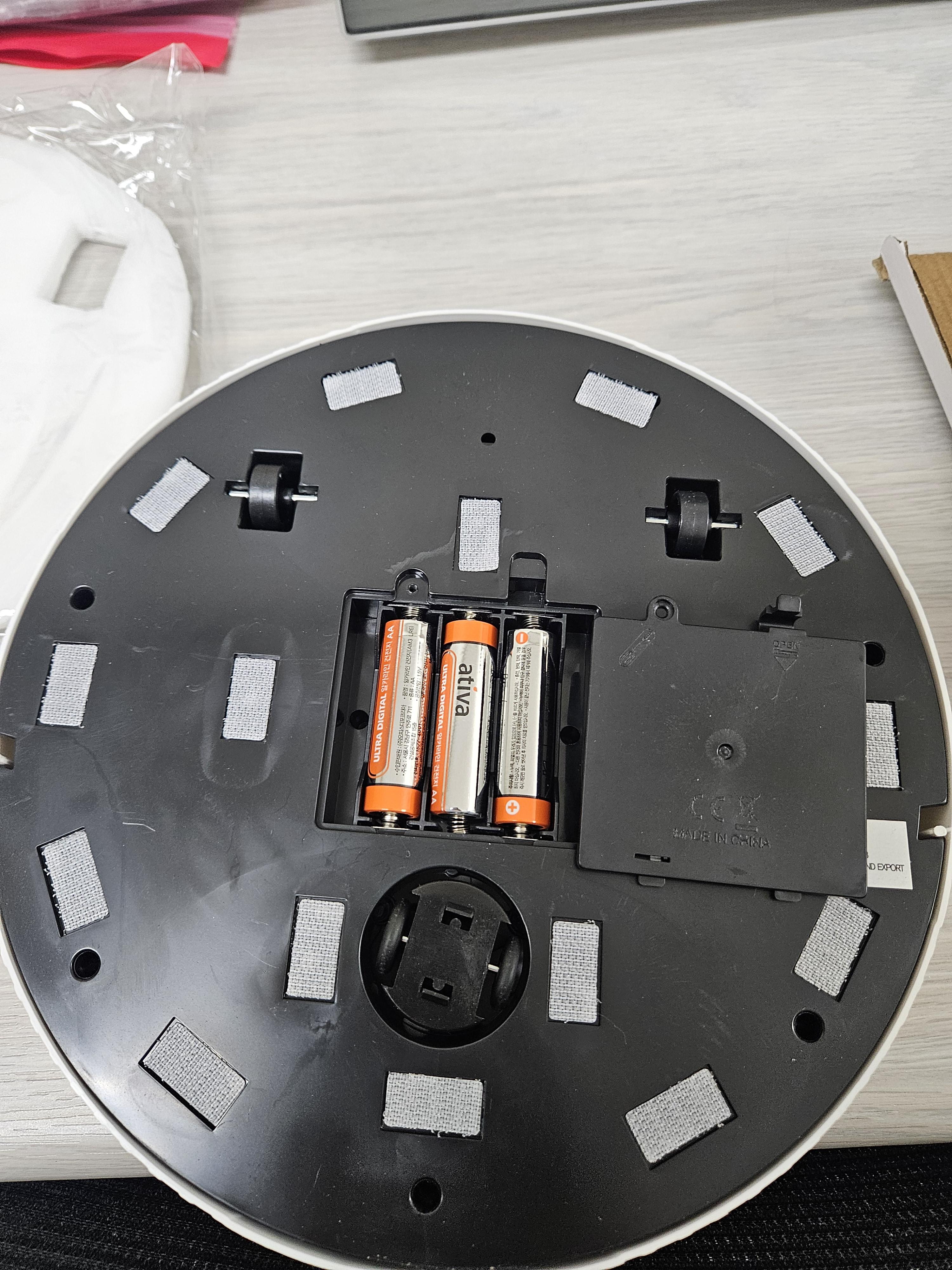 먼저 건전지부터 넣으라고 설명서에 안내되어 있지만 클린 로봇 하단부에 있는 16개의 홈에 찍찍이 스티커 먼저 부착했다.