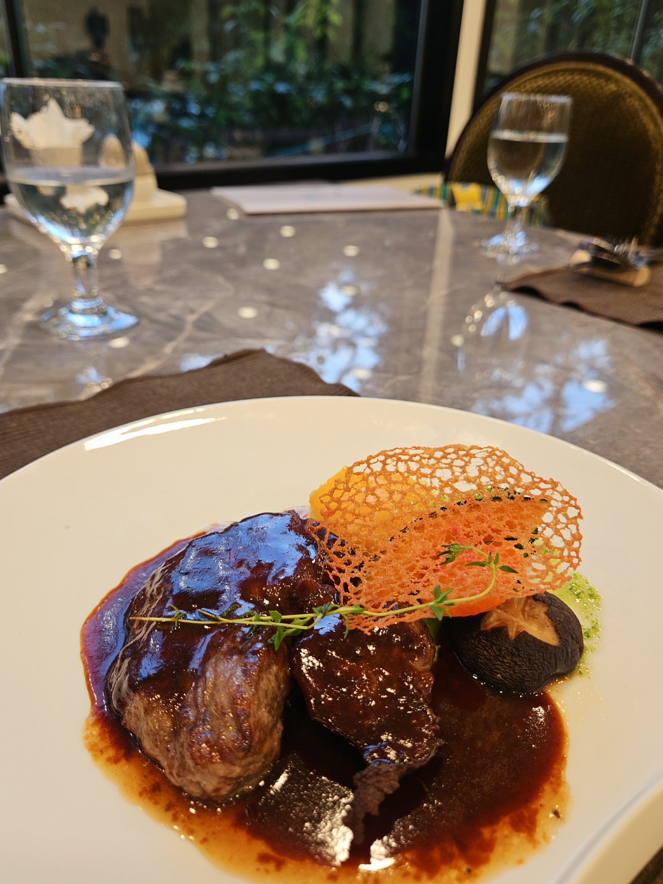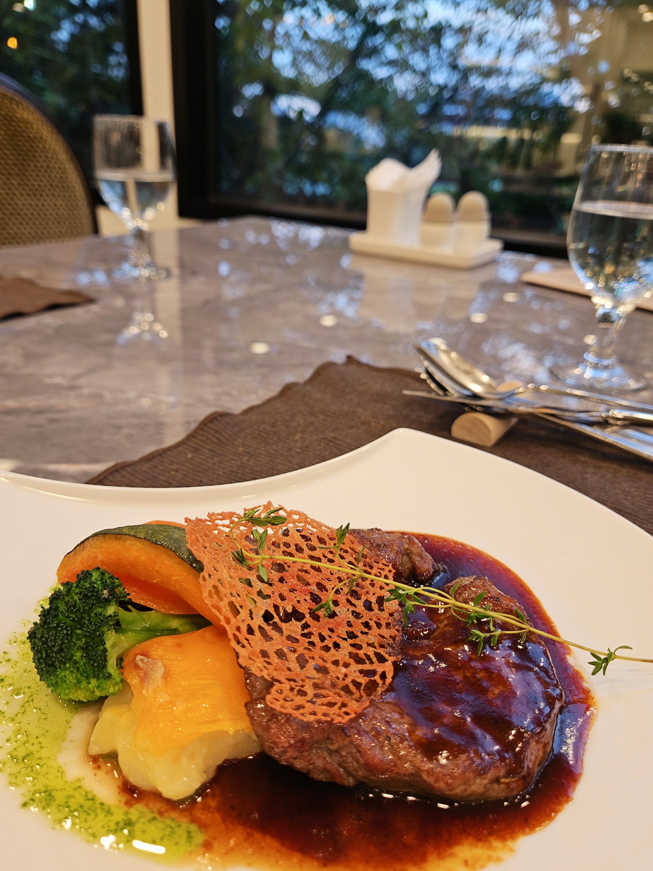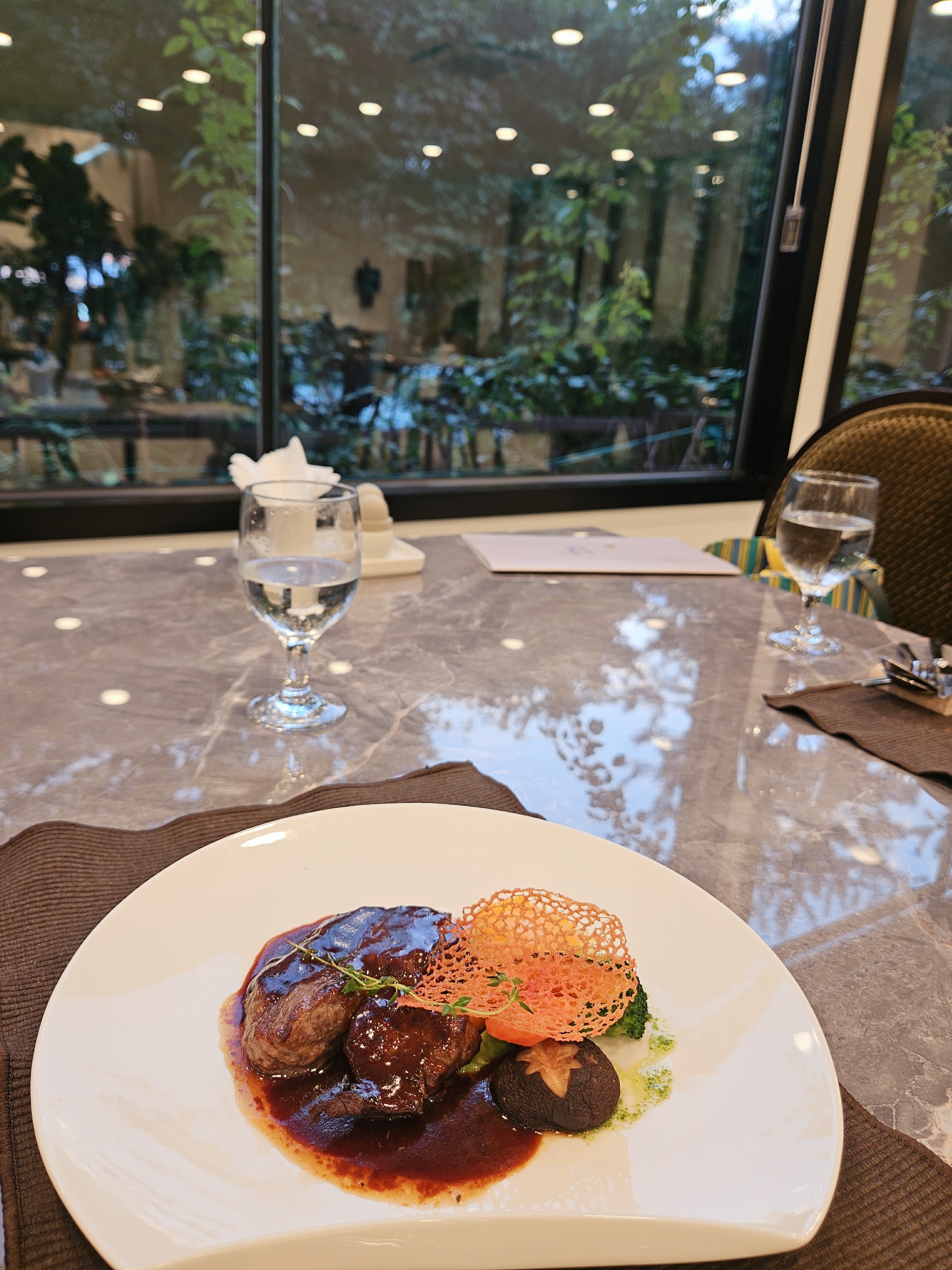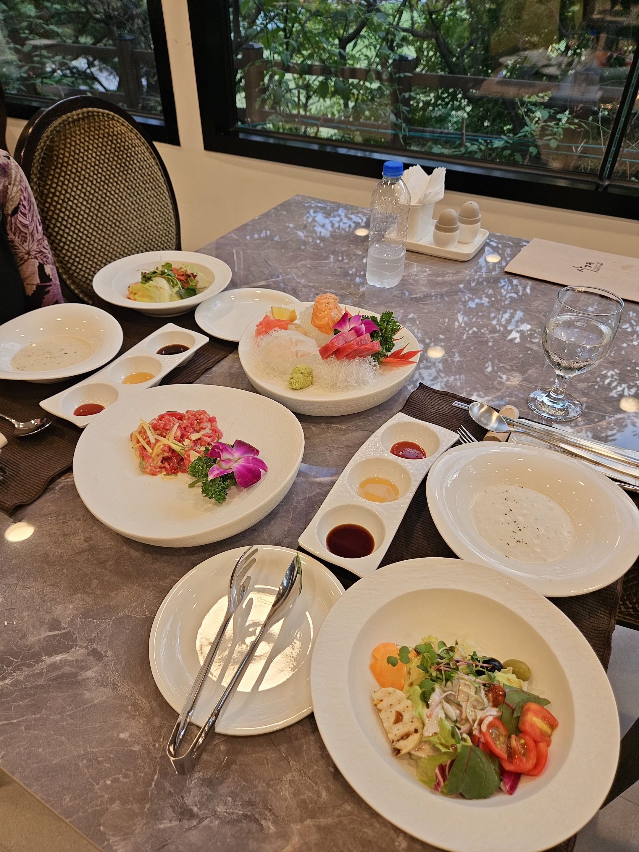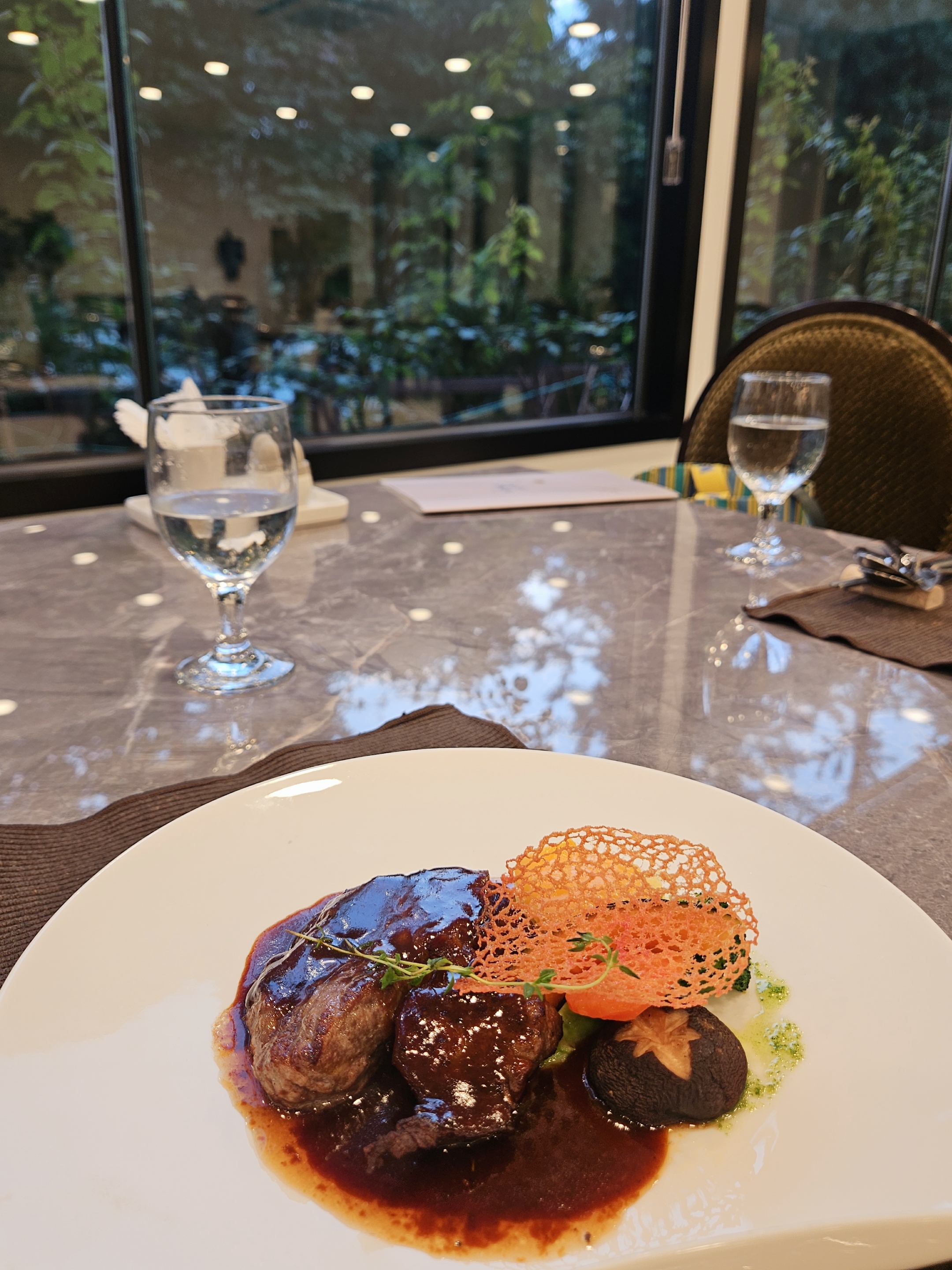 엄마랑 단둘이 방문했기 때문에 룸은 수용인원이 많은 관계로 창가 쪽 일반 테이블에 자리했는데도 확 트인 뷰에 테이블 간 좌석 간격이 넓은 편이었음.