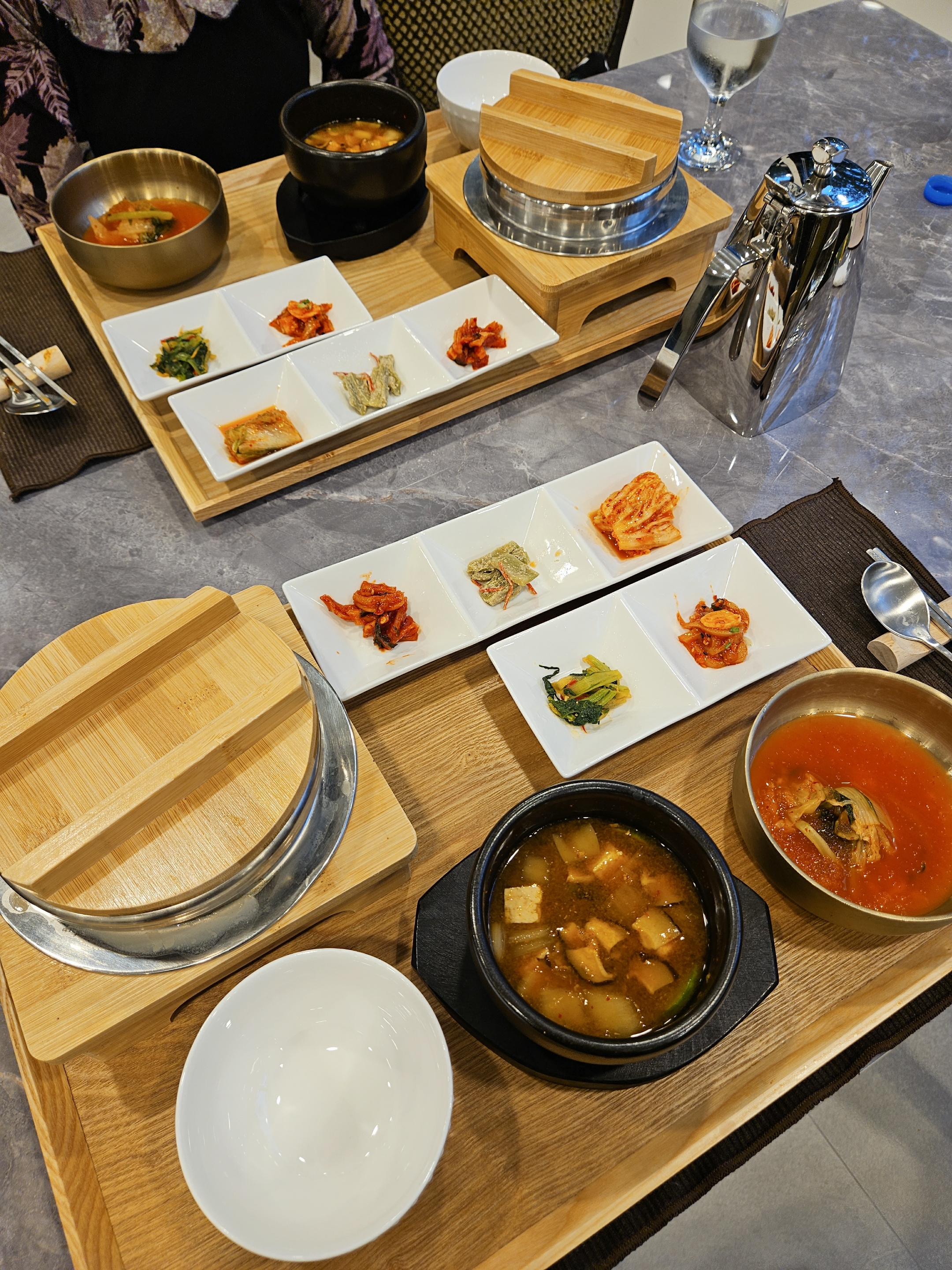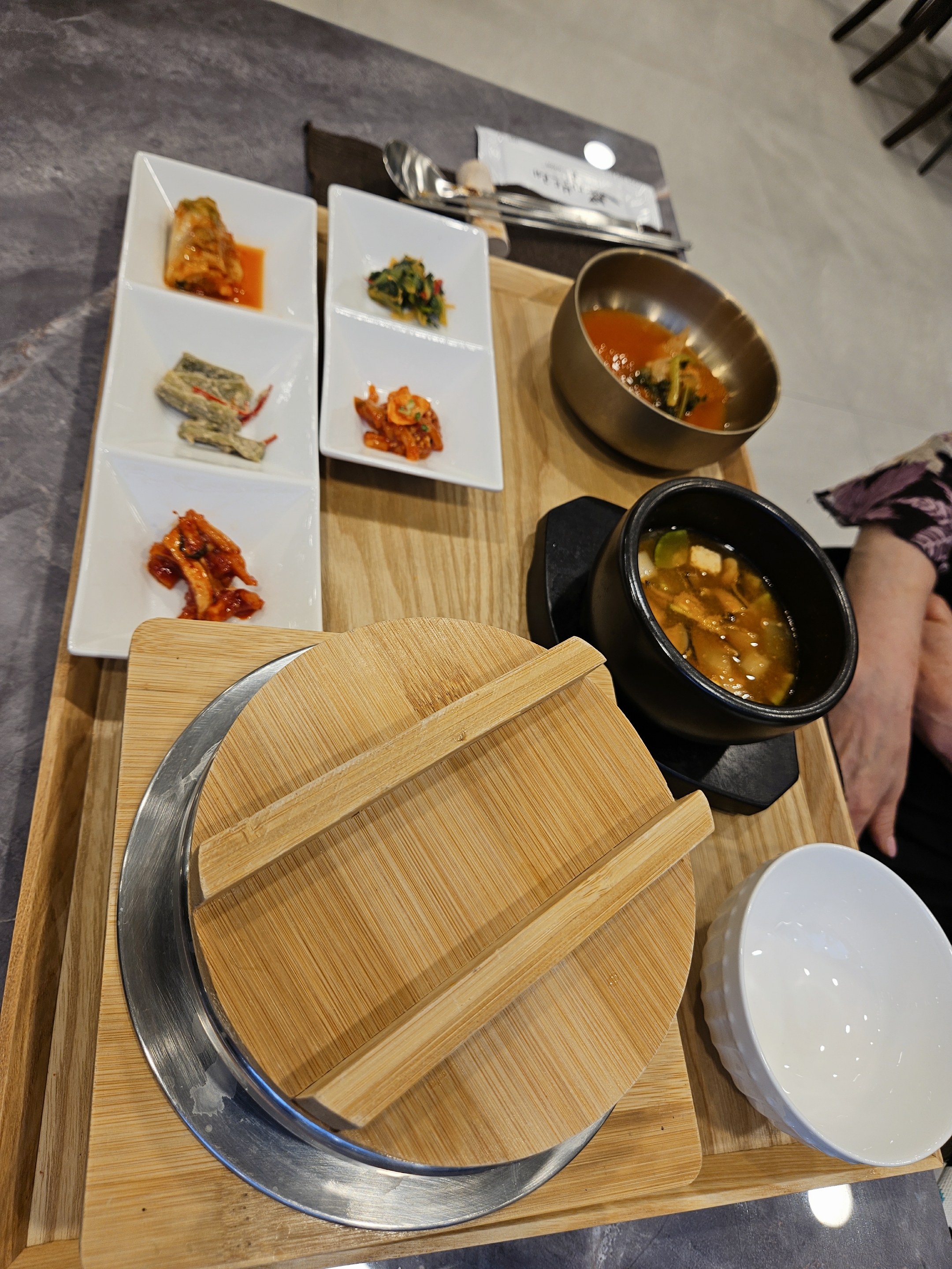 식사 - 영양솥밥, 5가지 반찬, 된장찌개