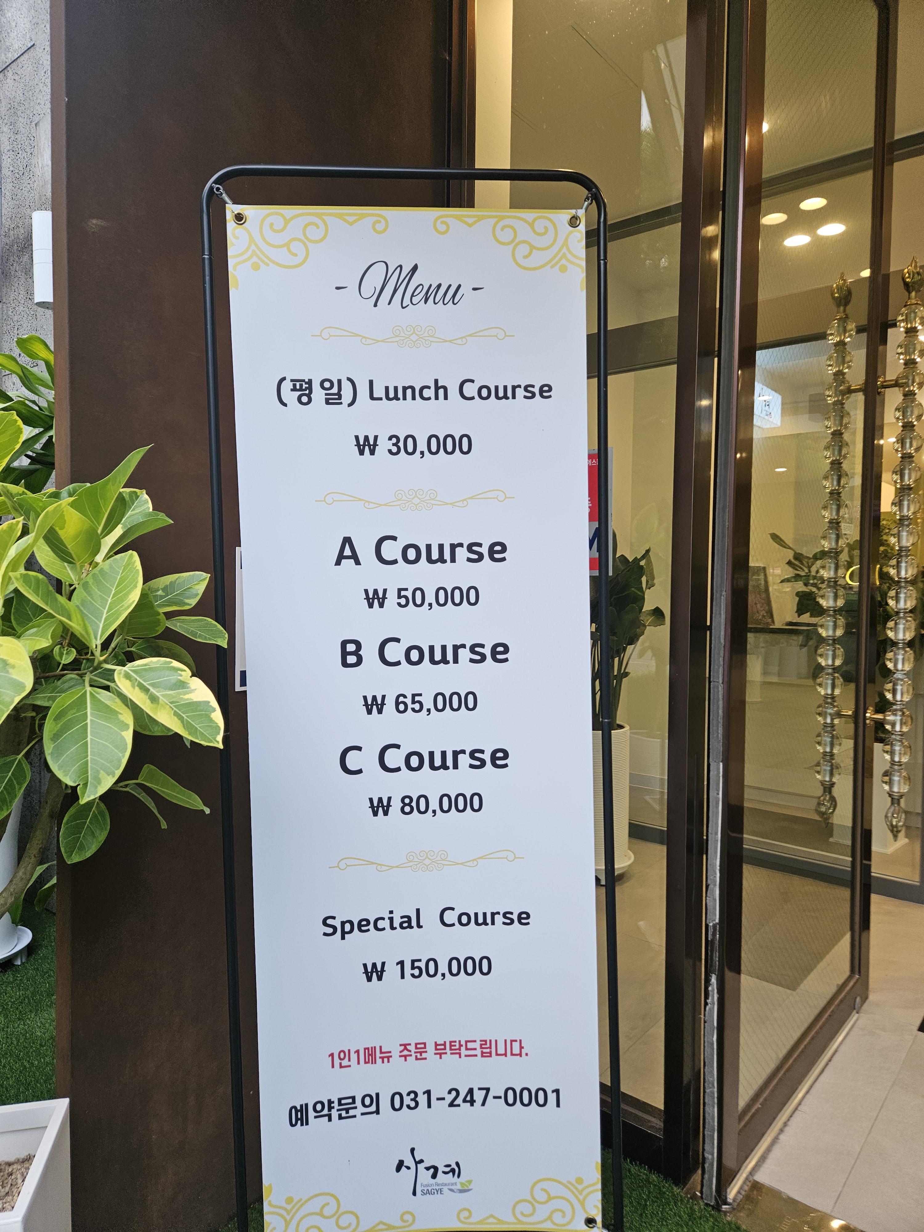 평일 점심 가성비 좋은 런치 코스부터 디너 코스, 스페셜 코스까지 다양한 가격대로 구성된 코스 메뉴가 준비되어 있는데 메뉴 구성대비 가격이 진짜 괜찮더라.