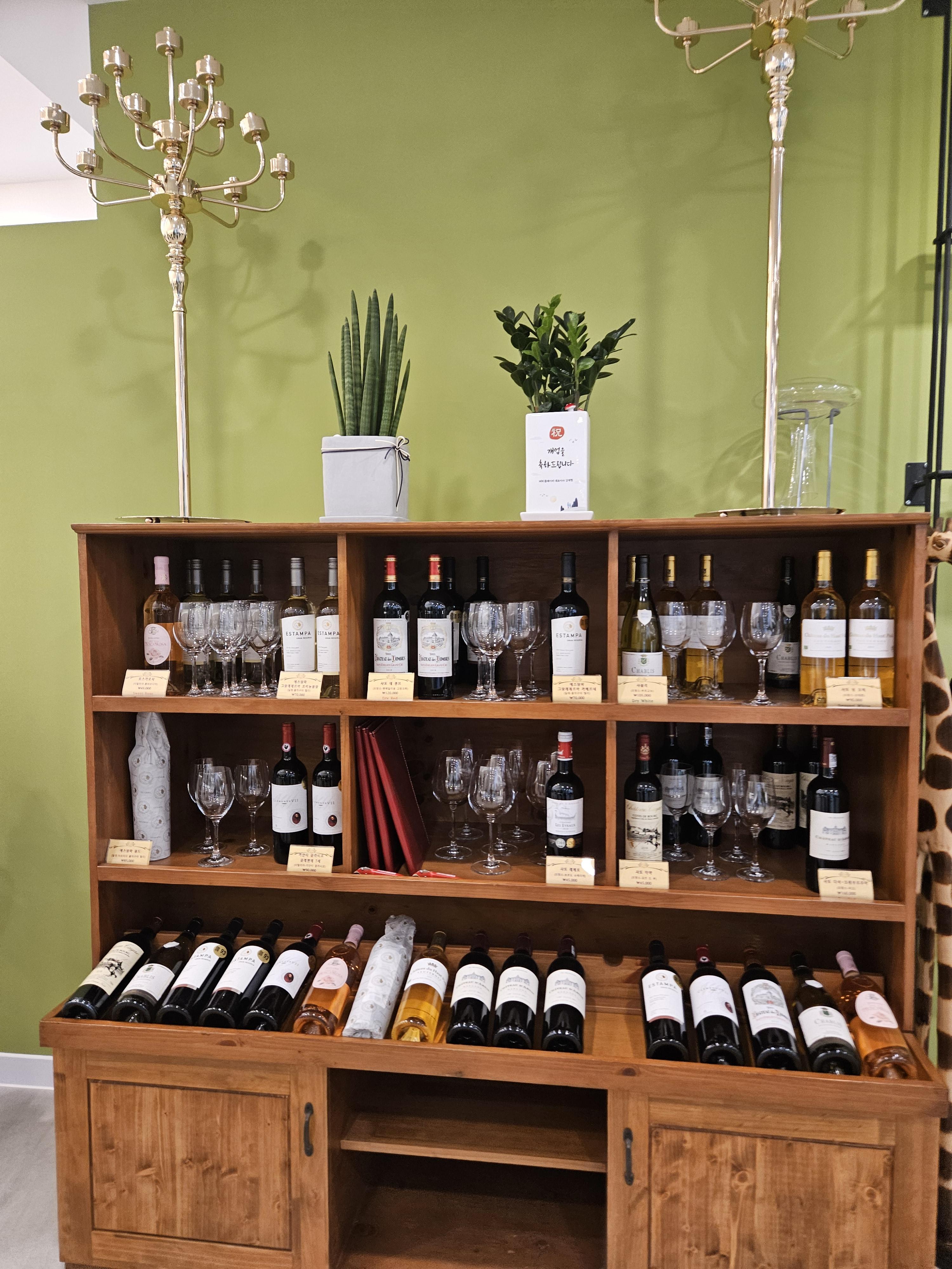 입구로 들어가면 정면에 다양한 종류의 와인을 진열해 두었는데 코스요리와 페어링 하기 괜찮은 와인 선택해서 주문해 봐도 좋을 것 같다.