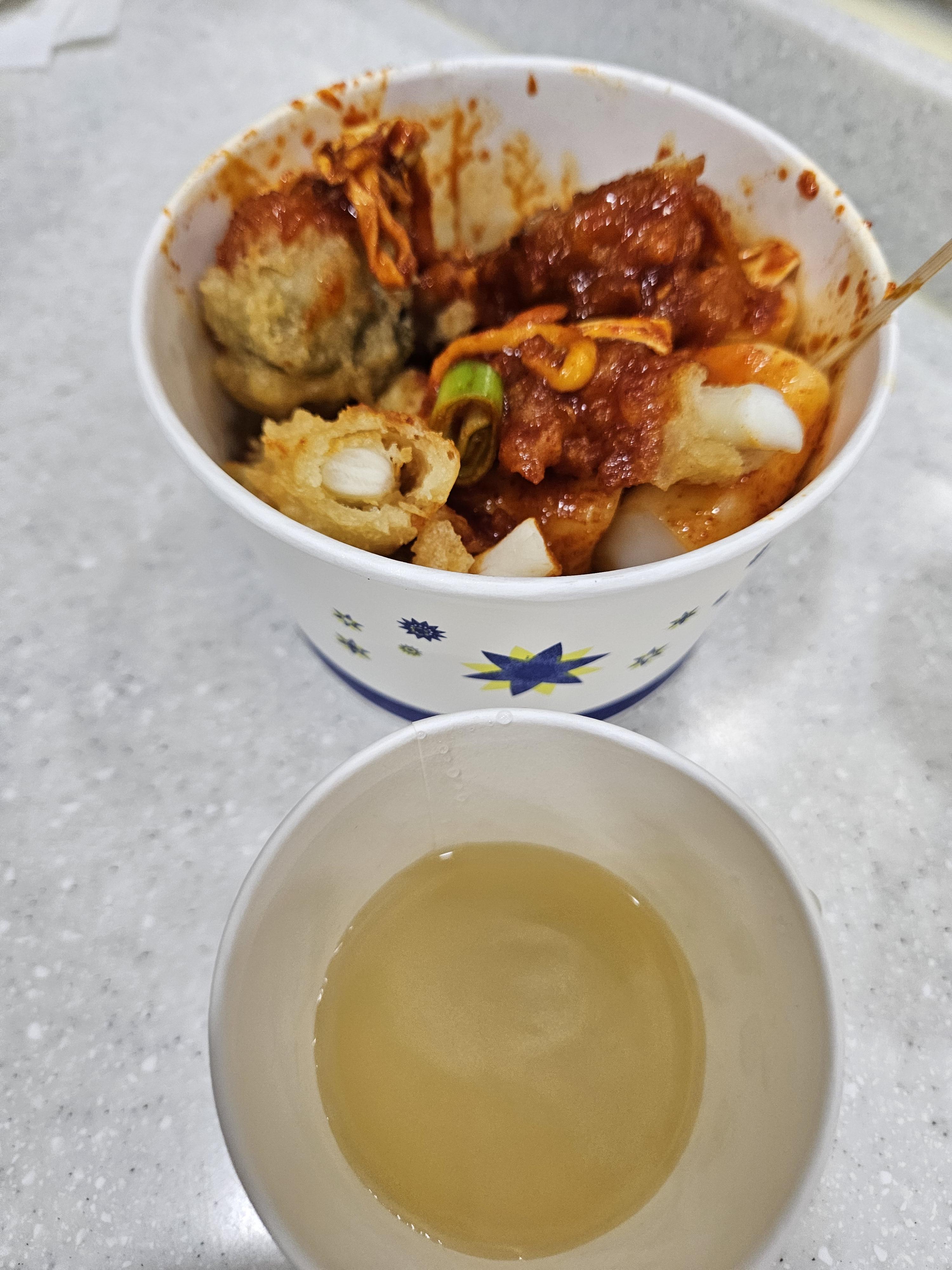 종이컵으로 어묵 국물은 셀프로 떠먹을 수 있는데 꿀조합이다.