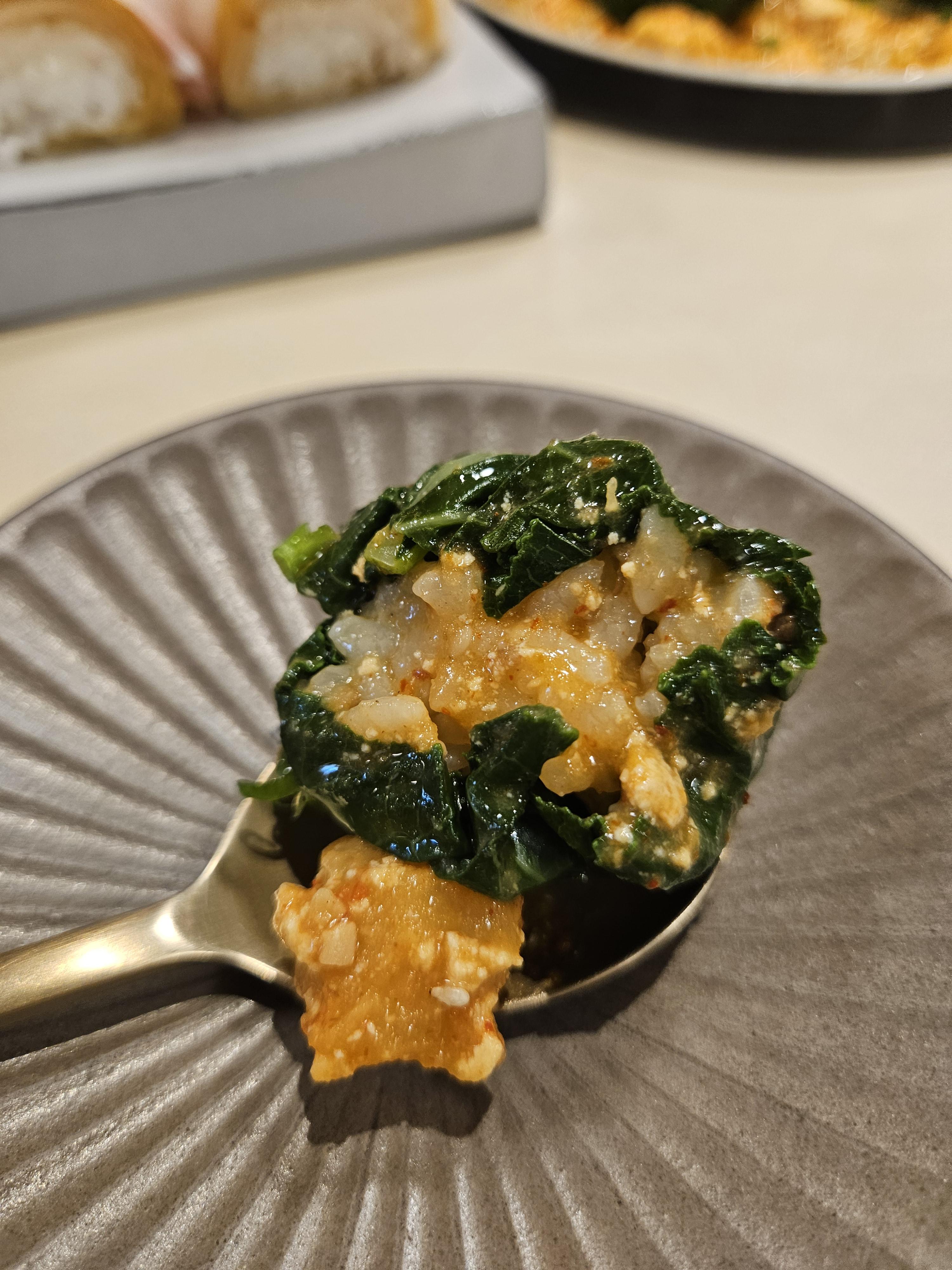 강된장쌈밥은 데친 잎채소가 질기지 않아 먹기 불편하지 않았고 밥양도 적당. 쌈밥 자체는 고소한 맛만 나서 채소 두부 섞인 강된장 곁들여 먹으면 입맛에 맞게 먹을 수 있음.