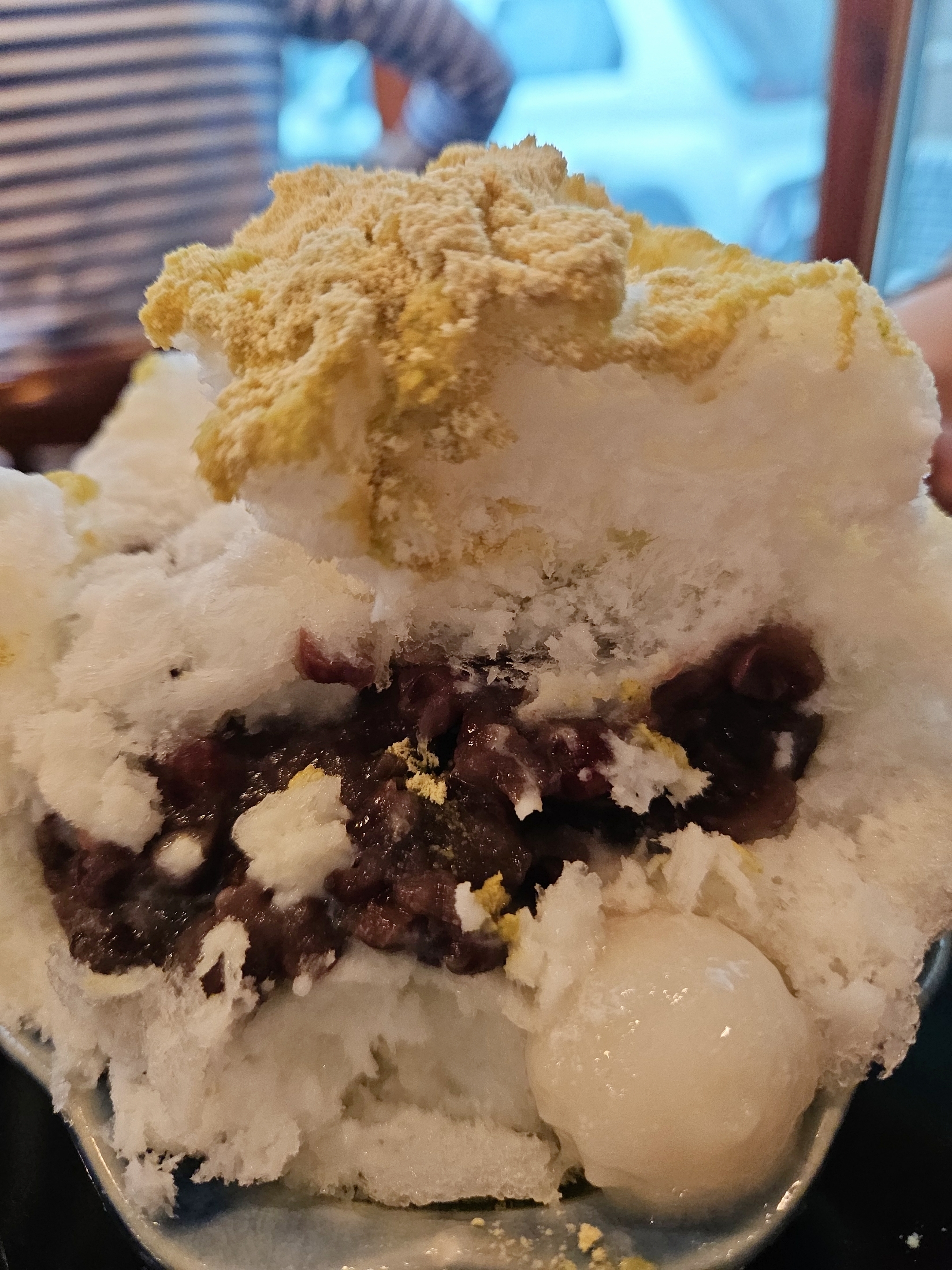 팥빙수엔 콩가루를 텁텁하지 않을 정도로 뿌려놨고 팥은 얼음 안에 숨겨놨는데 팥이 무화과 퓨레? 청보다 달지 않아 맛있더라 ㅎㅎ