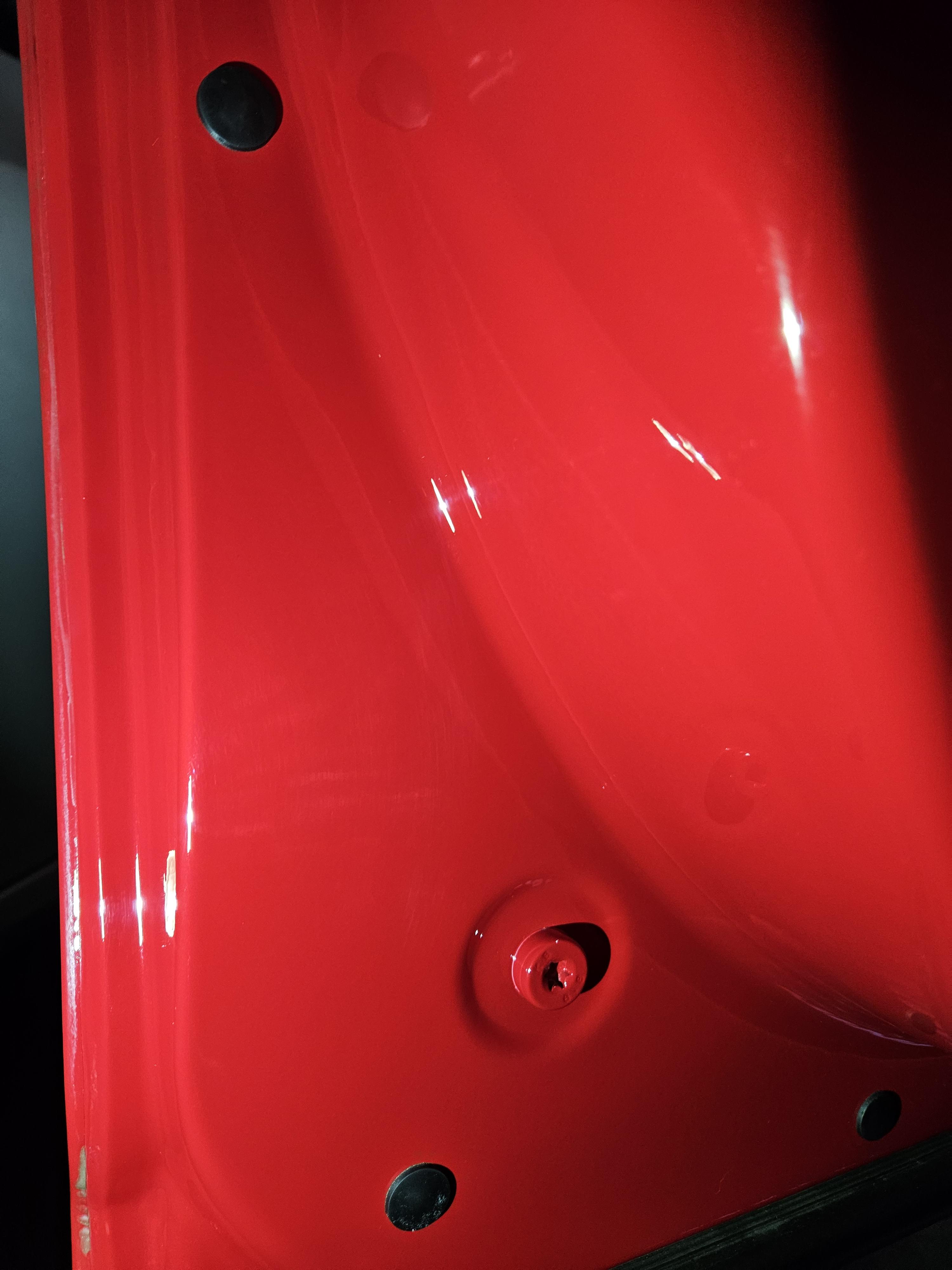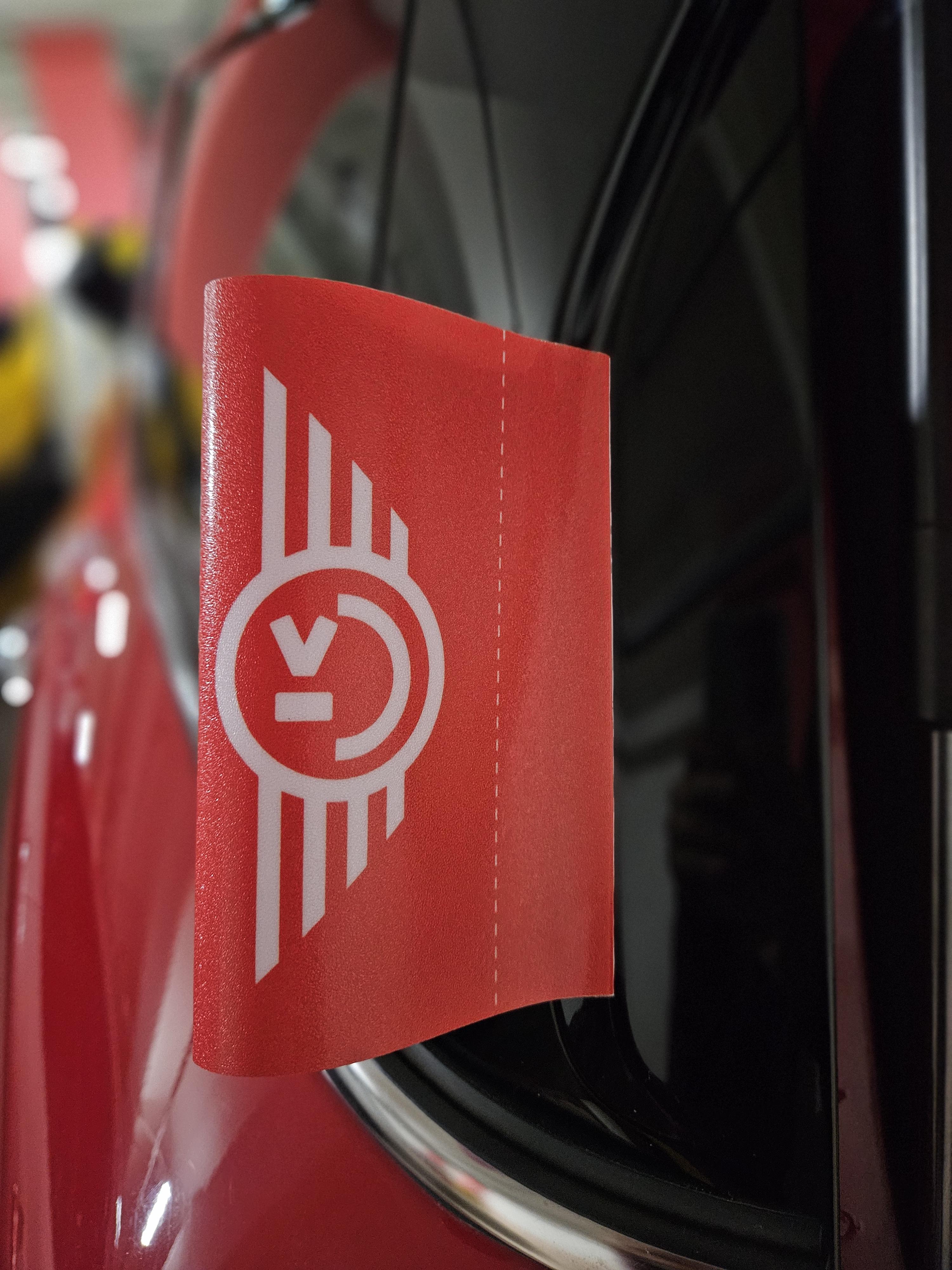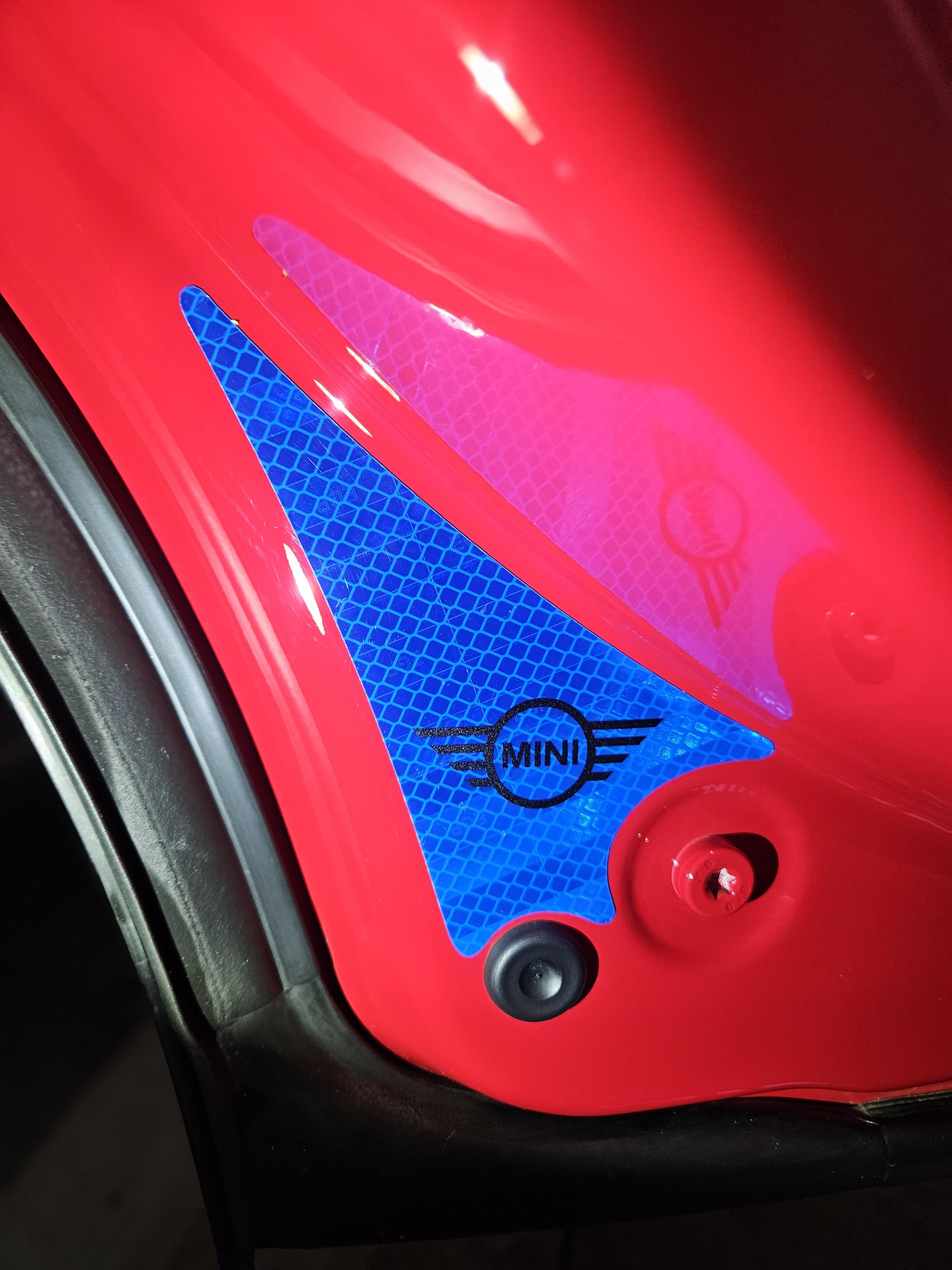 야광 스티커는 4개 문 하단에 모두 부착함. 컬러가 노란색 하고 블루가 있는데 노란 건 품절이라 블루로 주문했는데 빨간 문짝과 잘 어울림. 이건 안전을 위함이라 밤에 어두운 데서 잘 보이는지 확인 필요.