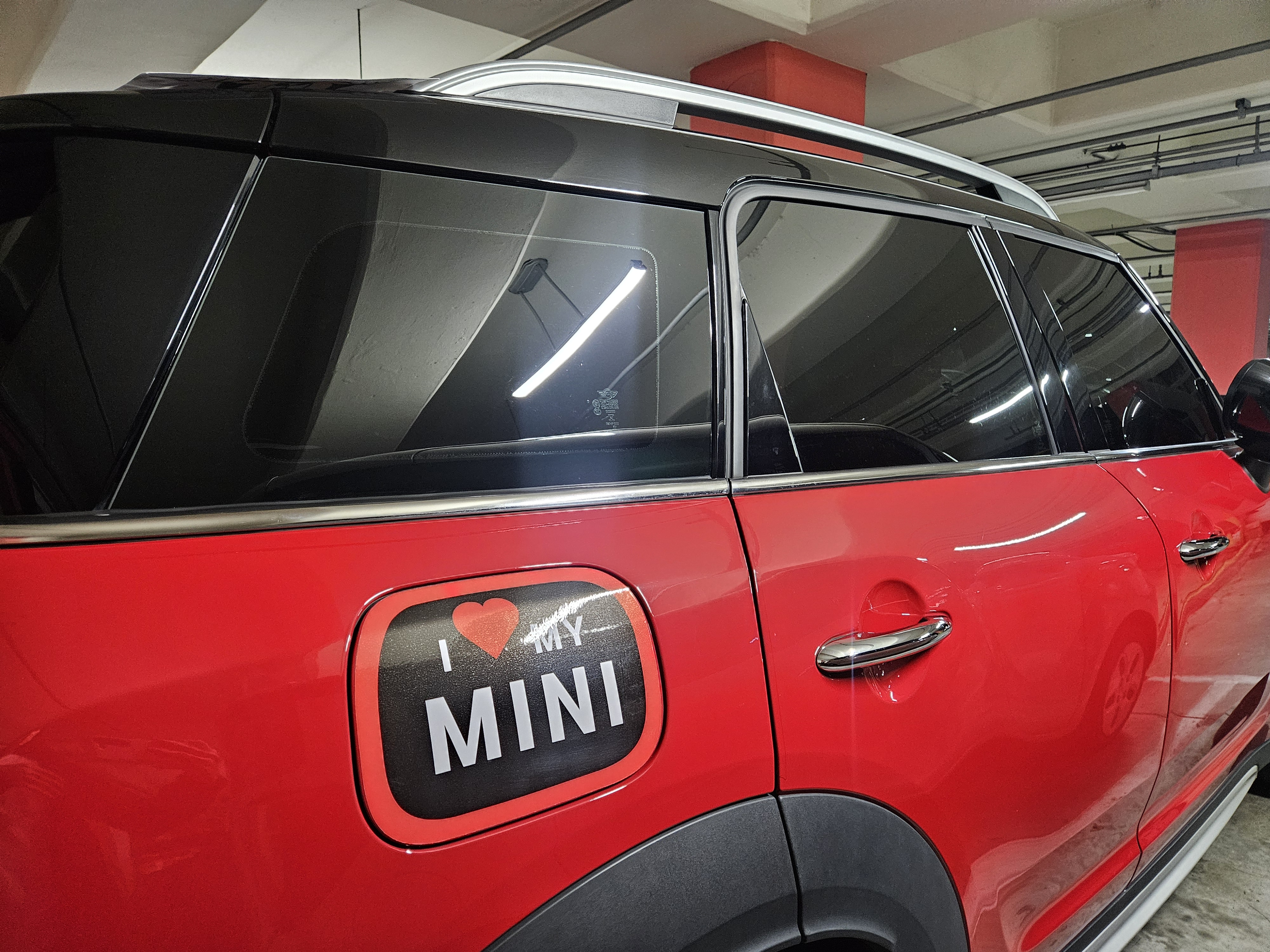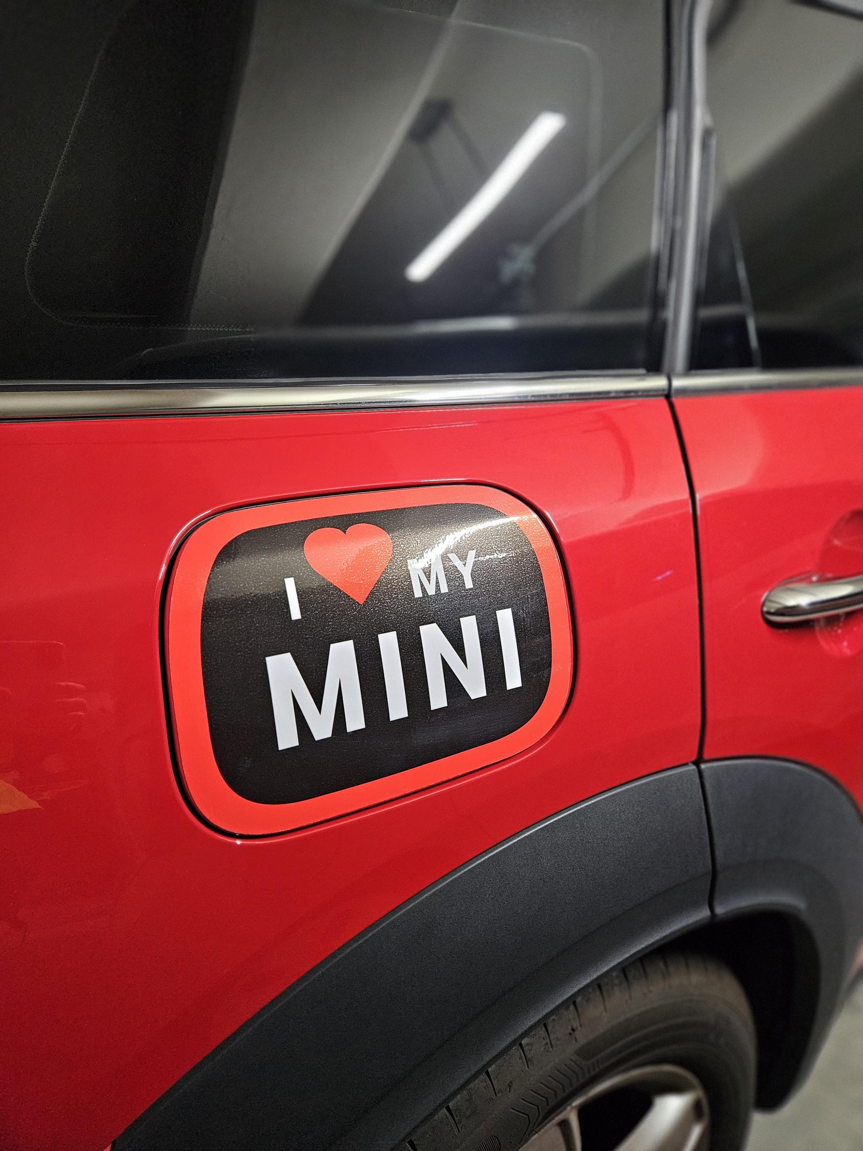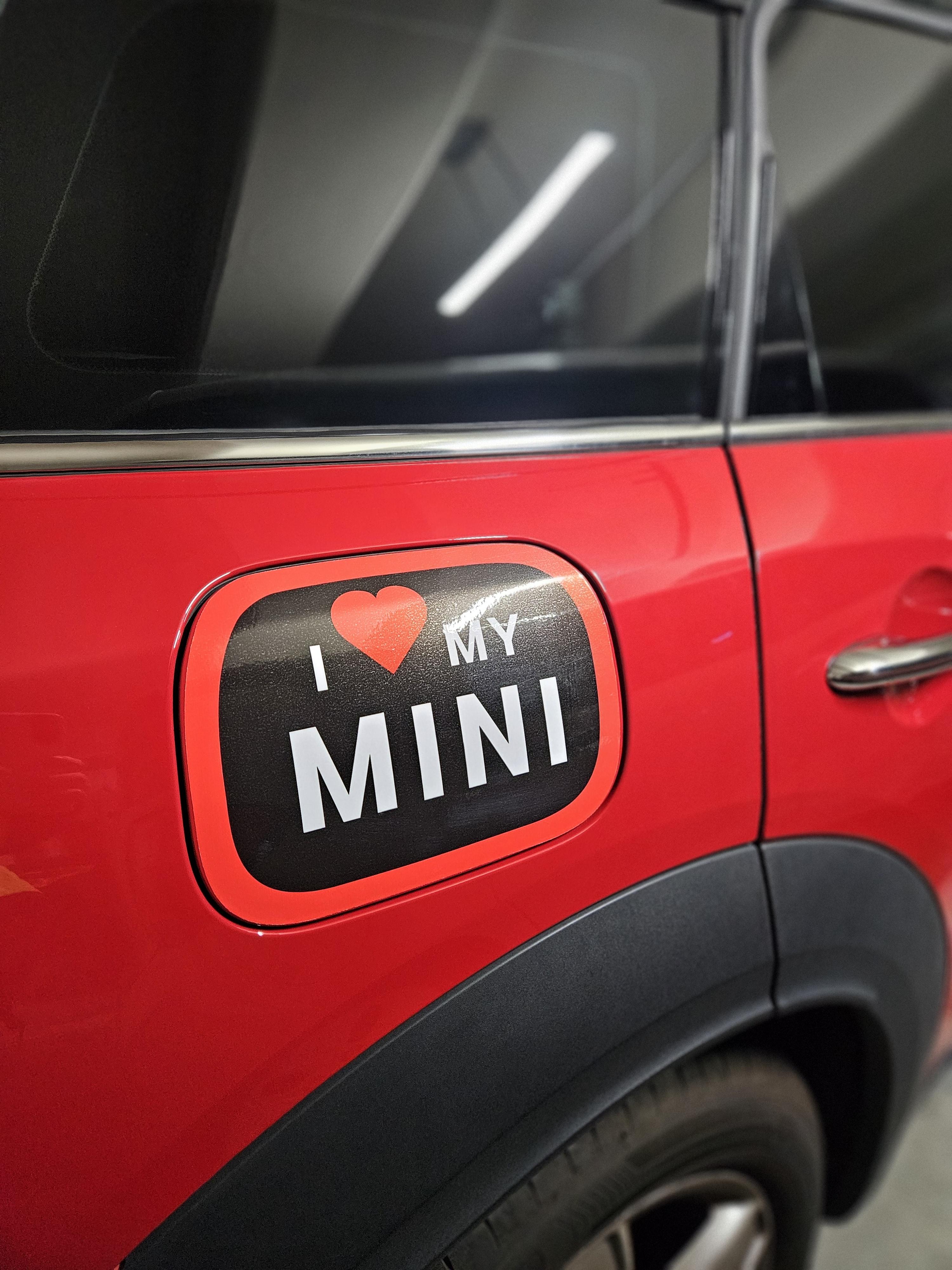 주유구 스티커도 알럽 마이 미니 자동차가 레드에 블랙컬러인지라 데칼스티커 컬러도 통일~ F60 컨트리맨 모델로 샀는데 코팅도 잘되어 있고 붙이기도 편했음.
