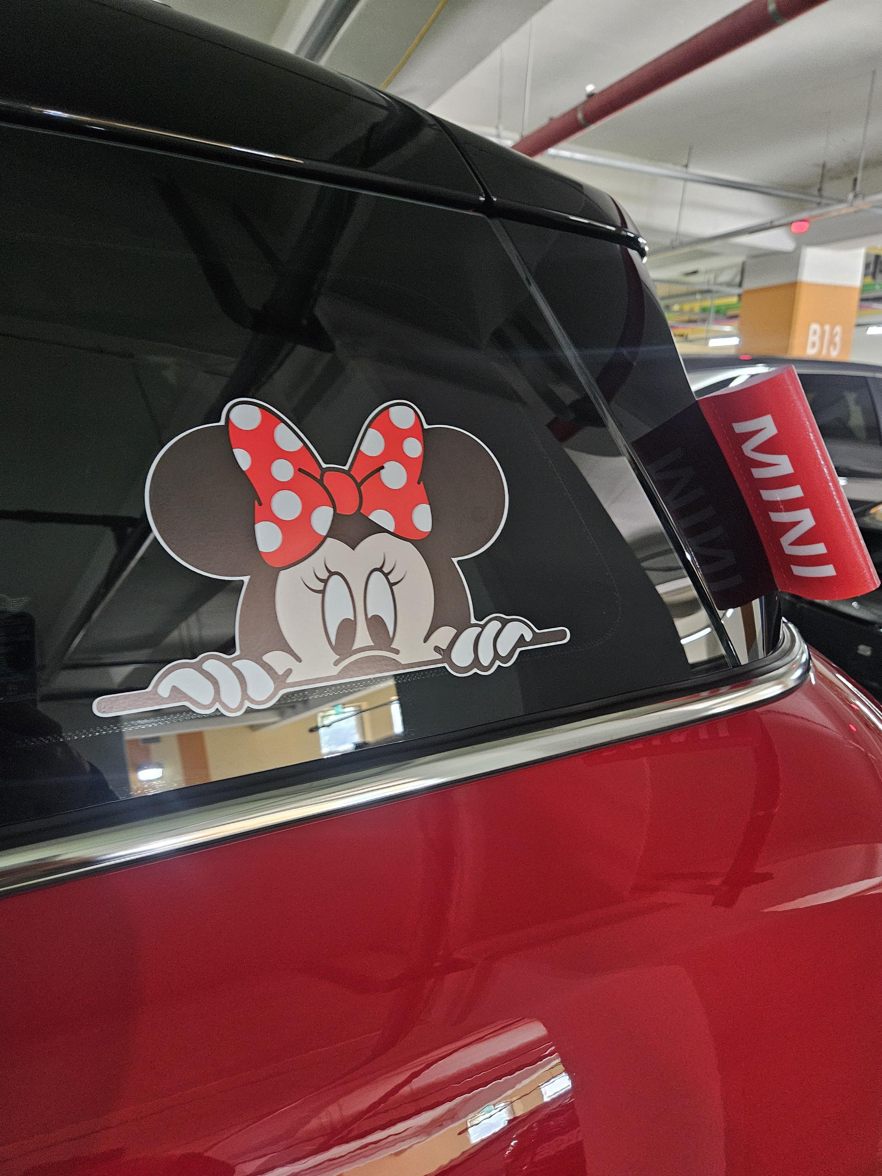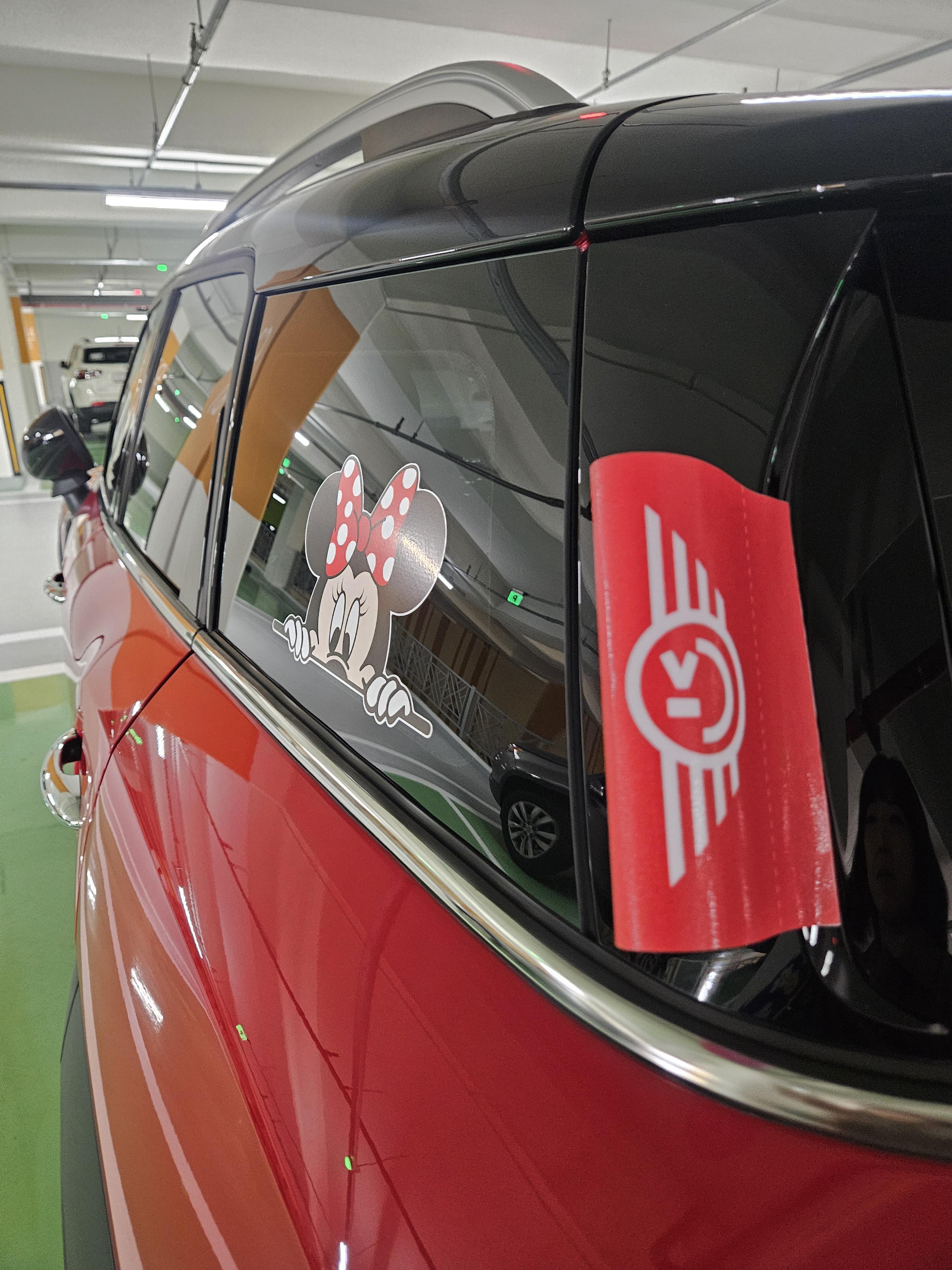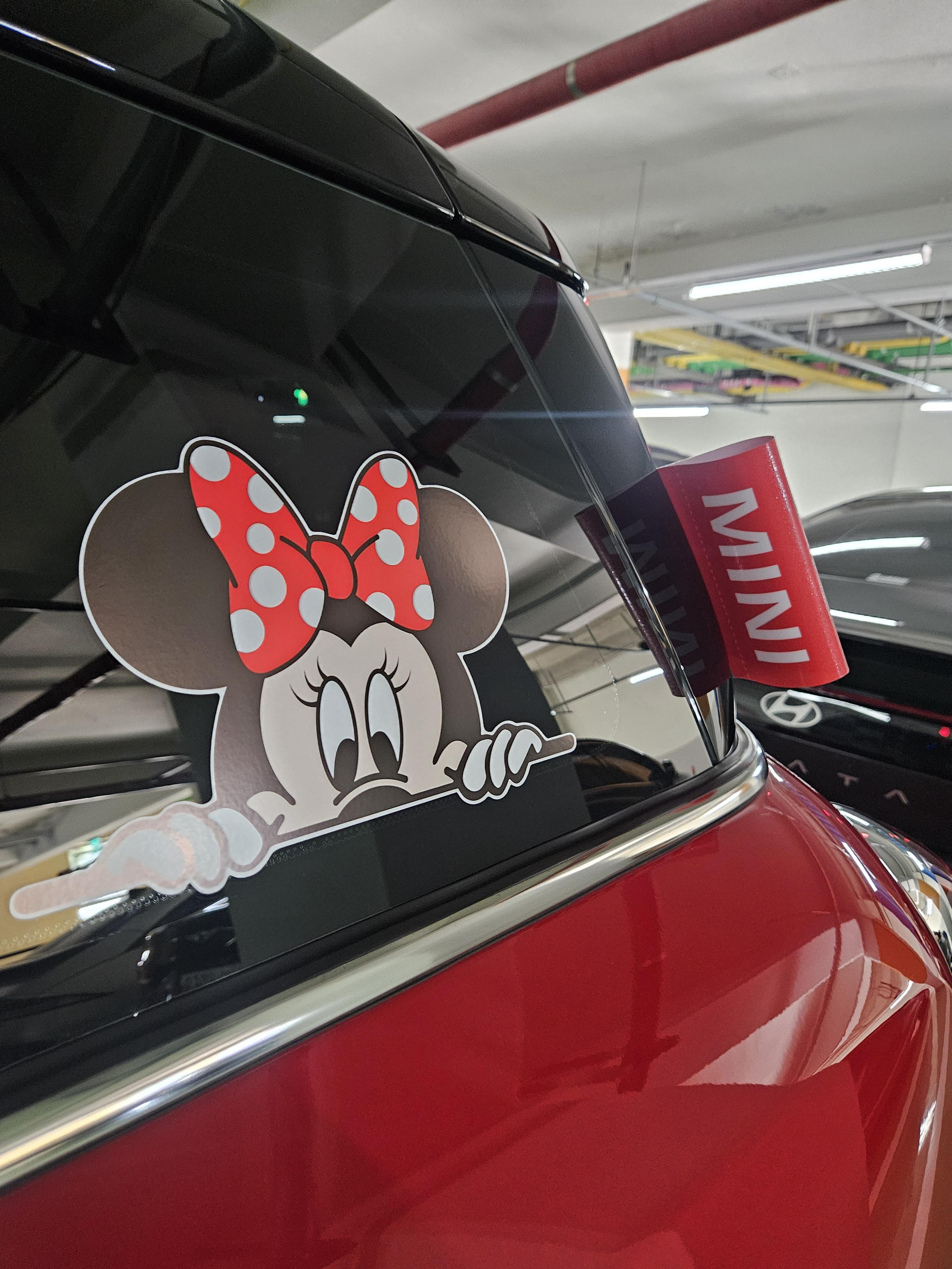 미니, 미키 데칼 스티커는 커플로 2세트 총 4개 구입했다. 망하는 걸 방지하기 위해 샀는데 빨간 리본 미니와 미키 둘 다 부착 성공.
