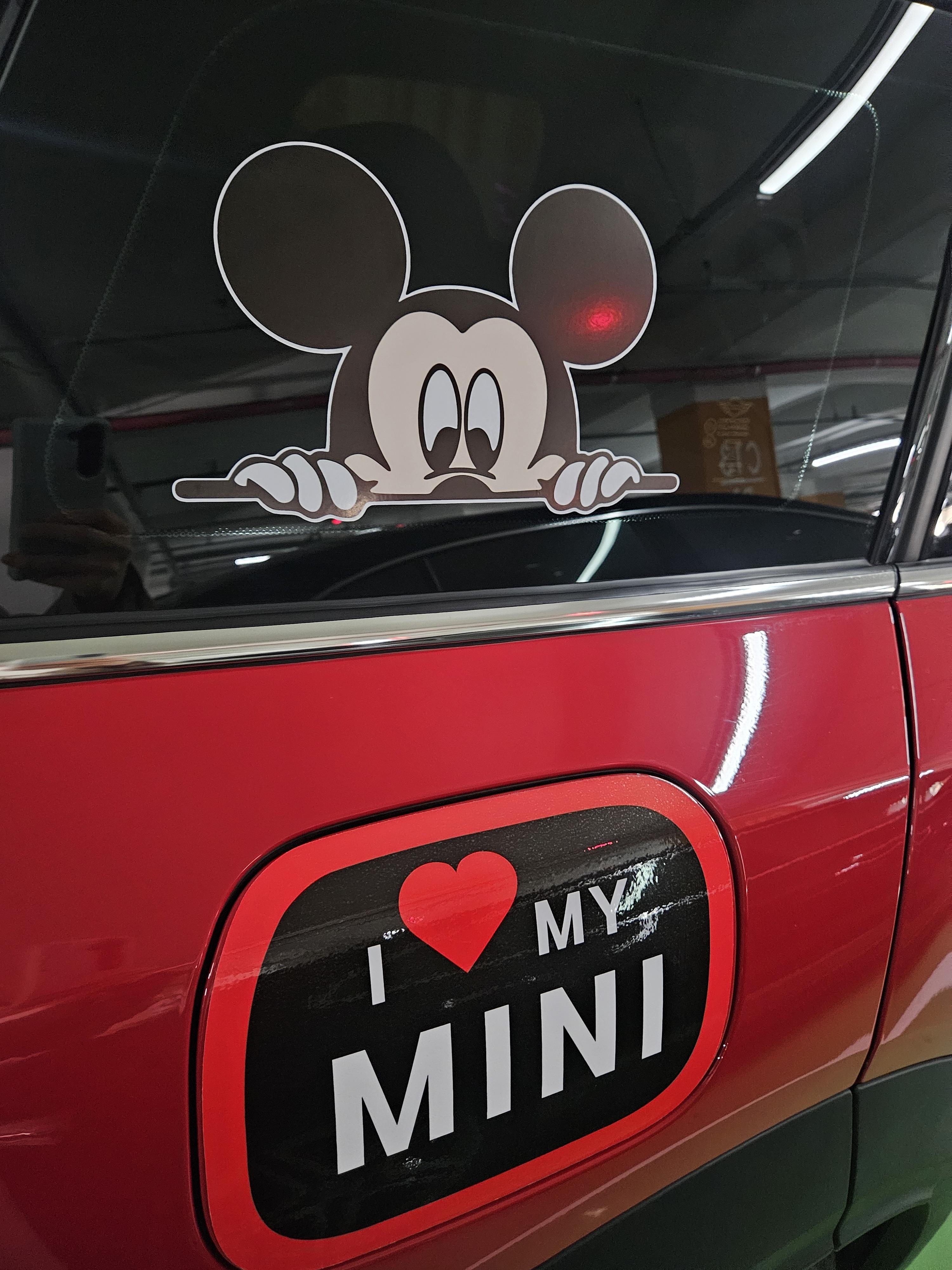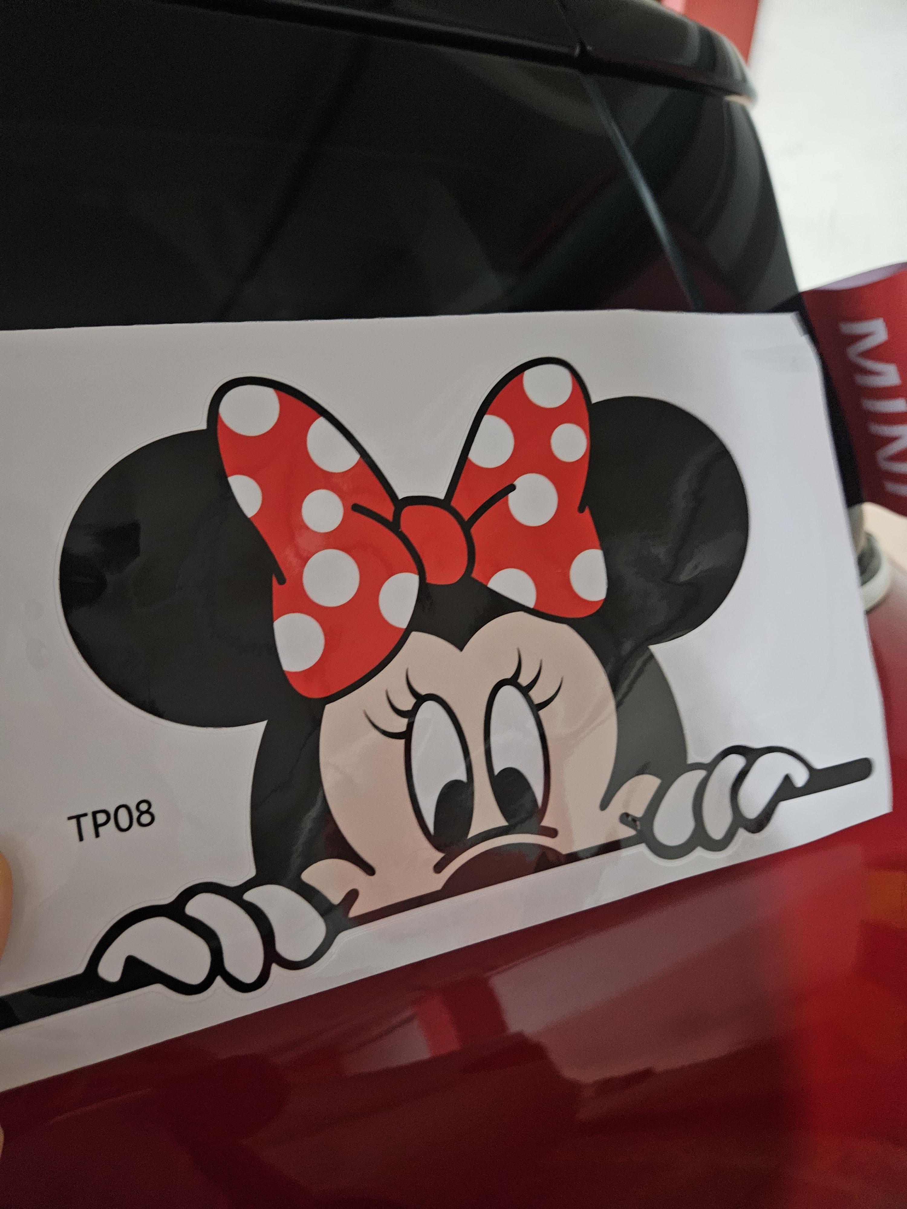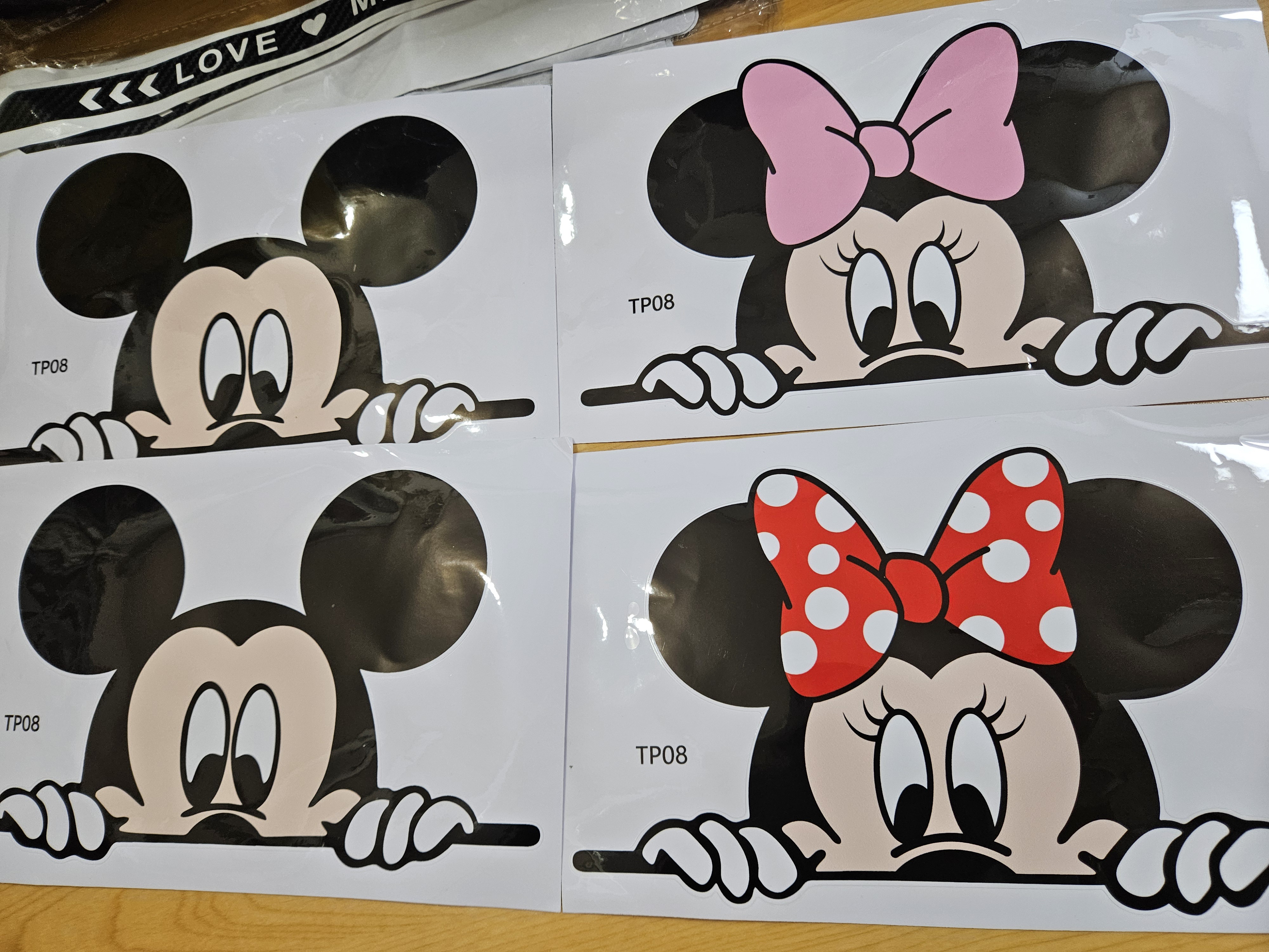 미니, 미키 데칼 스티커는 커플로 2세트 총 4개 구입했다. 망하는 걸 방지하기 위해 샀는데 빨간 리본 미니와 미키 둘 다 부착 성공.