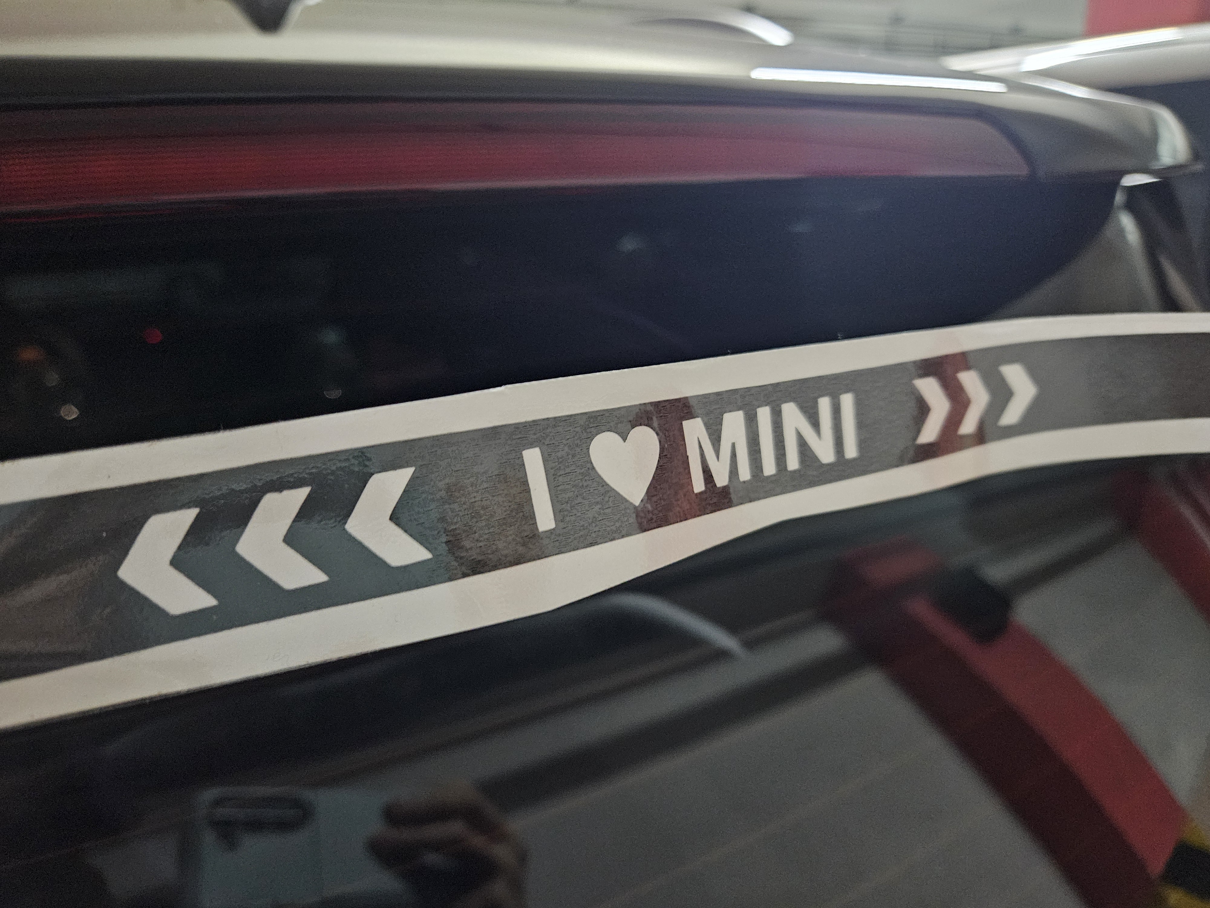 이어서 브레이크 등 데칼 스티커 붙임. 그냥 빨간색에 I ♡ MINI가 돋보인다.