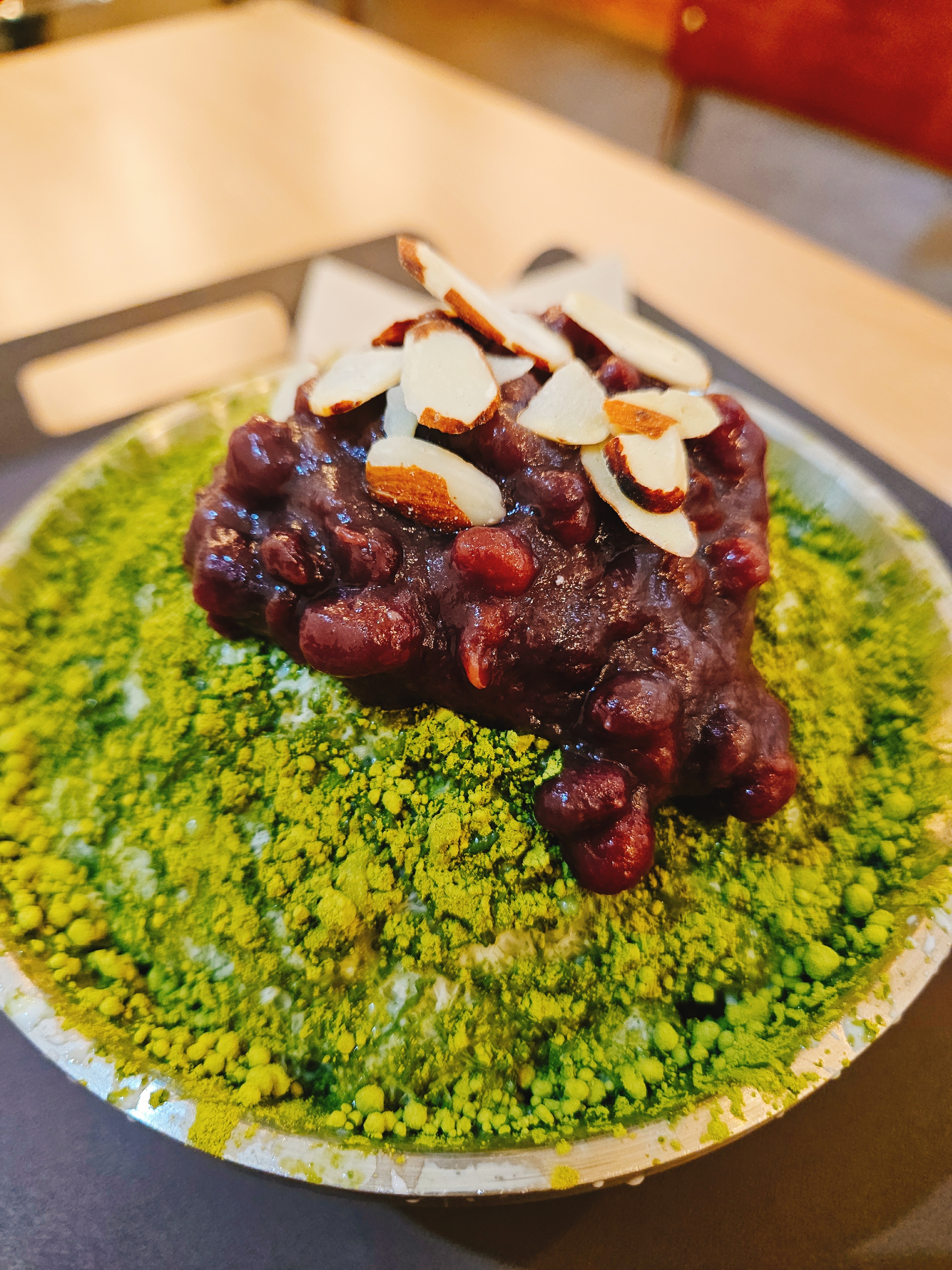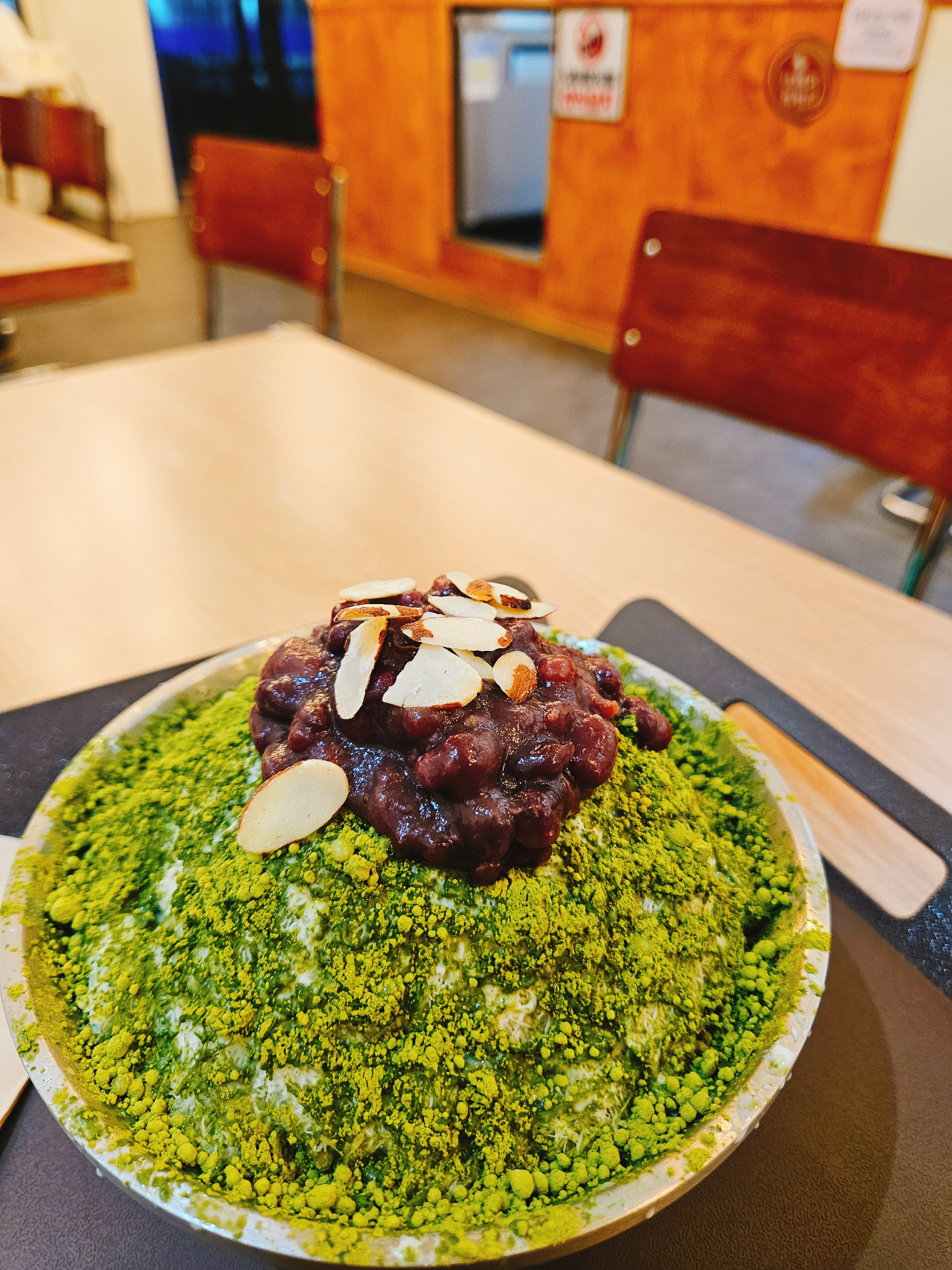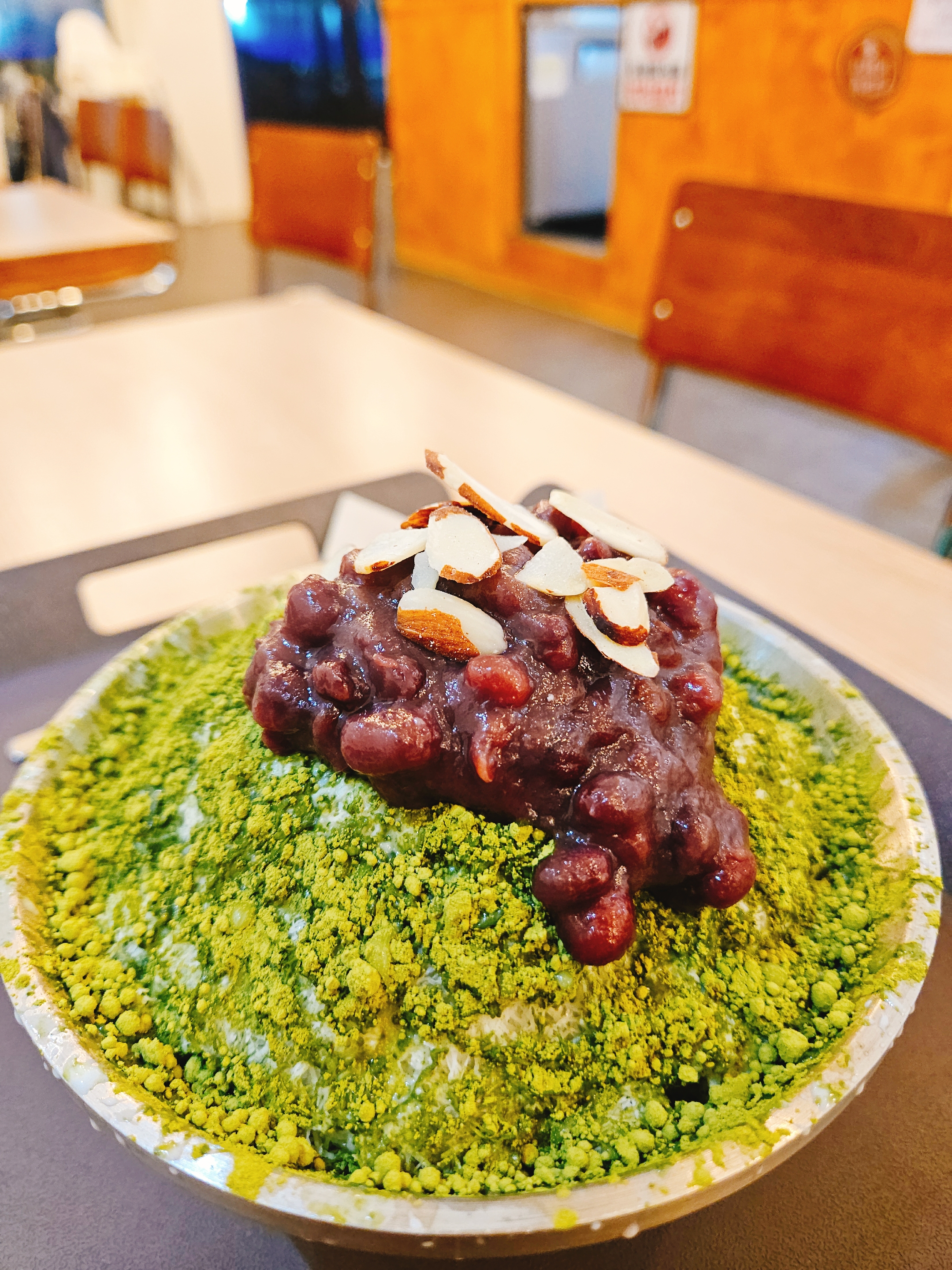 다양하게 먹는 거 좋아해서 1인 1 메뉴 주문하는 것도 좋지만 배가 불러서 ㅠ ㅎㅎ 녹차빙수 하나만 주문했다.