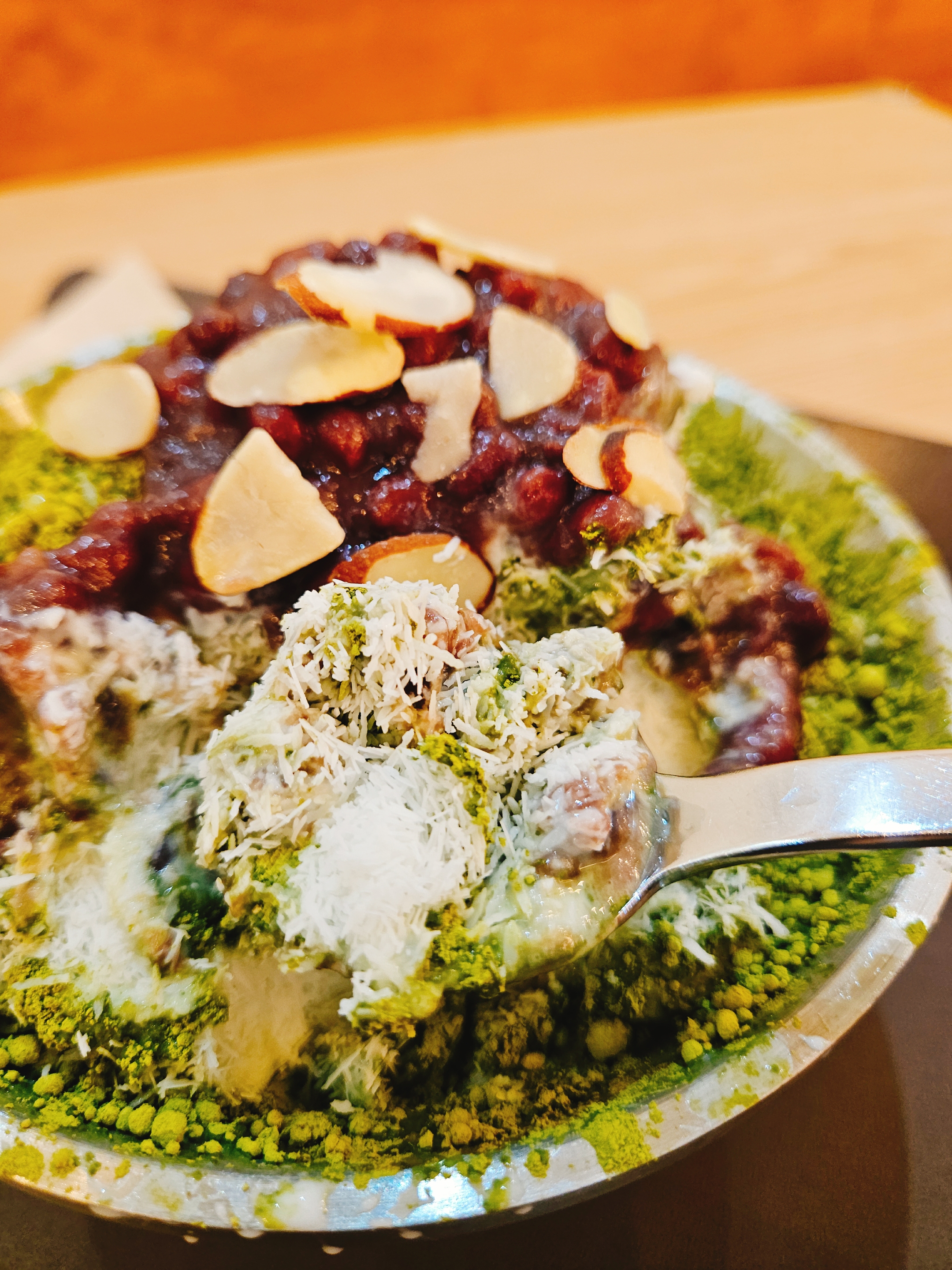 팥 위에는 아몬드 슬라이스 올려줌. 쌉싸름하면서 적당한 달콤함이 부담 없이 먹을 수 있는 빙수. 화장실 하나라 엄마가 대기했다가 다녀오셨는데 내가 반이나 먹고 있어서 하나 더 주문해야 하나 싶었던 ㅋㅋㅋ