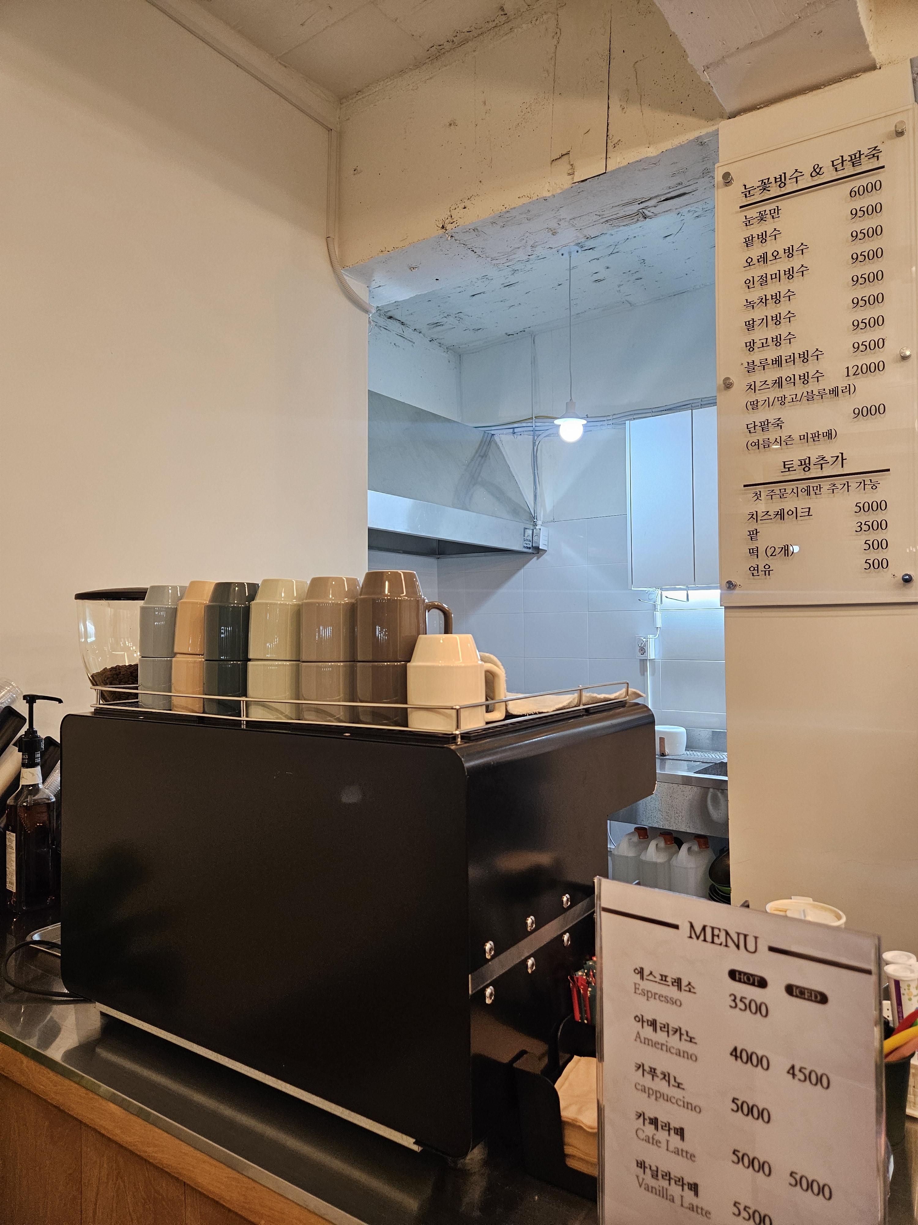 눈꽃은 6천 원, 나머지 토핑 올라간 빙수는 다 9천5백 원, 치즈케이크 빙수는 1만 2천 원 근데 1인 1 주문 필수 아니고 양이 아주 적진 않아서 보통은 1그릇 주문해서 둘이 먹는 사람들이 대다수.