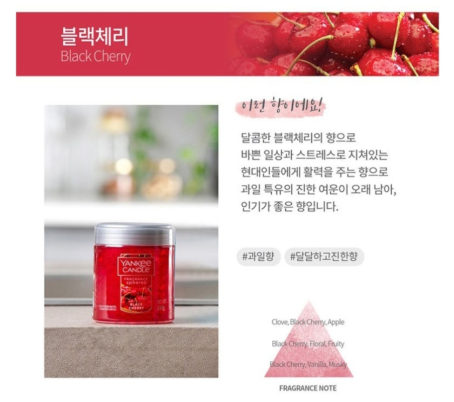 향은 총 7가지인데 블랙체리의 달콤함이 좋아서 빨간 자동차에 어울리는 향으로 고름 🍒 🚘