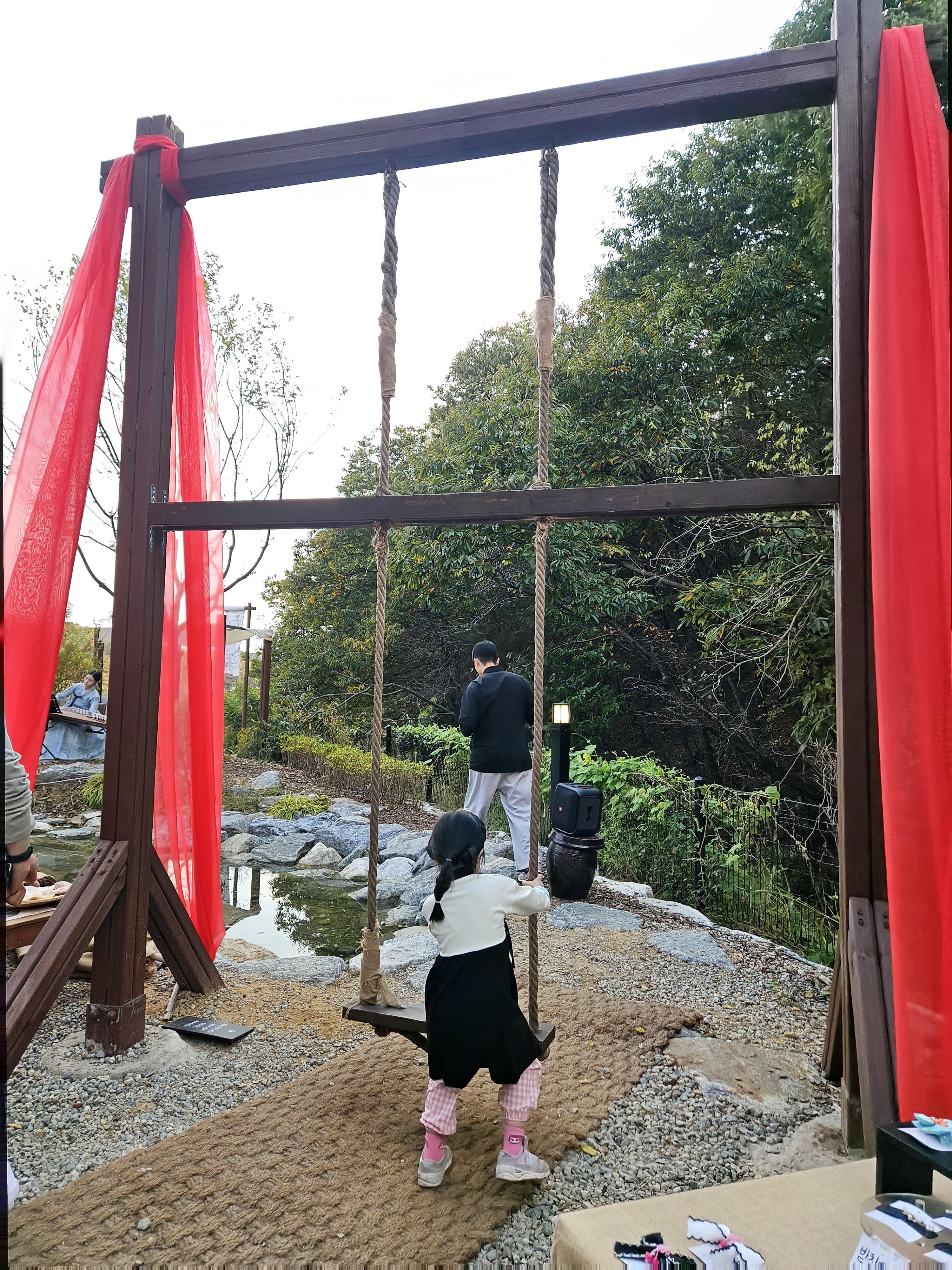 전통 복장 입고 모래놀이나 그네 타기 체험할 수 있는 곳이 있어서 아이 동반한 가족들도 많더라.