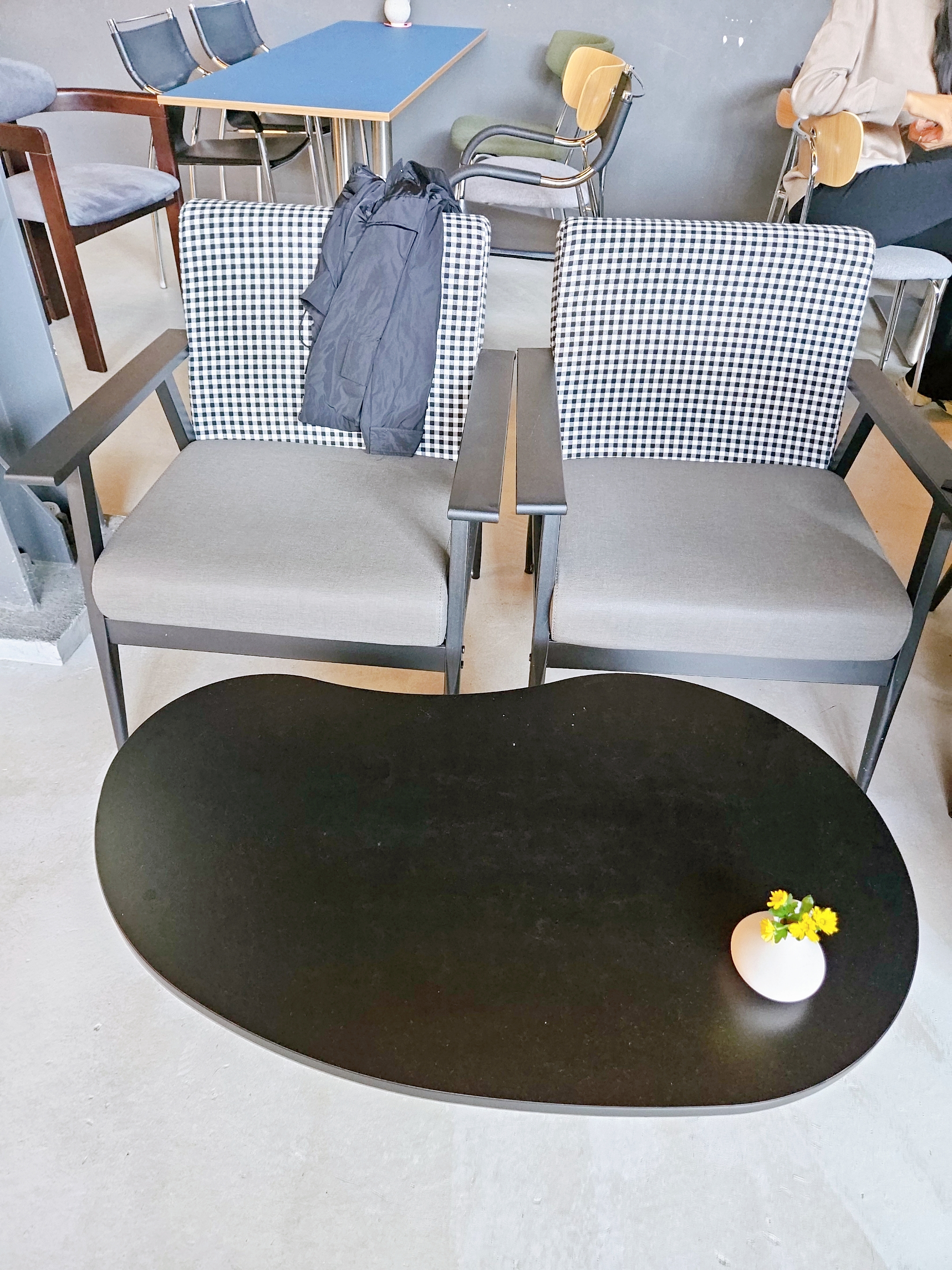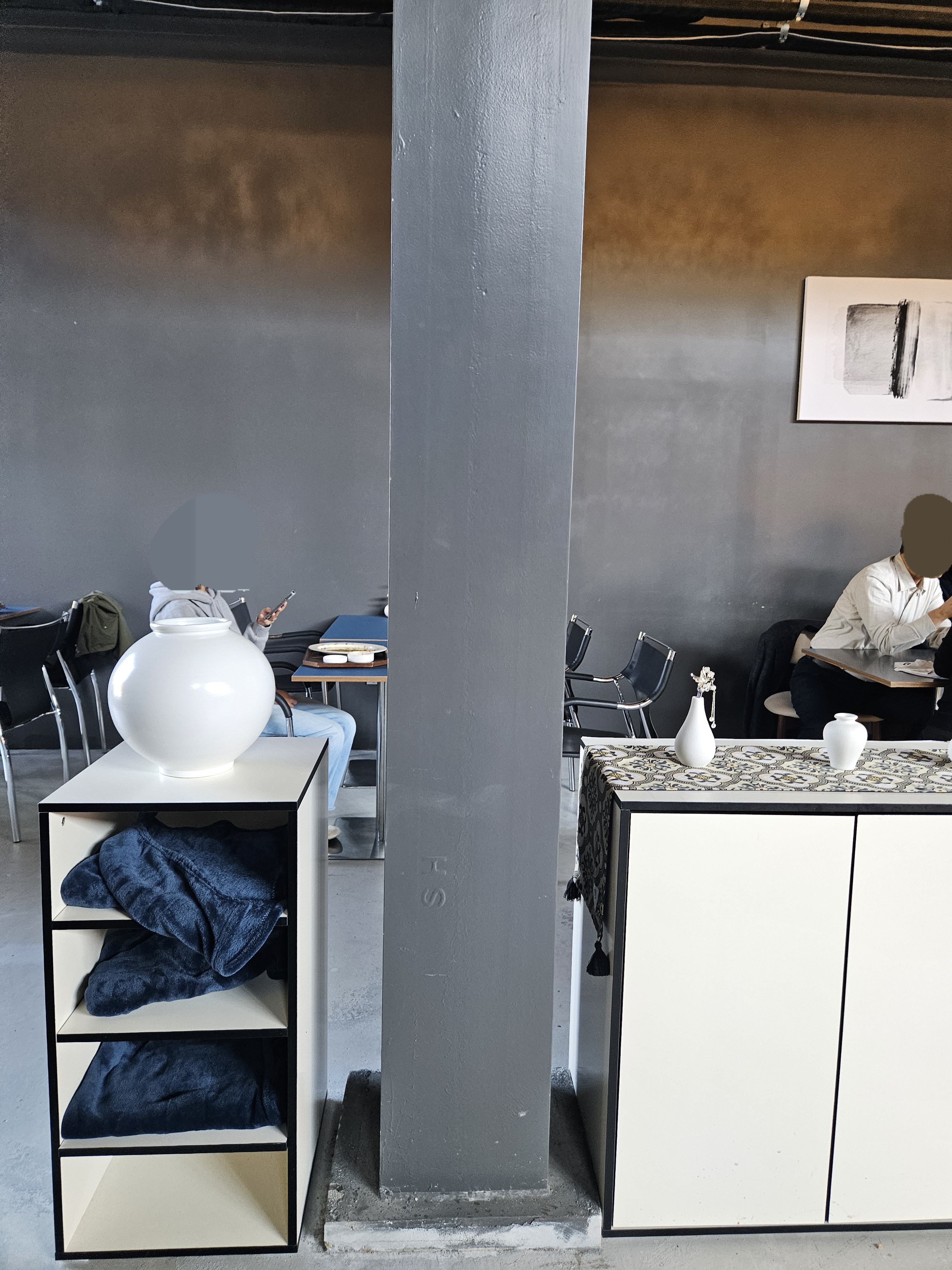 매장 곳곳에 자개로 만든 추억의 가구가 놓여있어 레트로한 감성도 더했고 필요한 티슈나 담요 같은 것도 준비되어 있음.