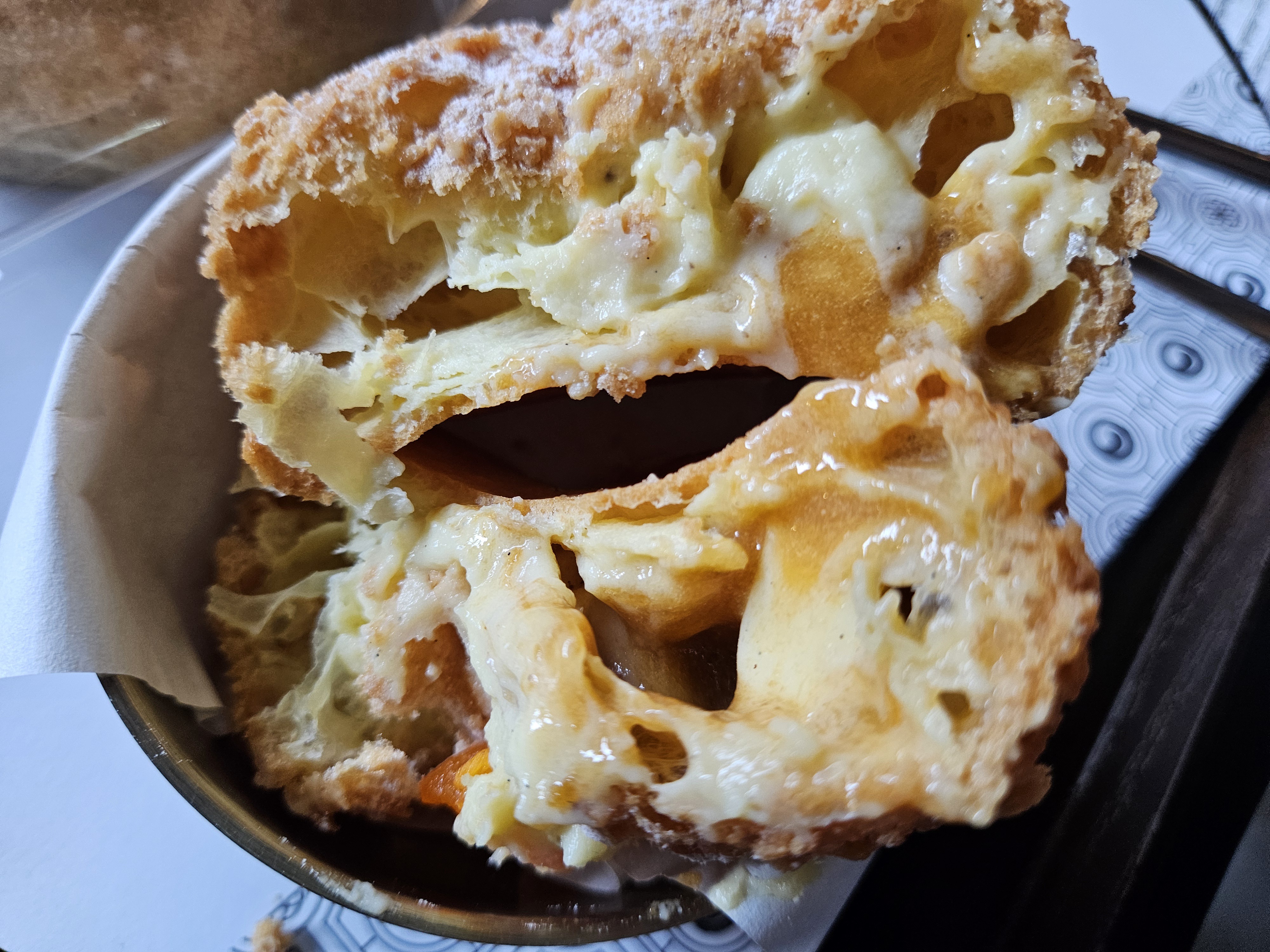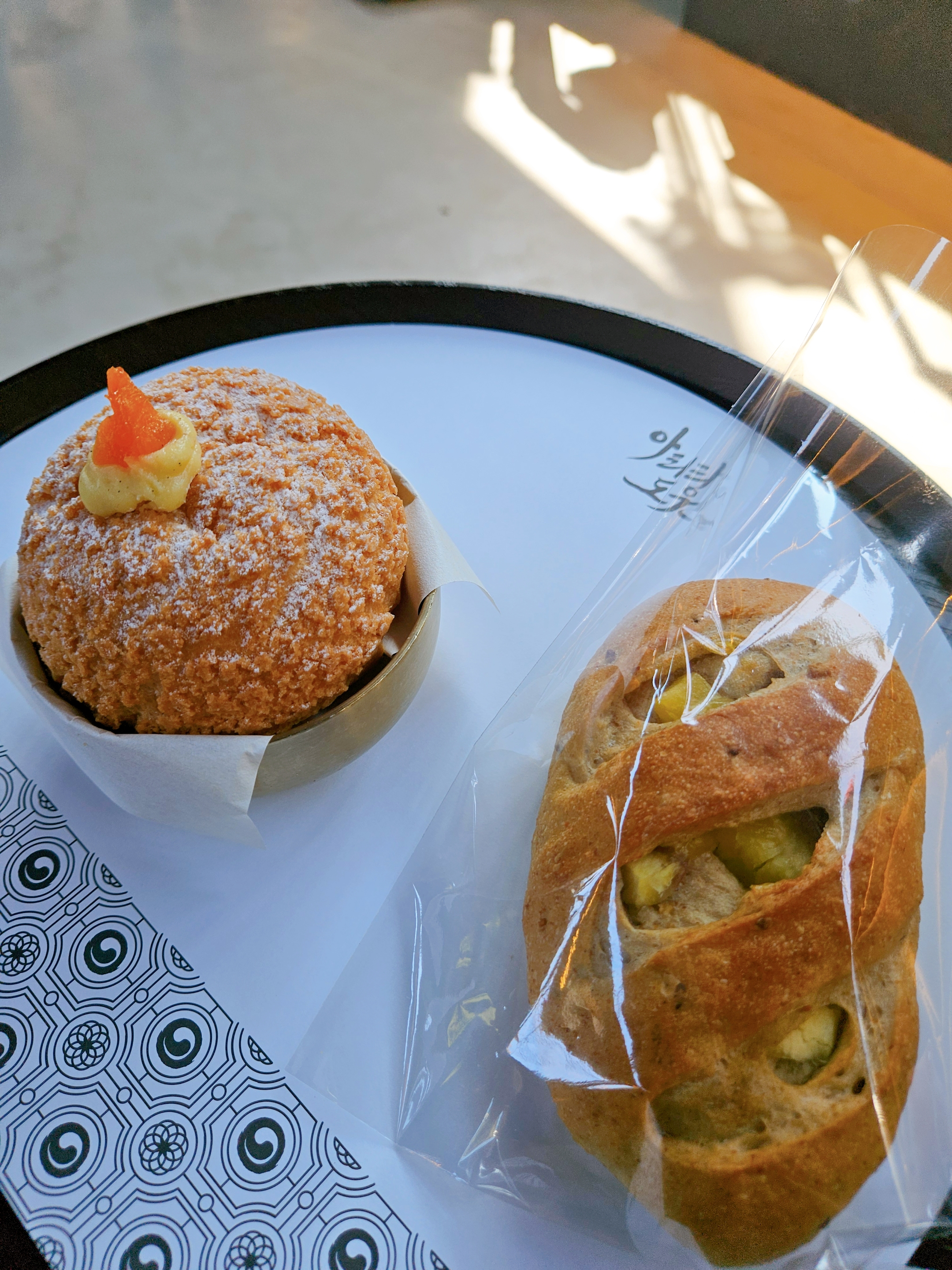 빵은 고봉슈는 홍시퓨레를 넣은 듯 홍시 본연의 단맛에 계란의 구수함이 느껴지는 슈. 고구무화과는 깜파뉴지만 고구마에 설탕을 섞은 건가? 생각보다 고구마 퓨레가 질척하고 달아서 이 빵은 내 입맛엔 별로였음.