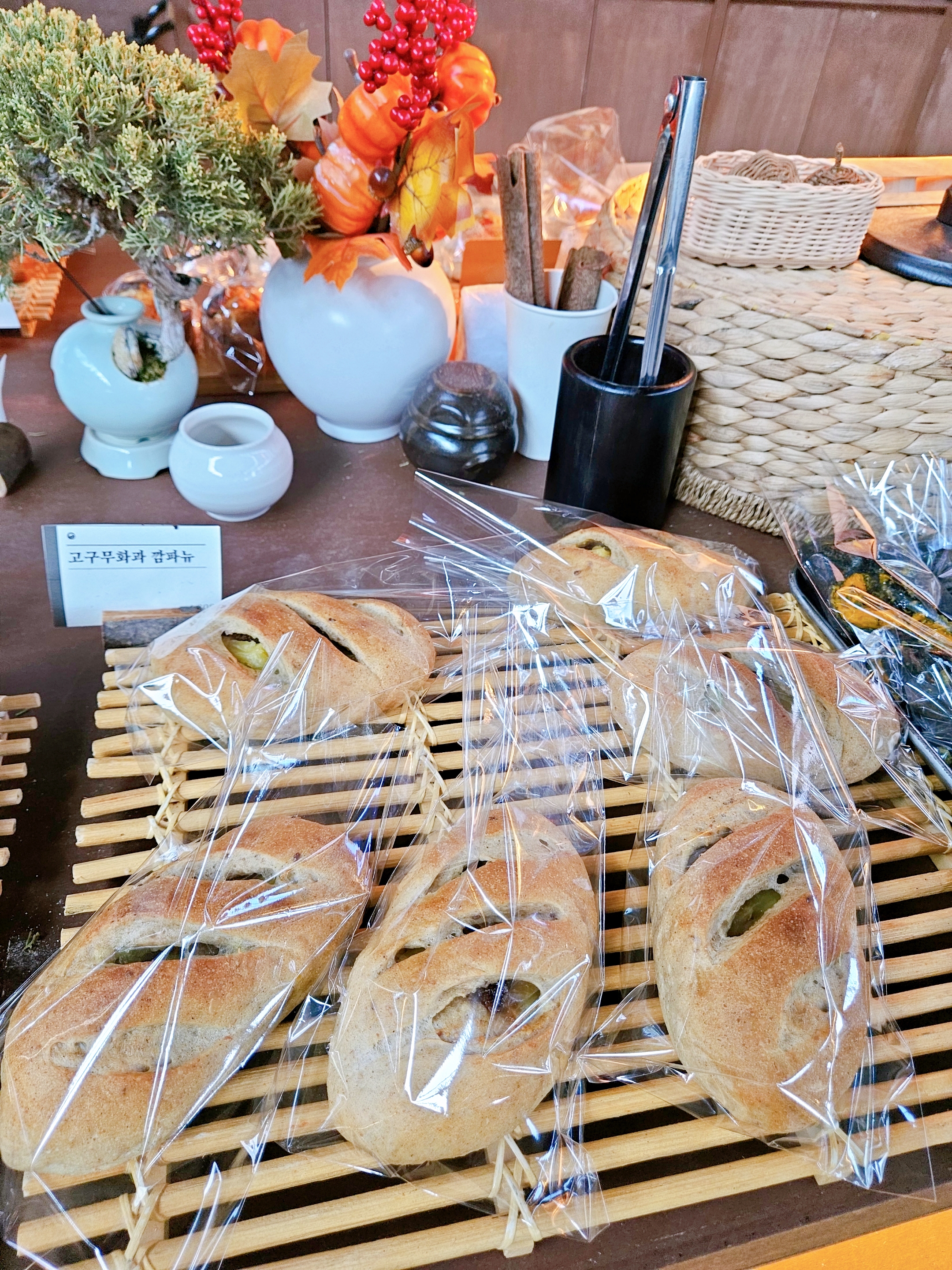 홍시 좋아해서 홍시 고봉슈(4,8)와 고구무화과 깜파뉴(4,8?) 빵 2가지랑 만수무강라테(HOT ONLY 8,5)와 살얼음 단호박 식혜(8,5) 주문함.