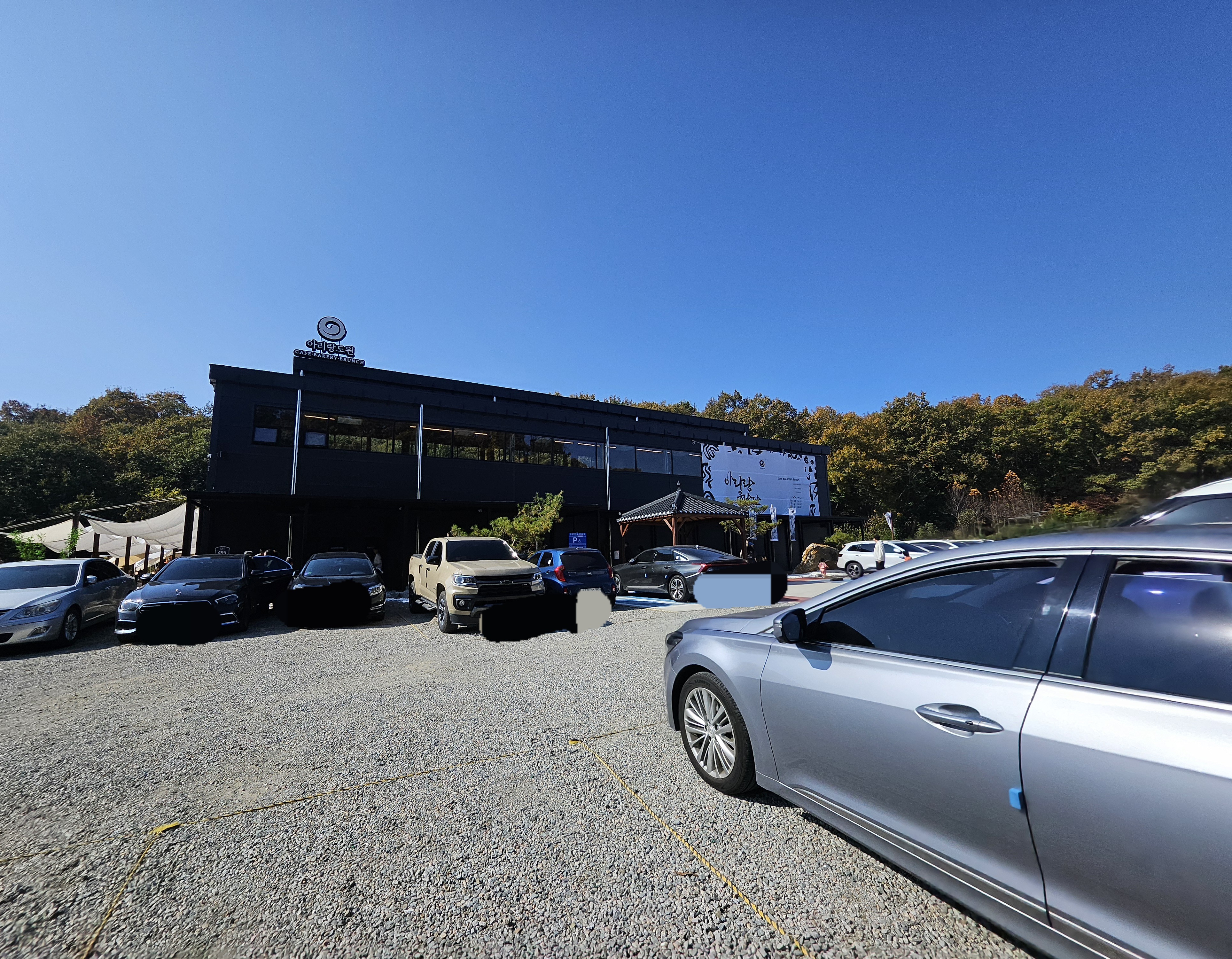 그래서 바로 직행했더니 외관은 컨테이너 느낌이었고 주차장은 자갈밭 ㅎㅎ