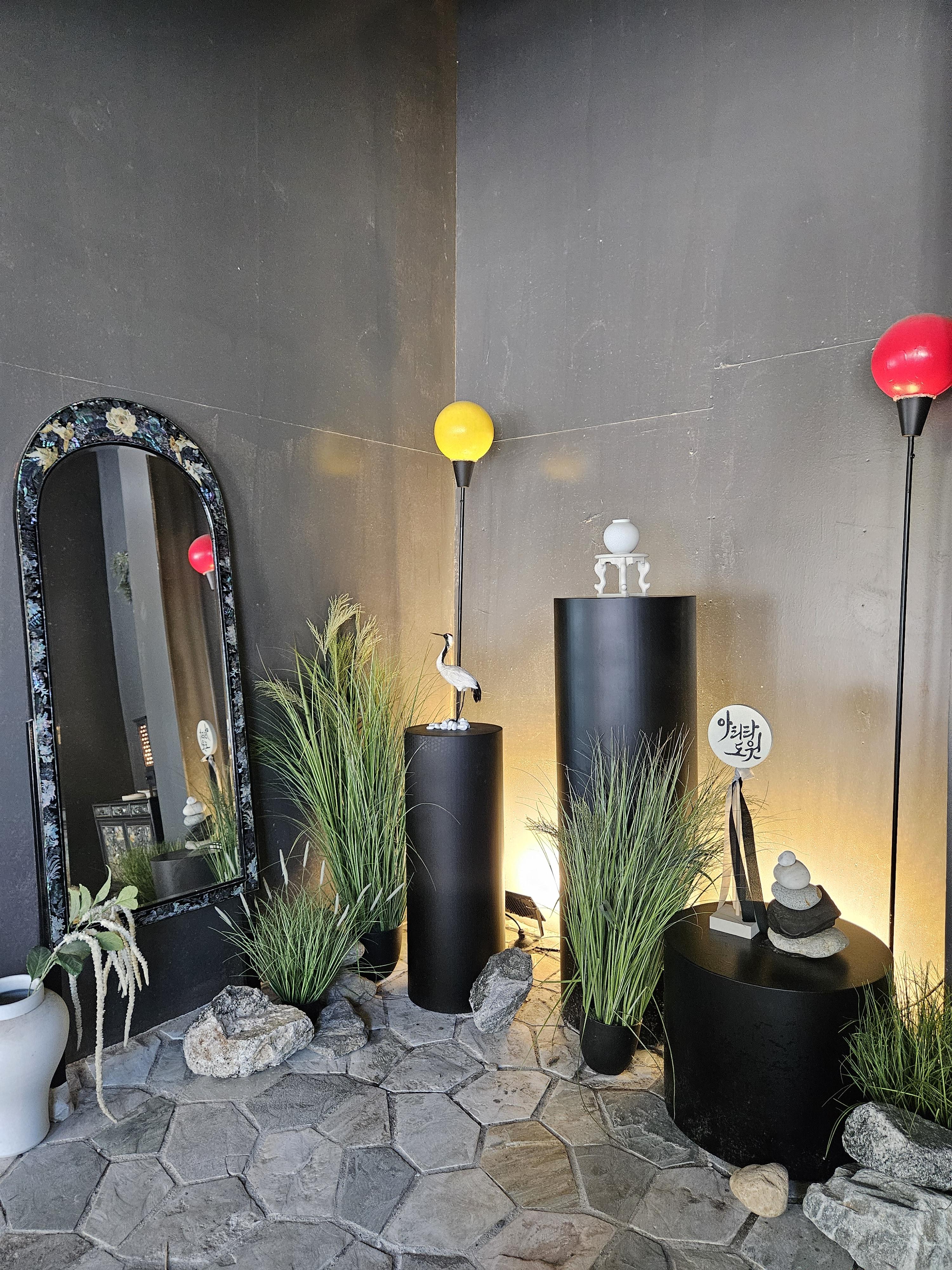 양옆엔 학과 소나무 모형도 있어서 진짜 동양의 미를 여실히 느낄 수 있을 만한 인테리어였다.