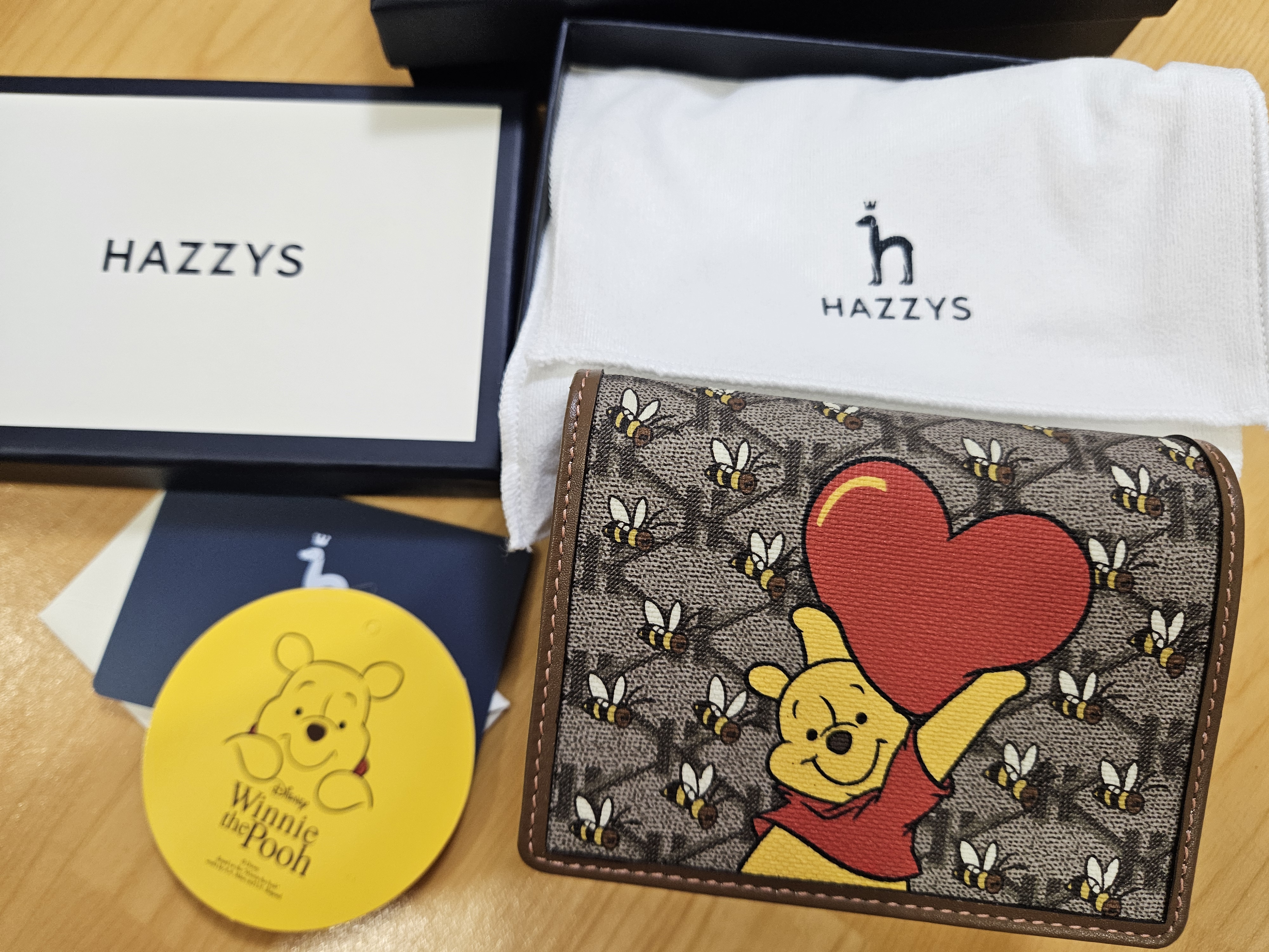 23 SS Disney X HAZZYS 레드 시그니처 패턴 위니 더 푸우 카드 지갑 HIWA3E662R2