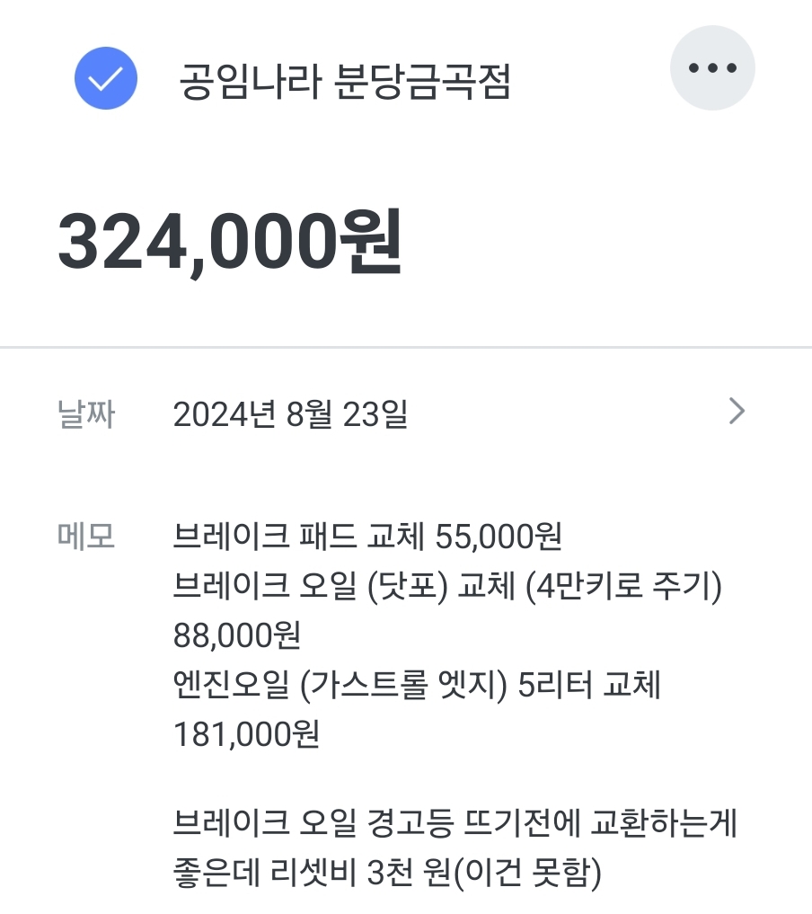 분당 공임나라 브레이크 패드 & 오일, 엔진오일 교체 비용 (공임비 포함)