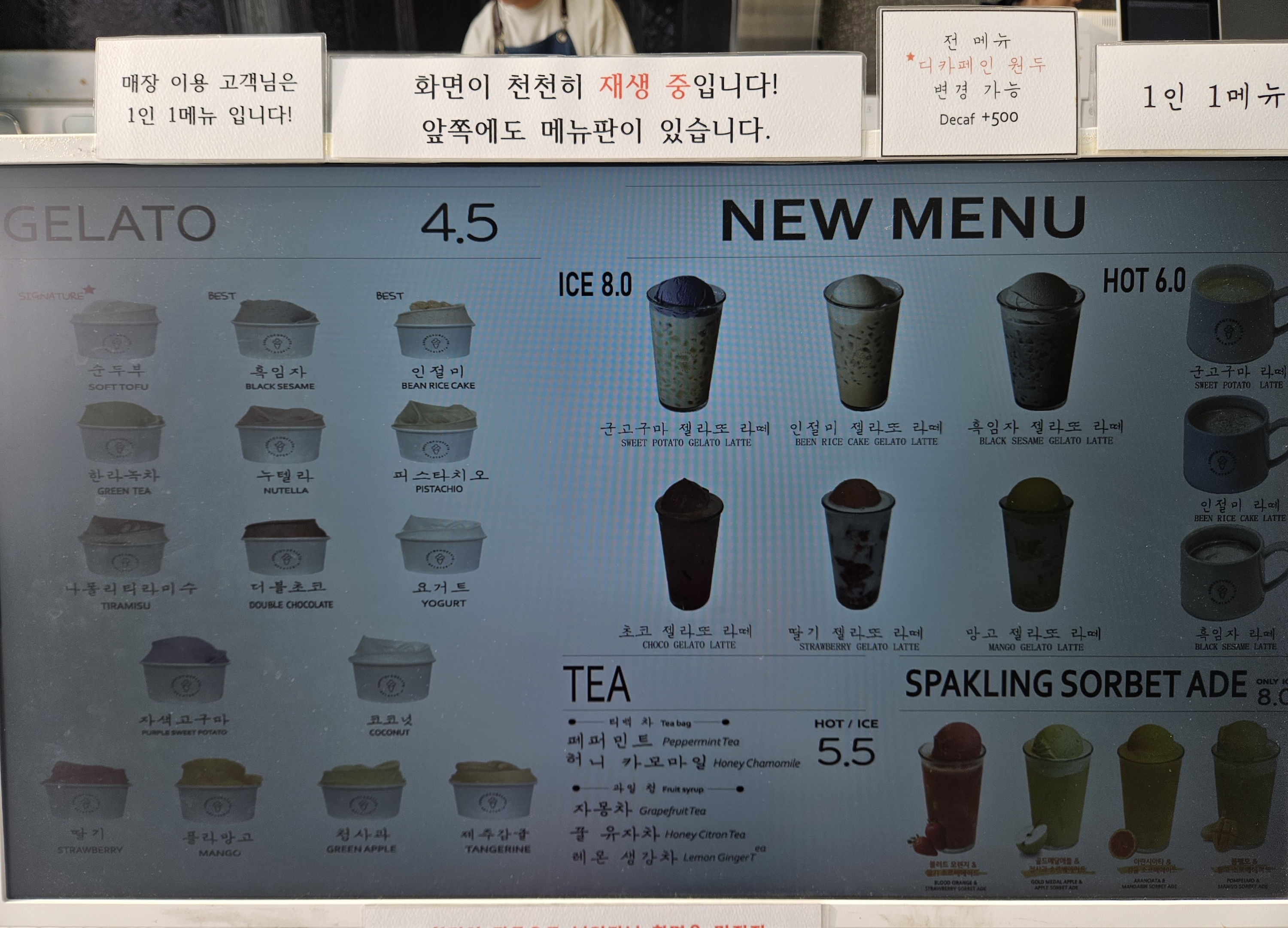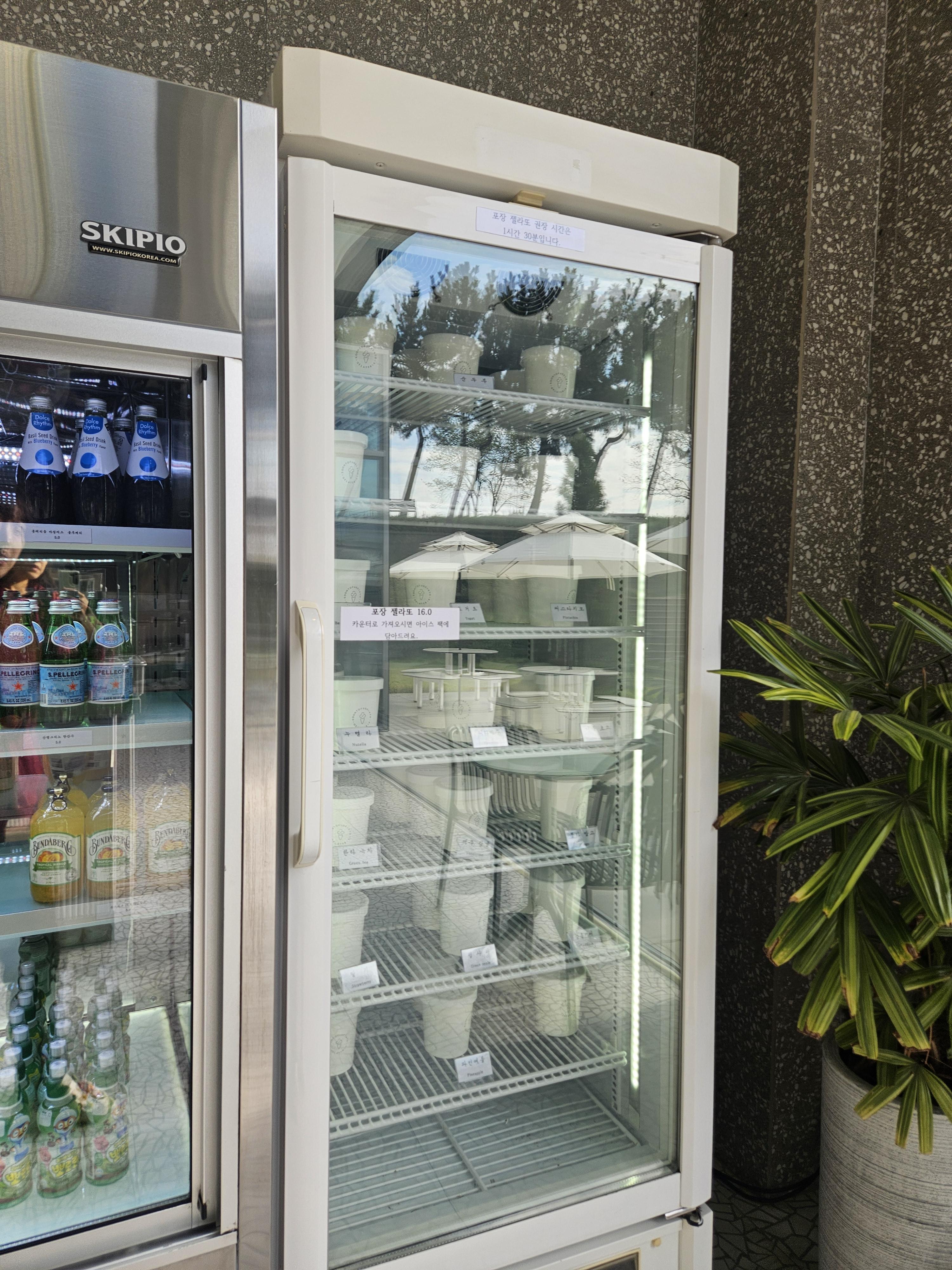 젤라또 종류는 15가지 여기에 신 메뉴로 젤라또 라떼와 스파클링 소르베 에이드, 커피 등 판매한다.