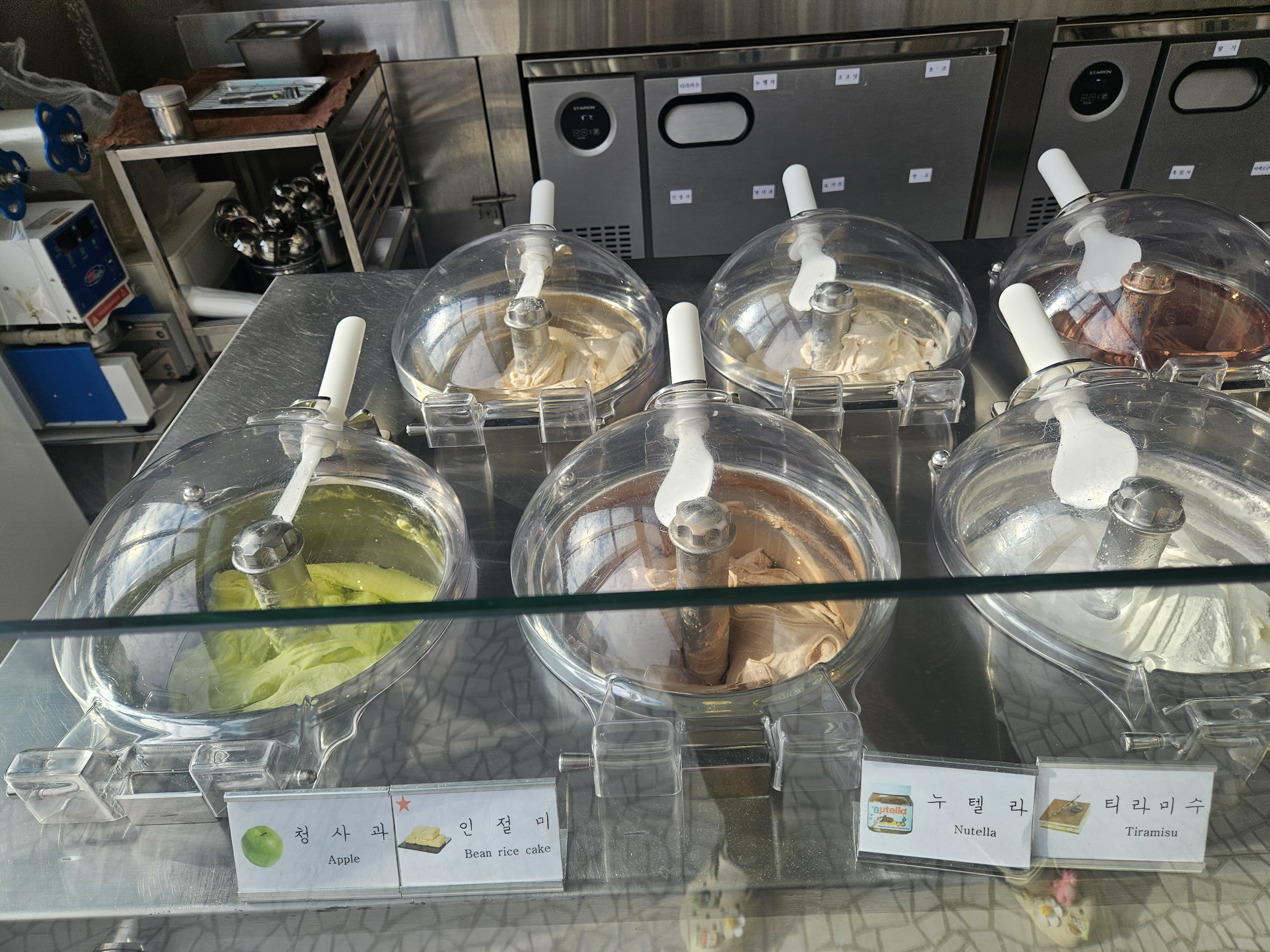 젤라또 기계가 자동으로 회전하는 거 보니 신기했다. 기계가 돌면 돌수록 젤라또가 더 쫀쫀해질 것 같네🍦😋