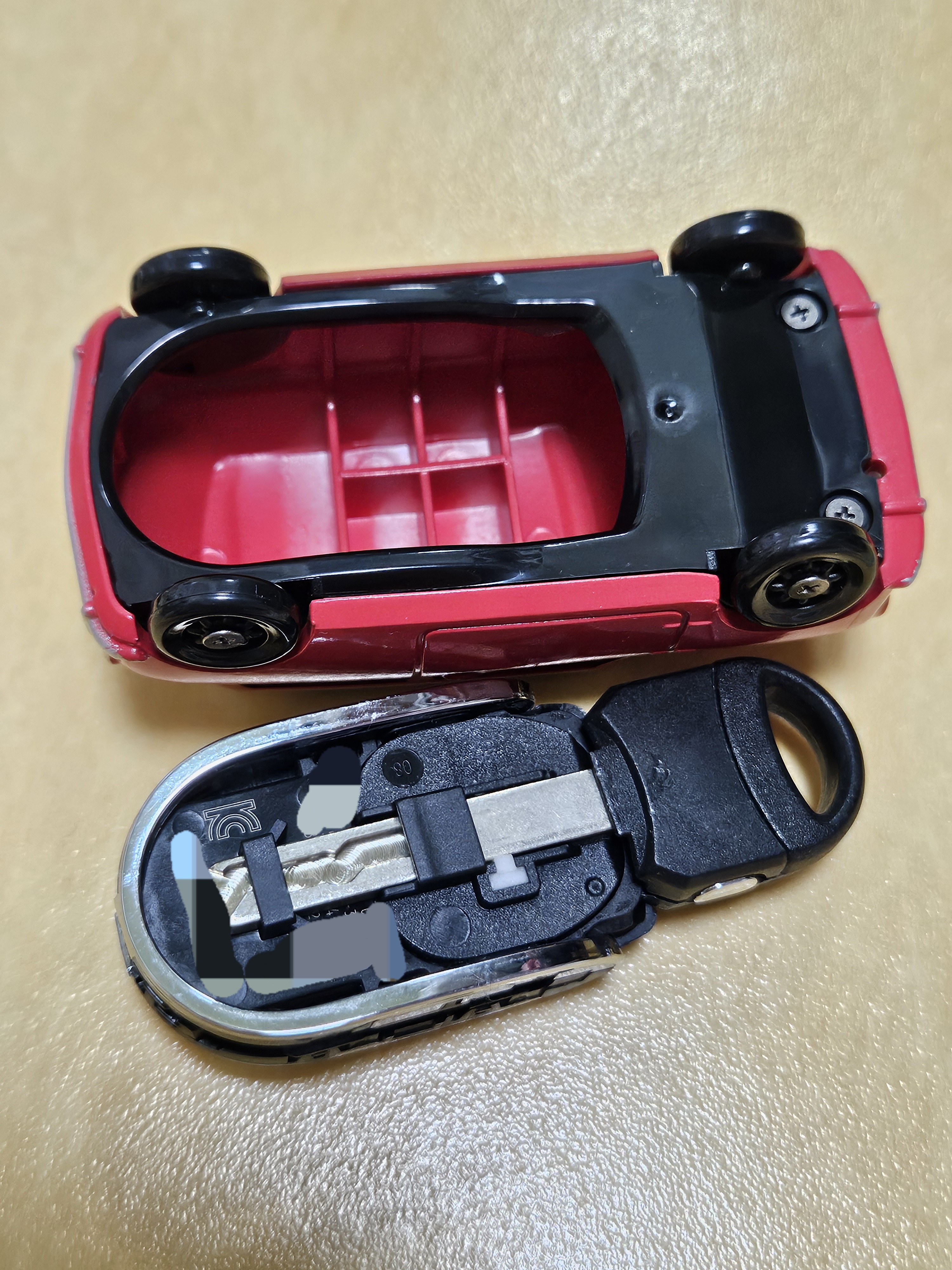 기존 케이스도 귀엽고 블링블링한데 주렁주렁 달긴 게 은근 무게감이 있어서 미니카 모형 키케이스로 교체