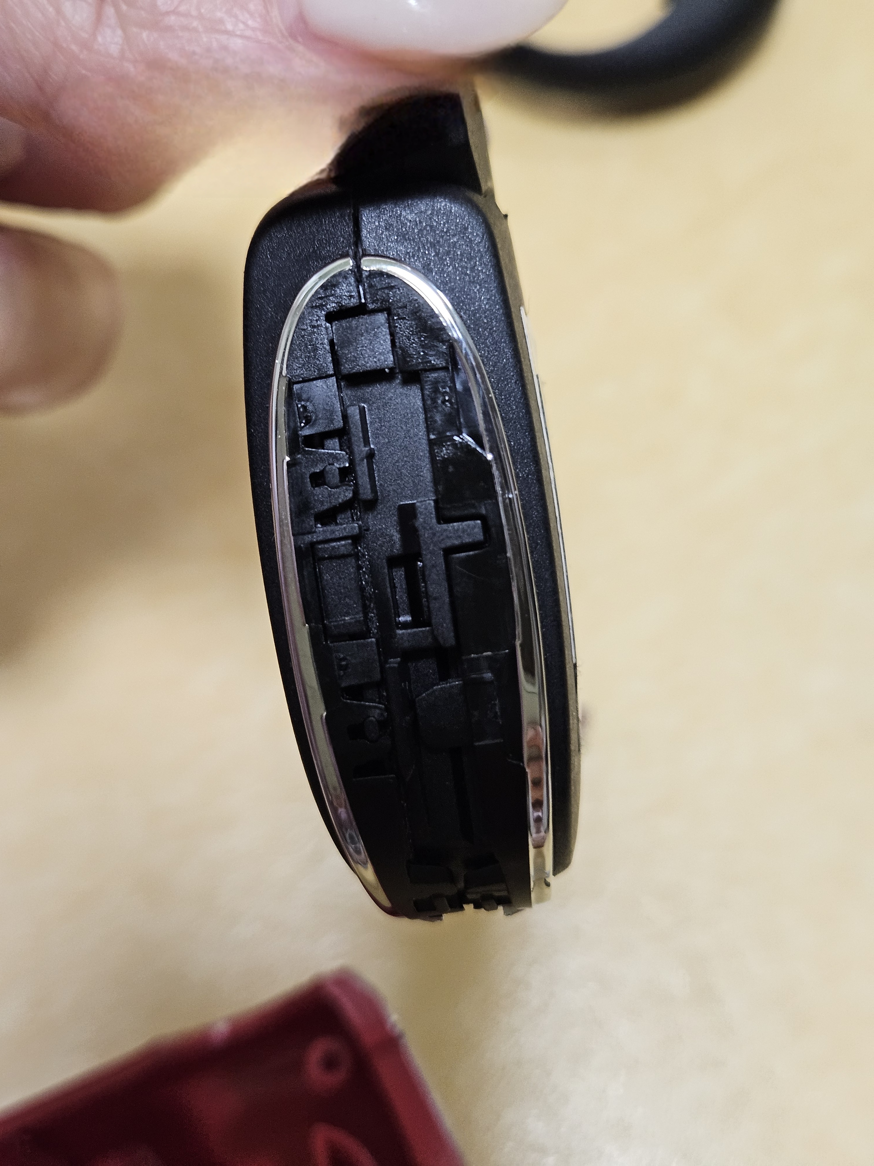 키 밑에 중앙 홈? 에 일자 드라이버 꽂아 지렛대 원리로 들어 올리려고 시도하면 저렇게 눌려 플라스틱에 흠집이 난다 ㅠㅠ