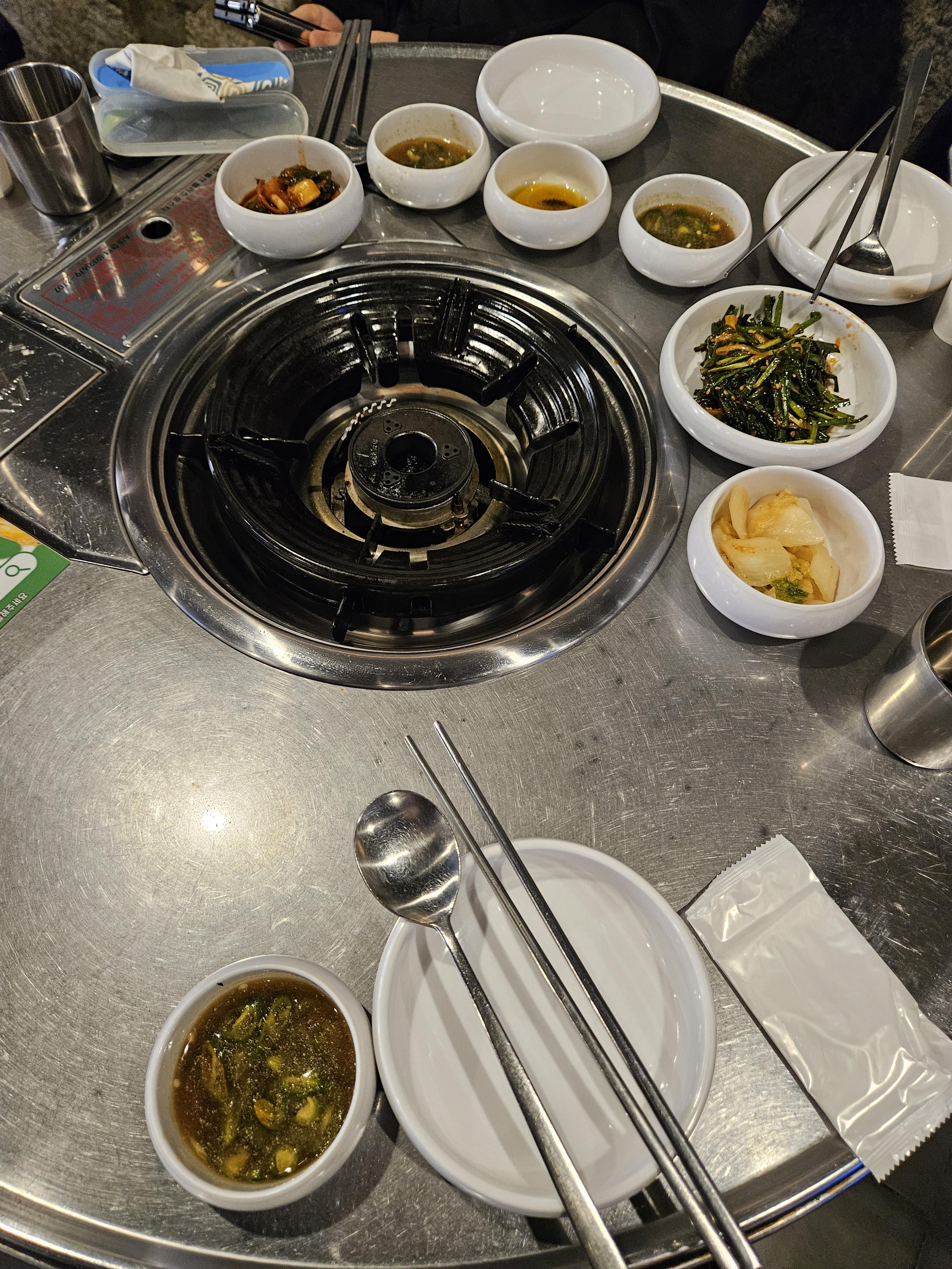 보통 부추 같이 익혀주는데 미나리라 더 향긋해서 좋았고 부추무침도 같이 제공되니 👍
