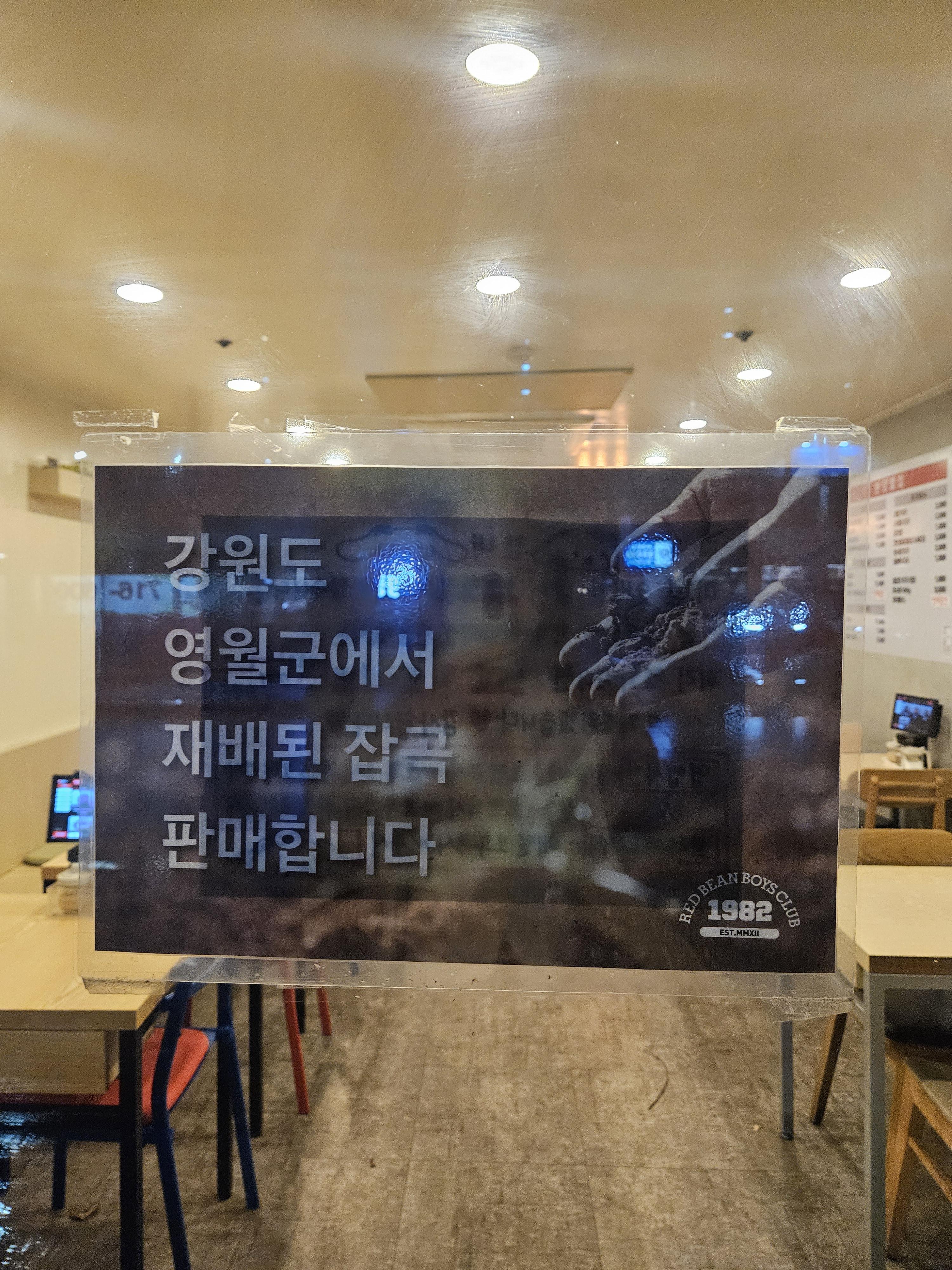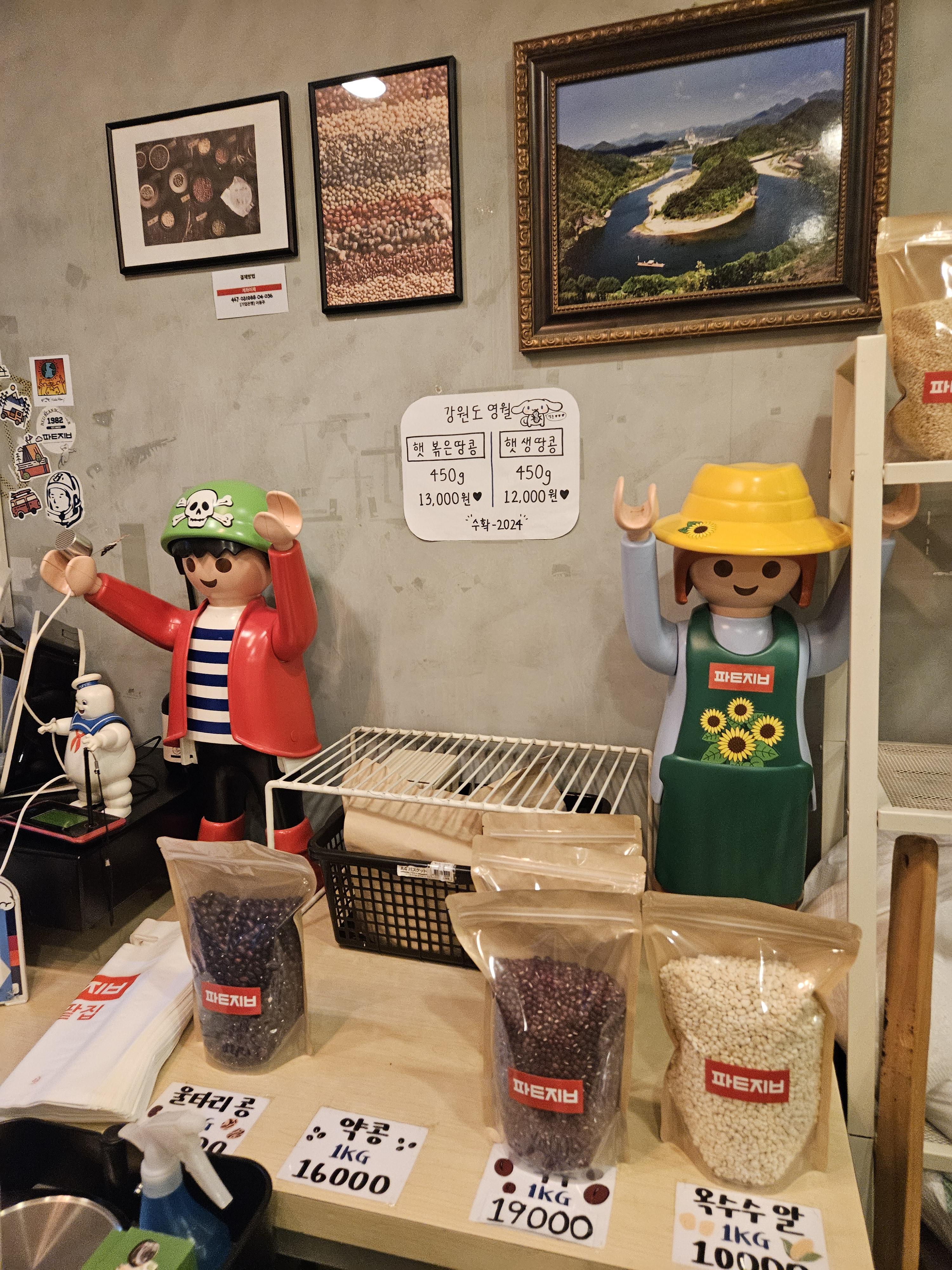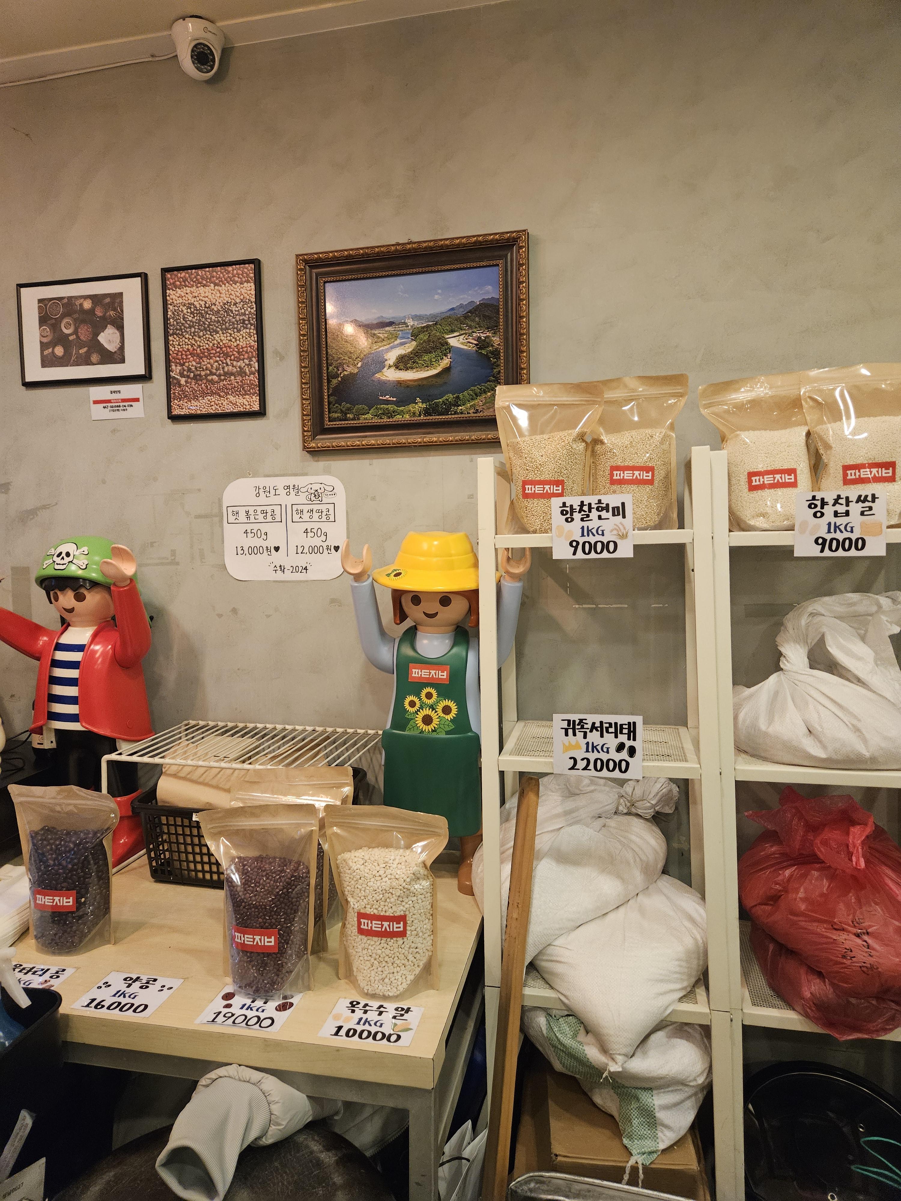 카운터 우측에는 강원도 영월에서 농사지은 팥, 땅콩, 현미, 찹쌀, 서리태 등 잡곡 등도 판매하고 있었다. 성남 지역화폐 모바일 카드 사용 가능한데 금액이 조금만 남아있어서 다음에 충전하면 이용해야겠다.