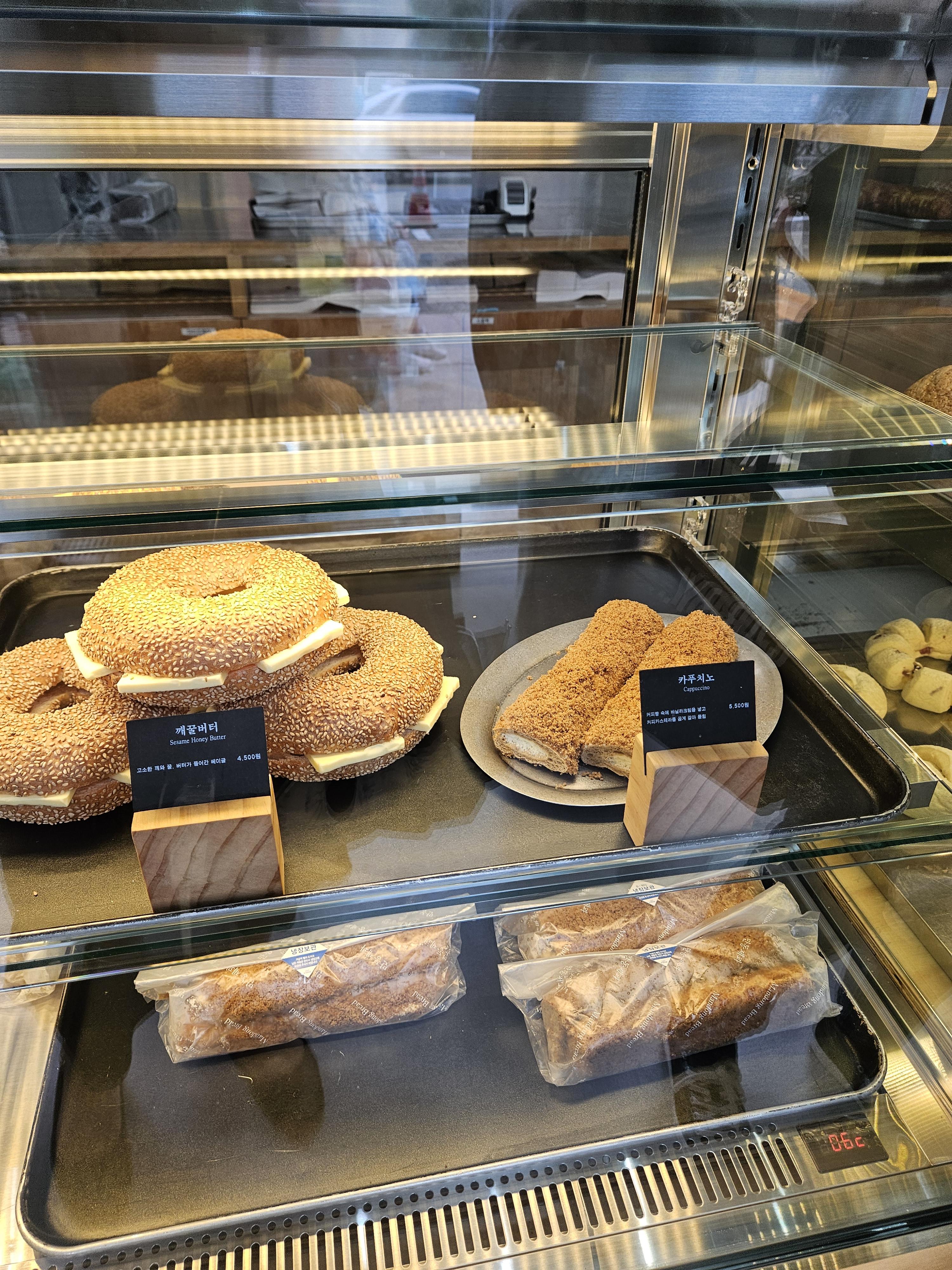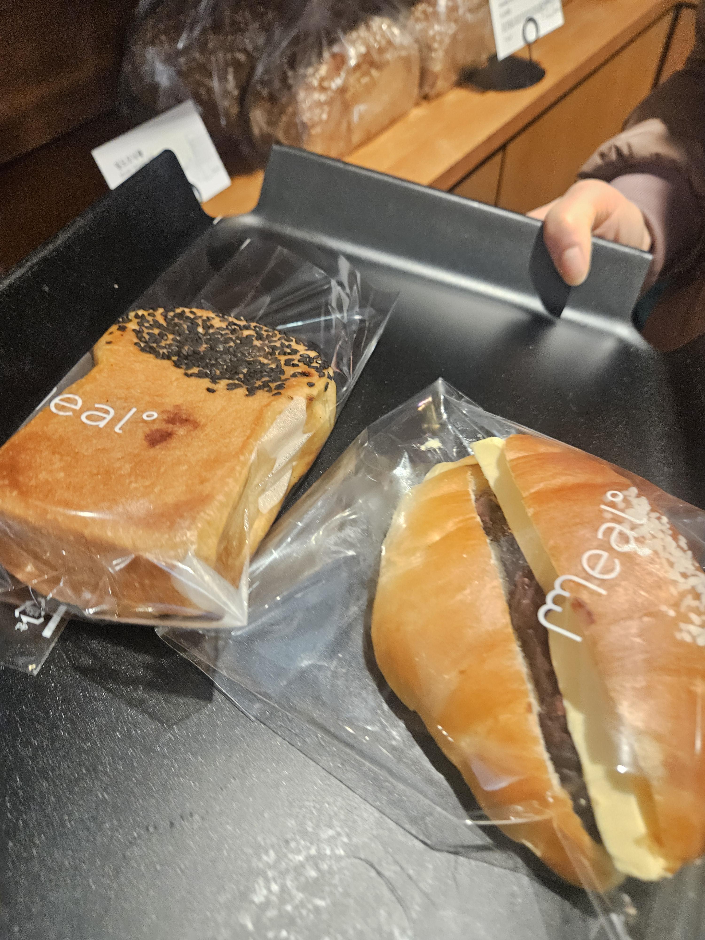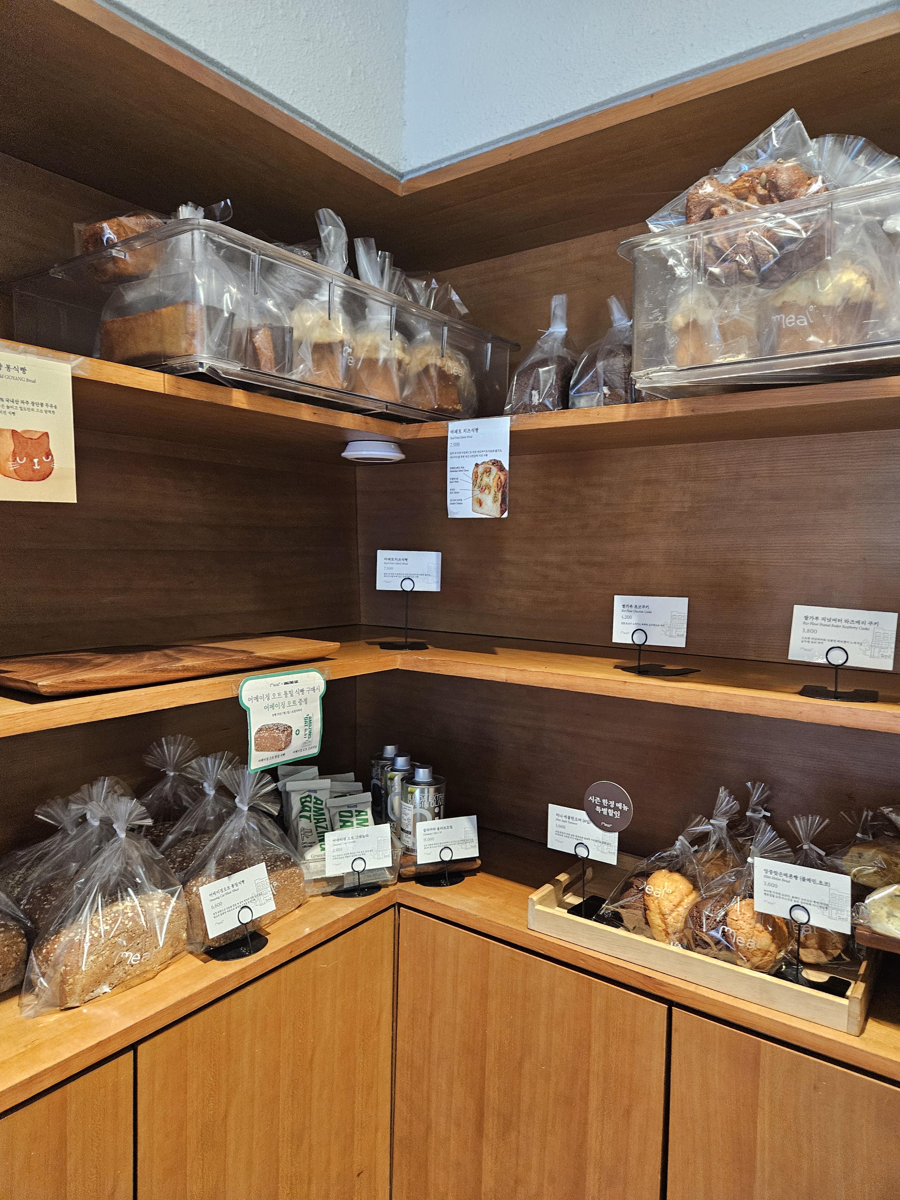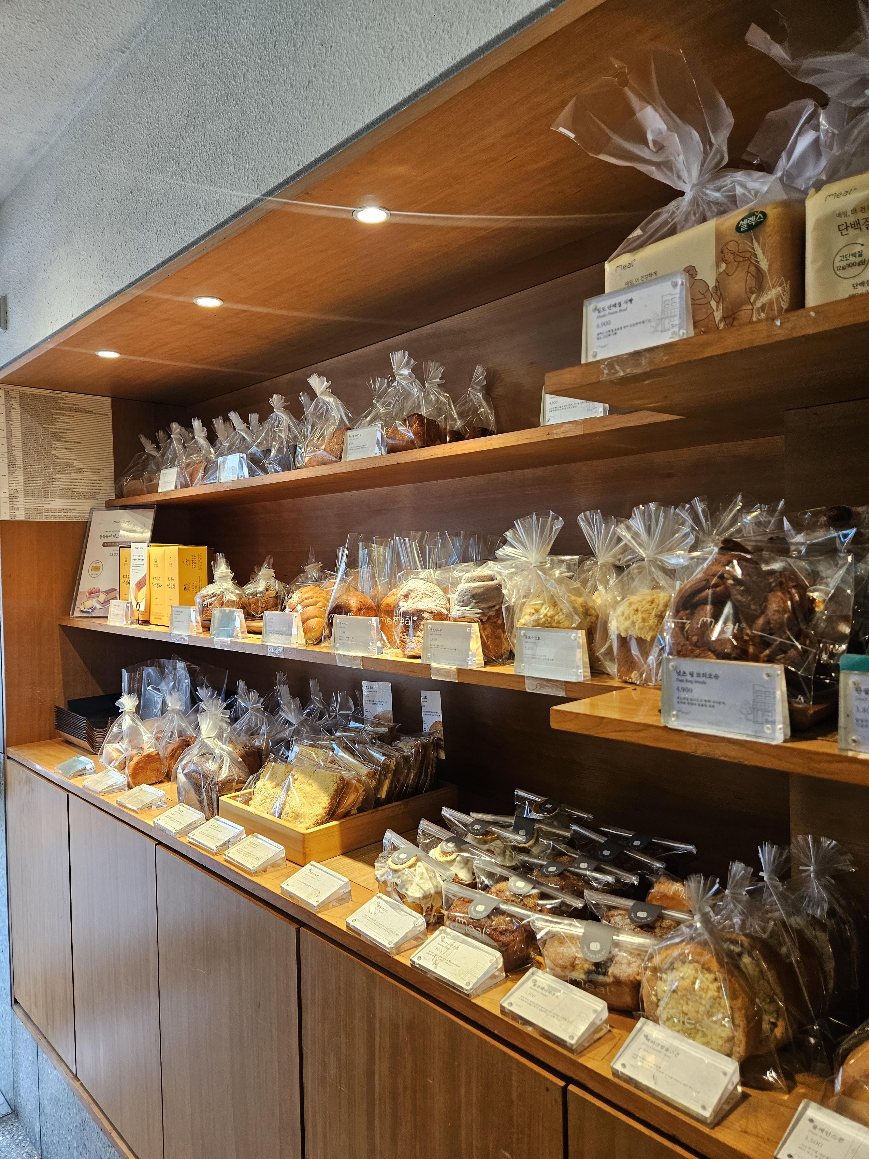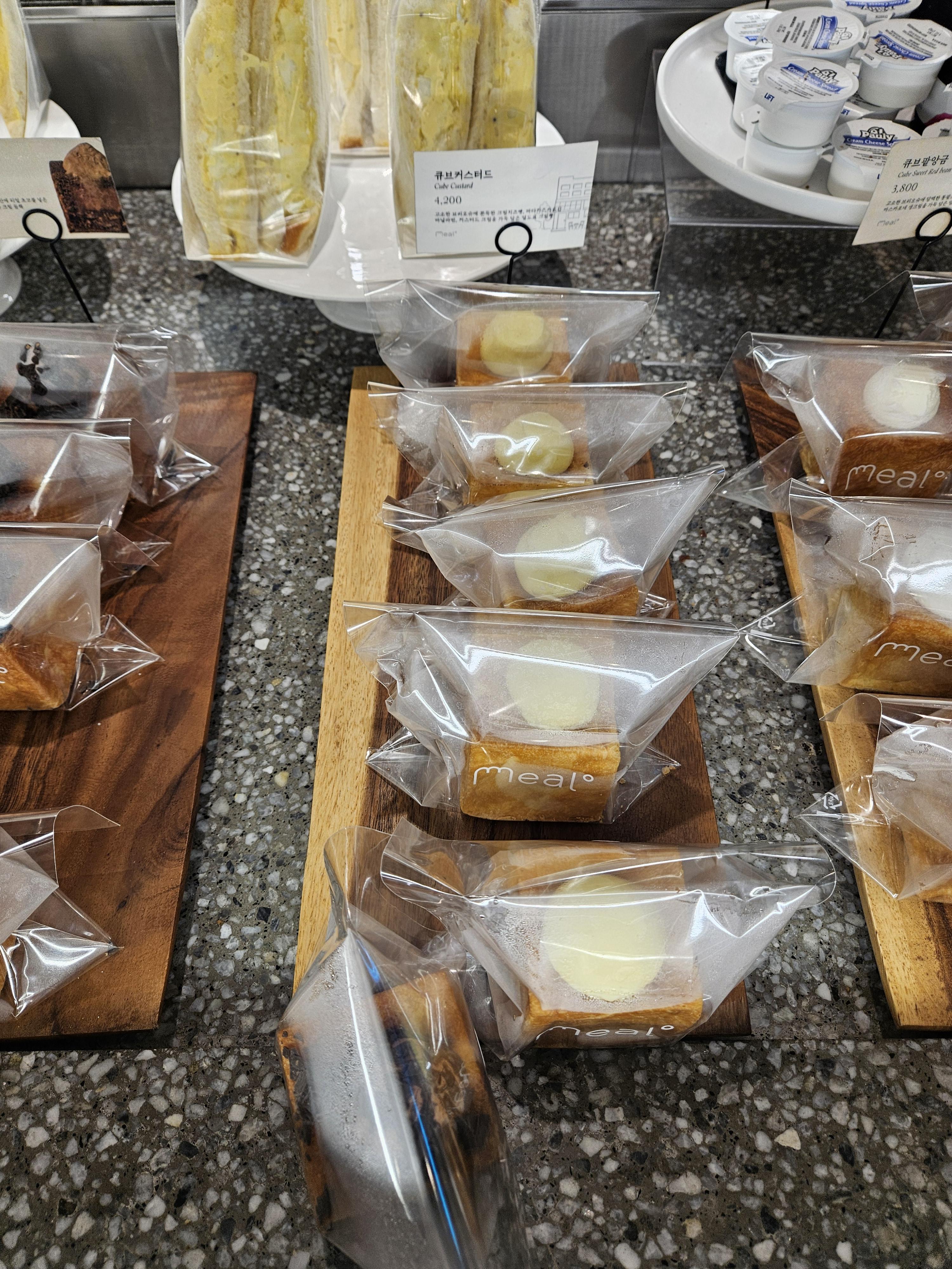 밀도 빵집은 식빵을 저지방 우유를 넣은 담백 식빵, 생크림을 넣어 반죽한 리치식빵에 패스츄리 반죽과 커스터드 크림, 생크림, 초코크림 등을 넣은 큐브식빵, 스콘 등이 유명했는데 현재는 더 다양한 종류의 빵이 생겨서 좋음.