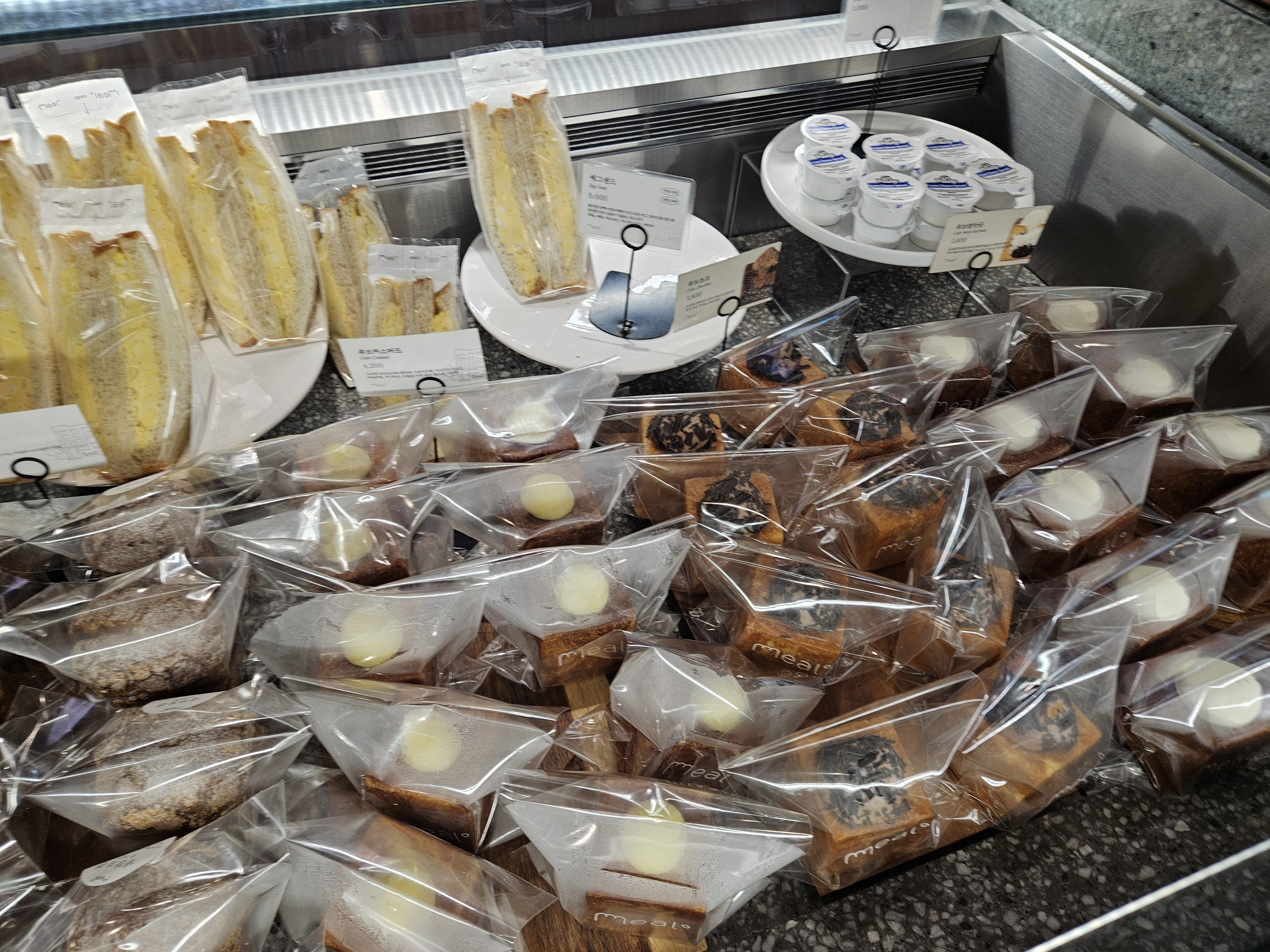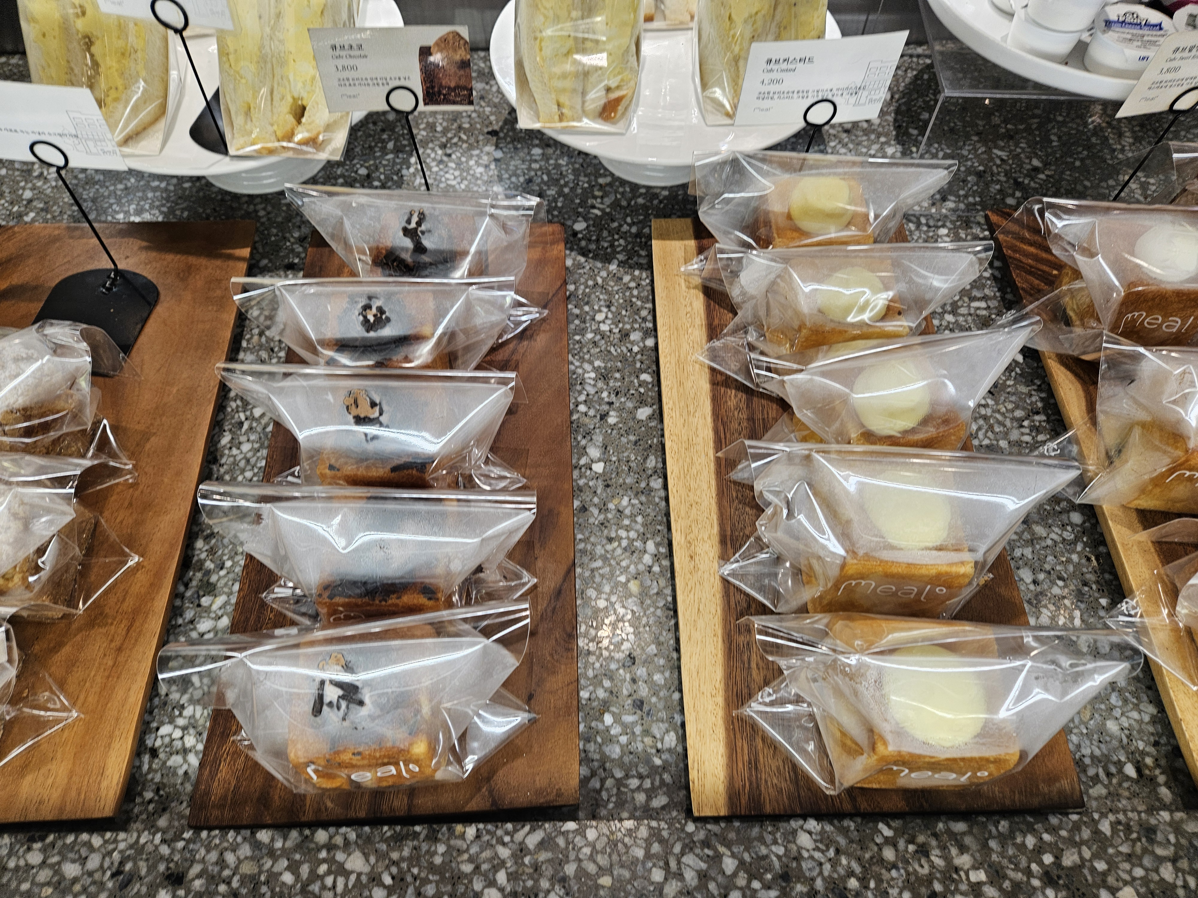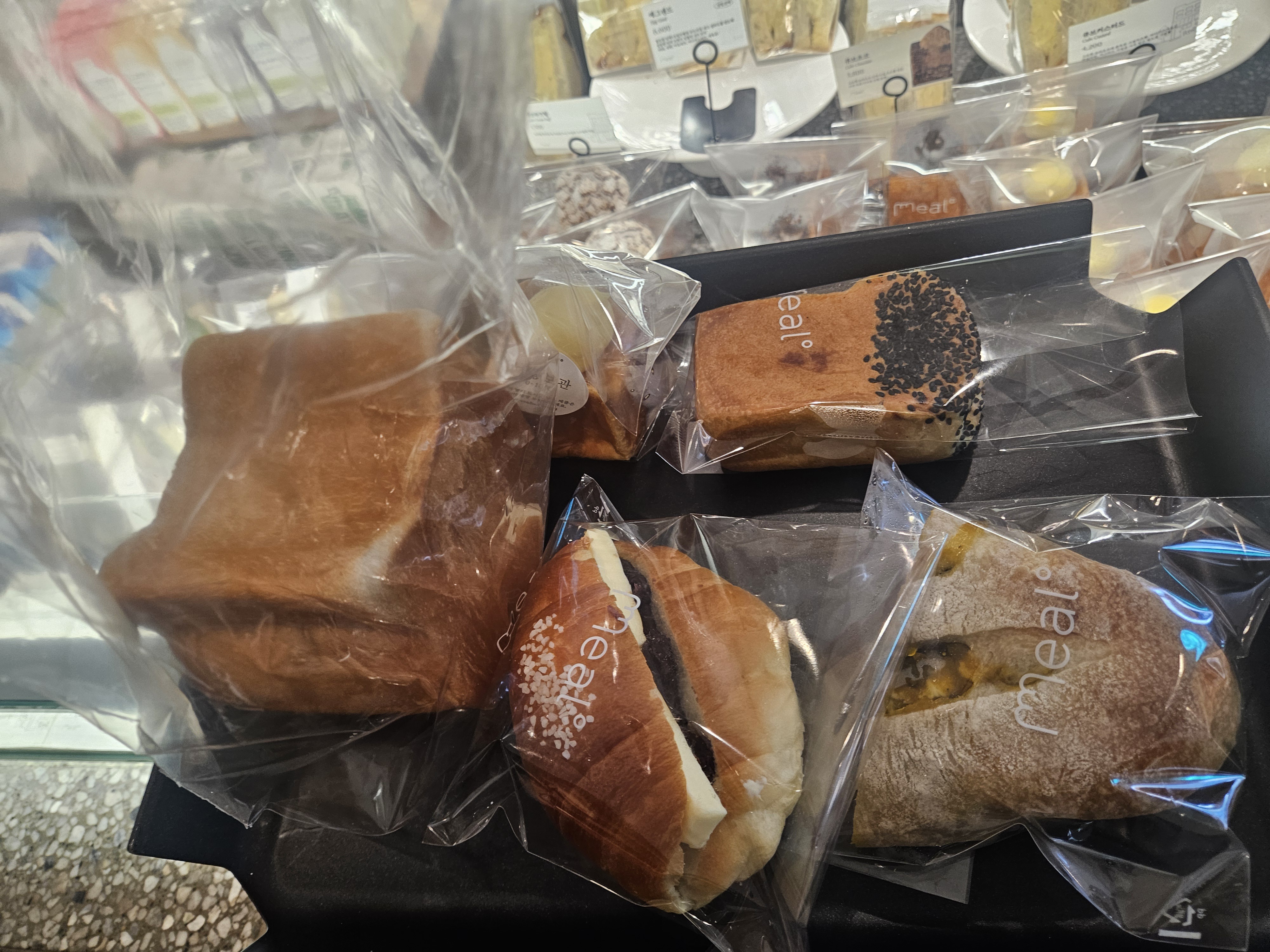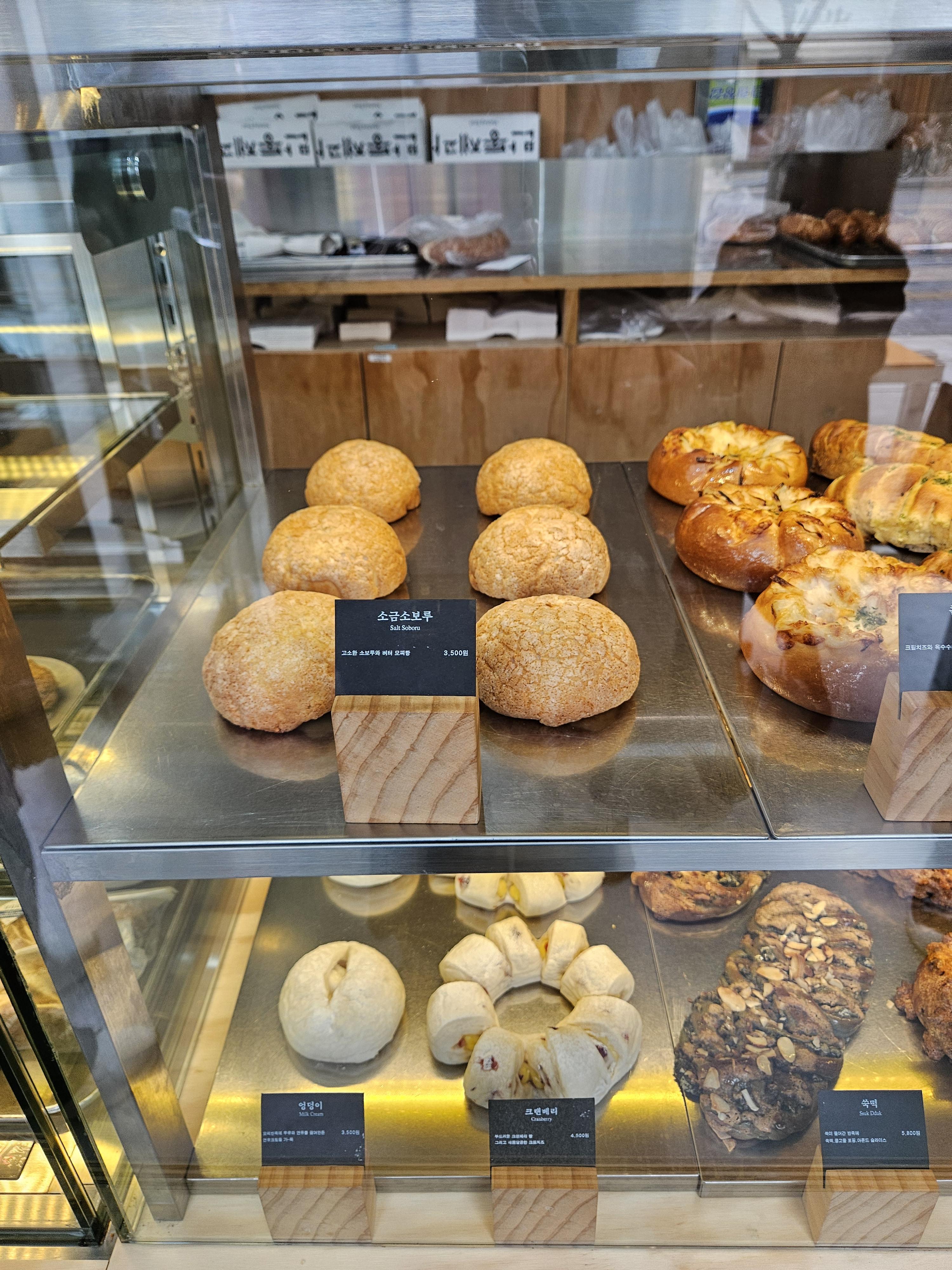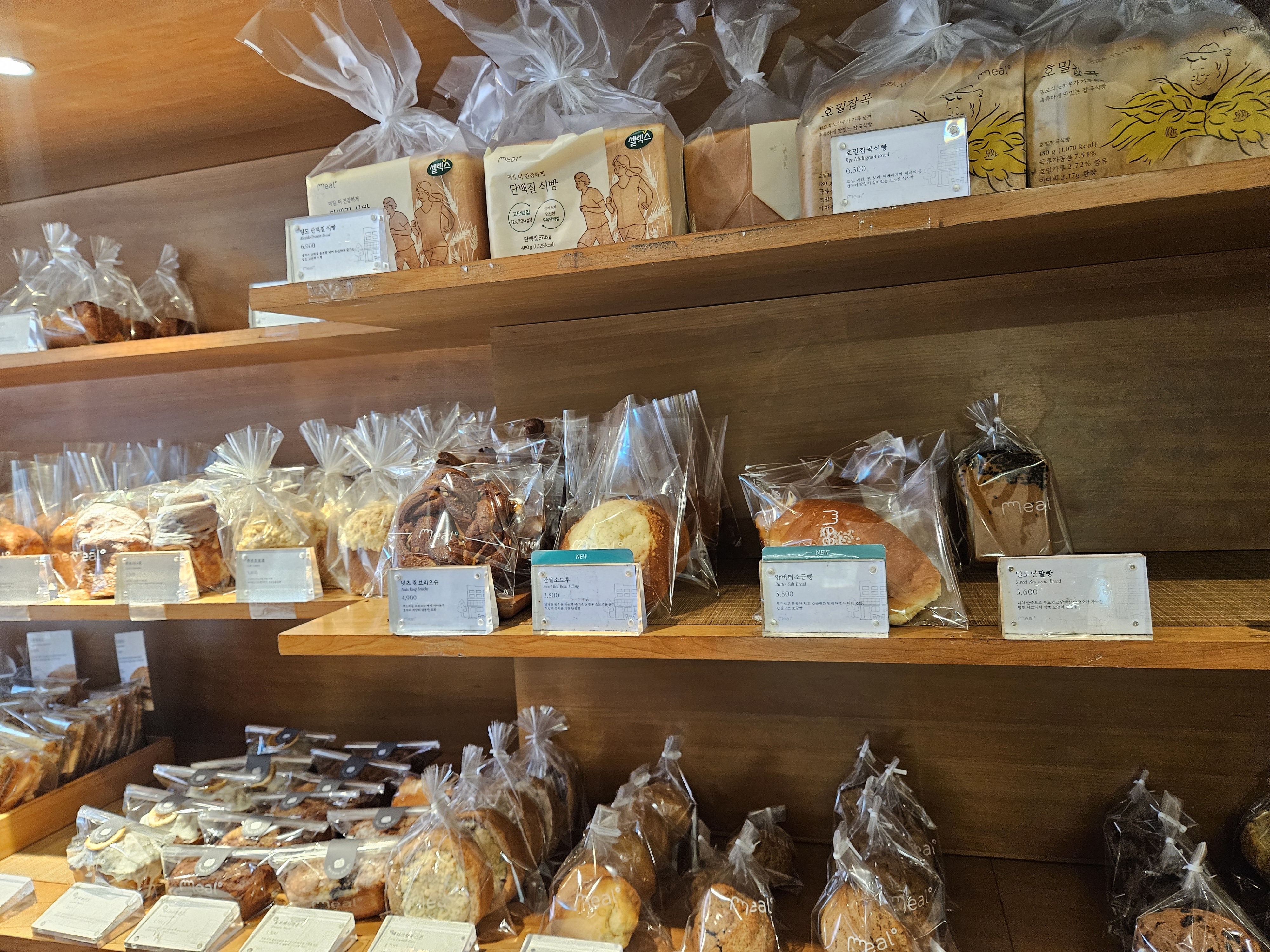 밀도 빵집은 식빵을 저지방 우유를 넣은 담백 식빵, 생크림을 넣어 반죽한 리치식빵에 패스츄리 반죽과 커스터드 크림, 생크림, 초코크림 등을 넣은 큐브식빵, 스콘 등이 유명했는데 현재는 더 다양한 종류의 빵이 생겨서 좋음.