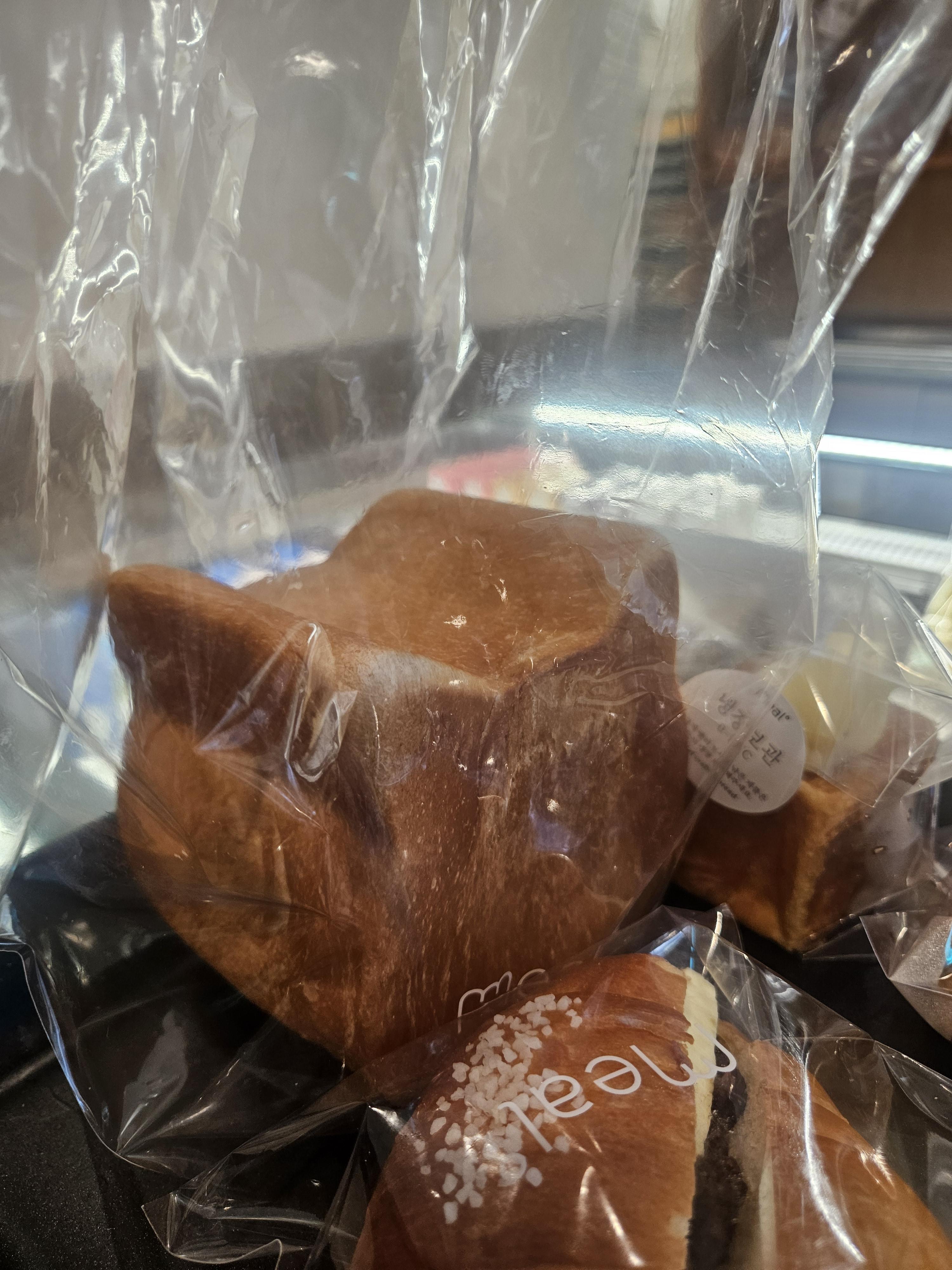 앙버터 소금빵은 버터가 실하고 앙금은 아주 달지 않다. 소금빵에 콕 박힌 소금이 짠데 앙버터와 고소한 빵반죽 소금의 짠맛이 조화롭게 느껴짐.