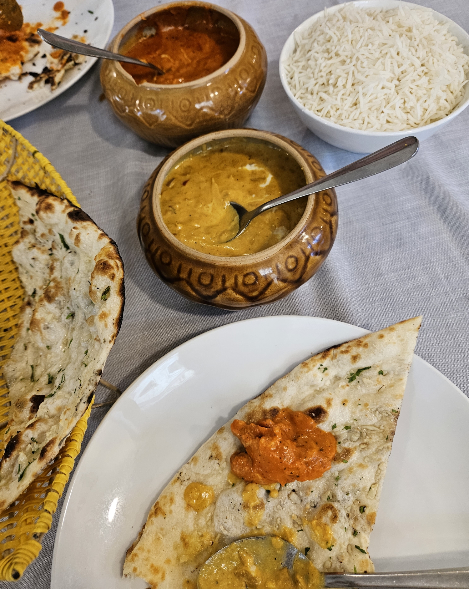 커리는 두 가지를 골랐는데 치킨과 새우 들어간 게 무난하게 맛있게 먹을 수 있을 듯하여 Butter Chicken(VND 140,000)과 Korma Prawn(VND 145,000)을 골랐고 갈릭난(VND 35,000)에 나중에 커리가 너무 많아서 난 대신 밥을 추가했는데