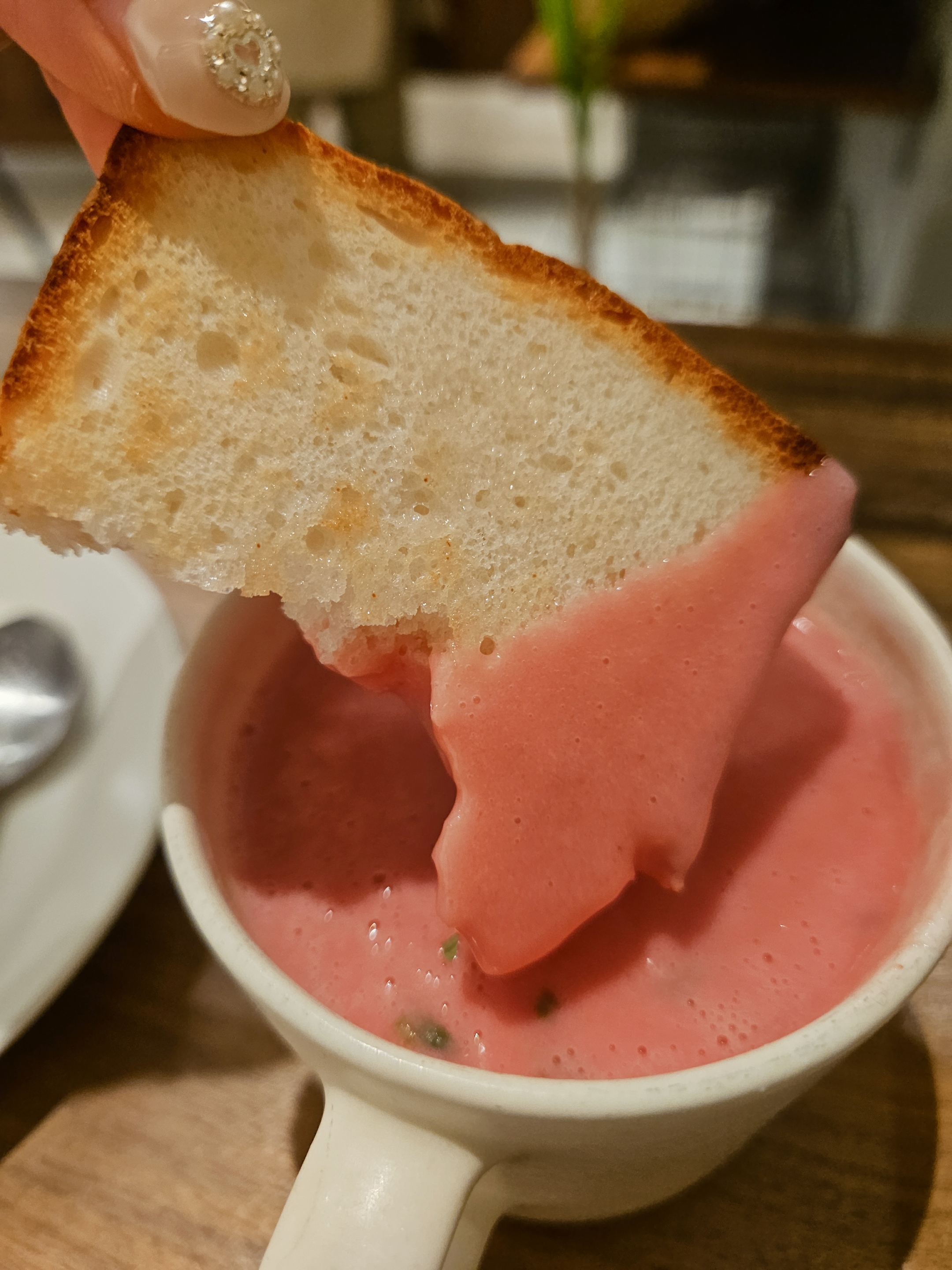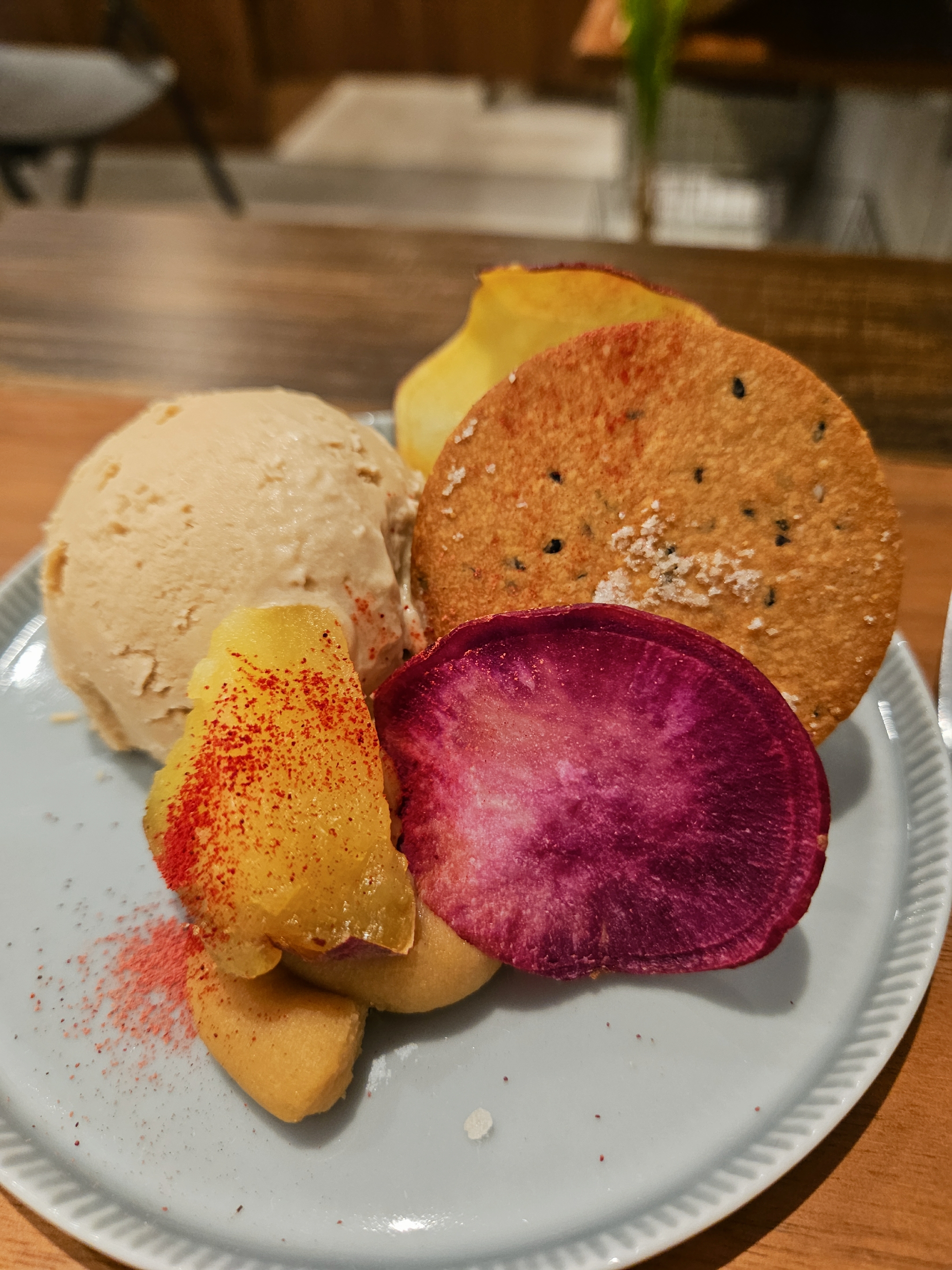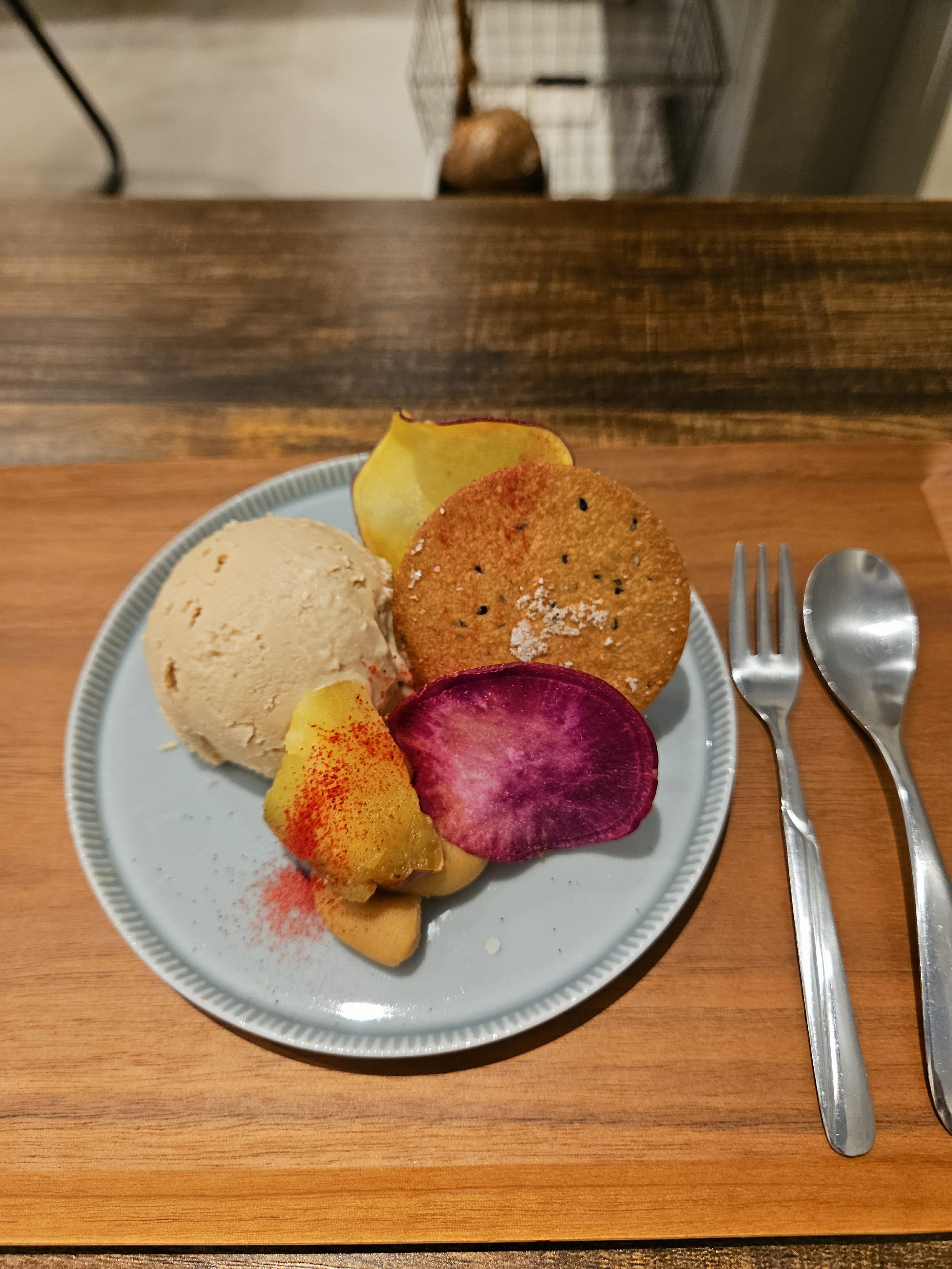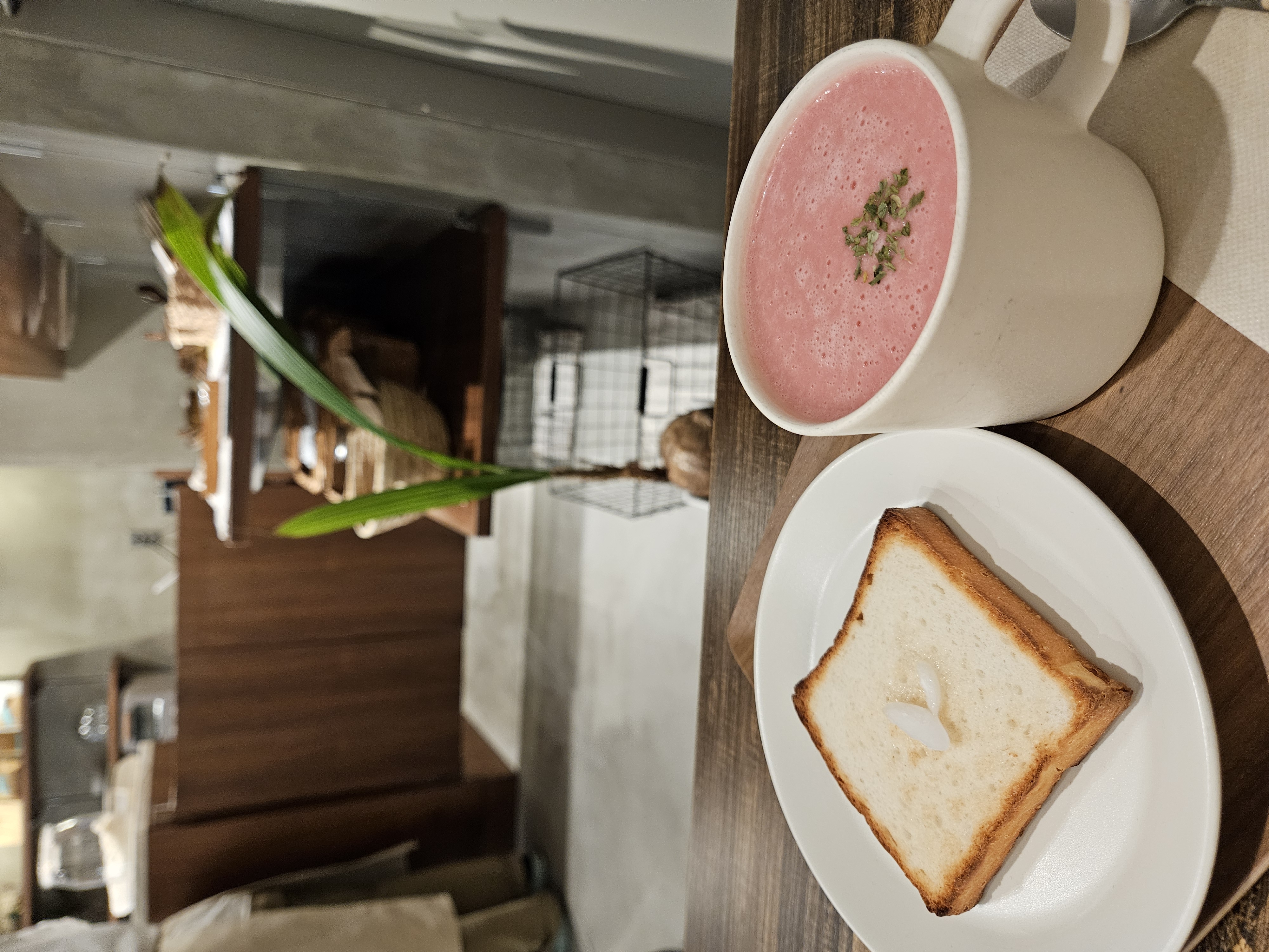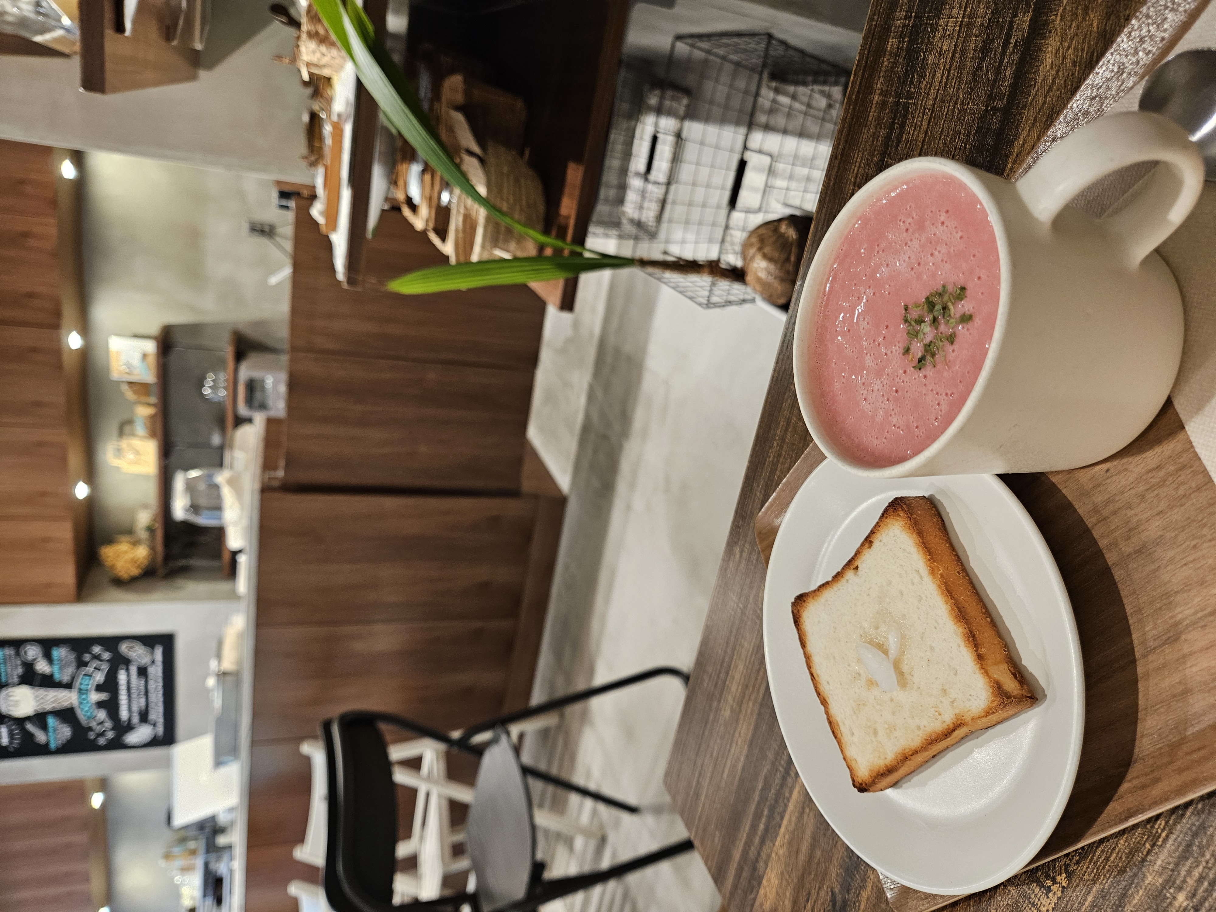 위치는 난바역 근처 사쿠라가와역 5번 출구 도보 3분 거리. 오늘의 수프와 빵 세트와 코코넛 아이스크림과 고구마 과일칩 과자가 같이 나오는 플랫 메뉴 2개 주문해서 수프랑 빵 먹고 아이스크림까지 먹고 원데이 클래스 구경 후 느긋하게 나왔음.