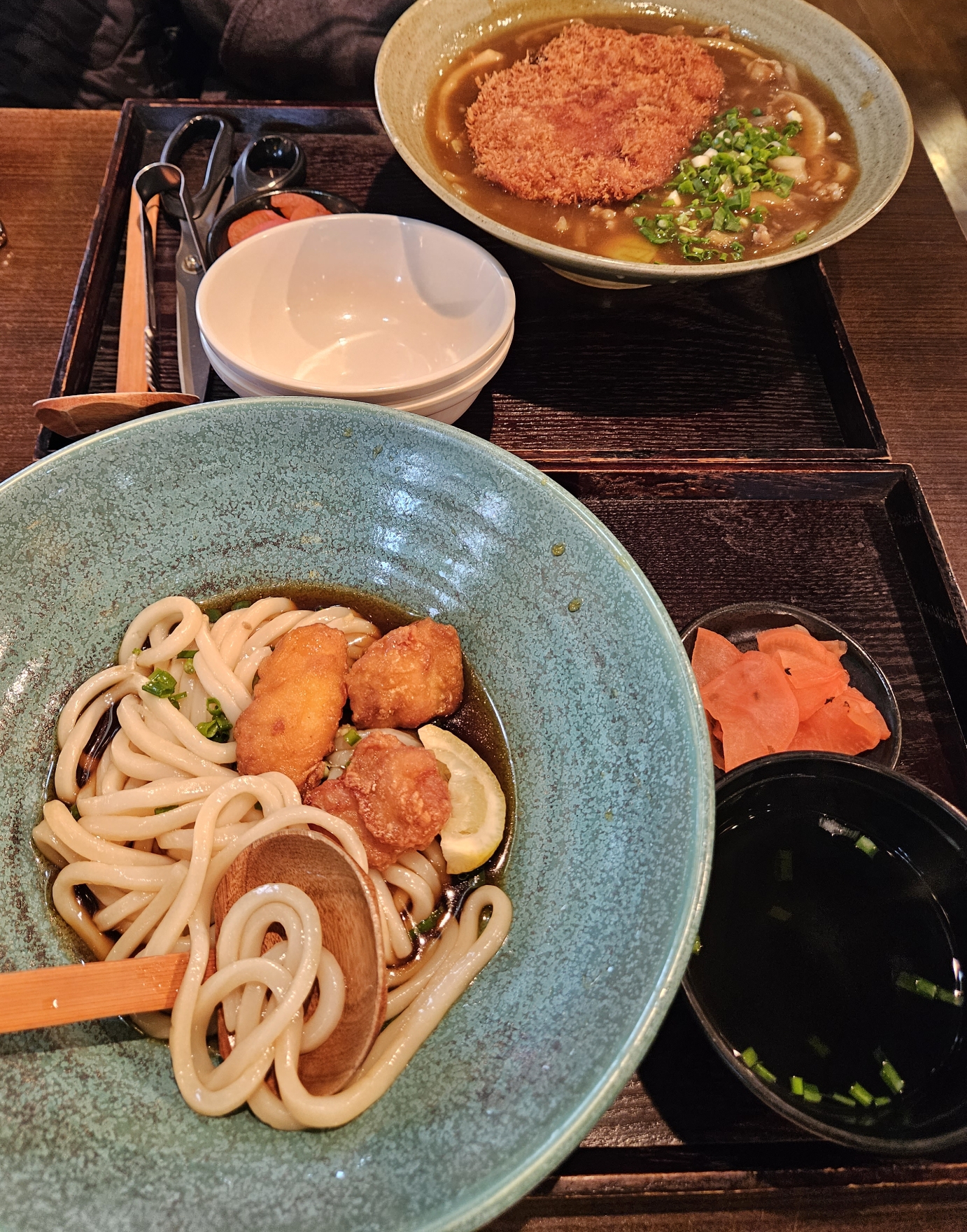 나눠 먹으려고 앞접시도 받았음. 전분이 많은지 카레가 묽어서 선호하는 스타일은 아닌데 카레 우동이라 일부러 후루룩 목 넘김이 좋게 묽은 농도로 만든 것 같기도 하고...