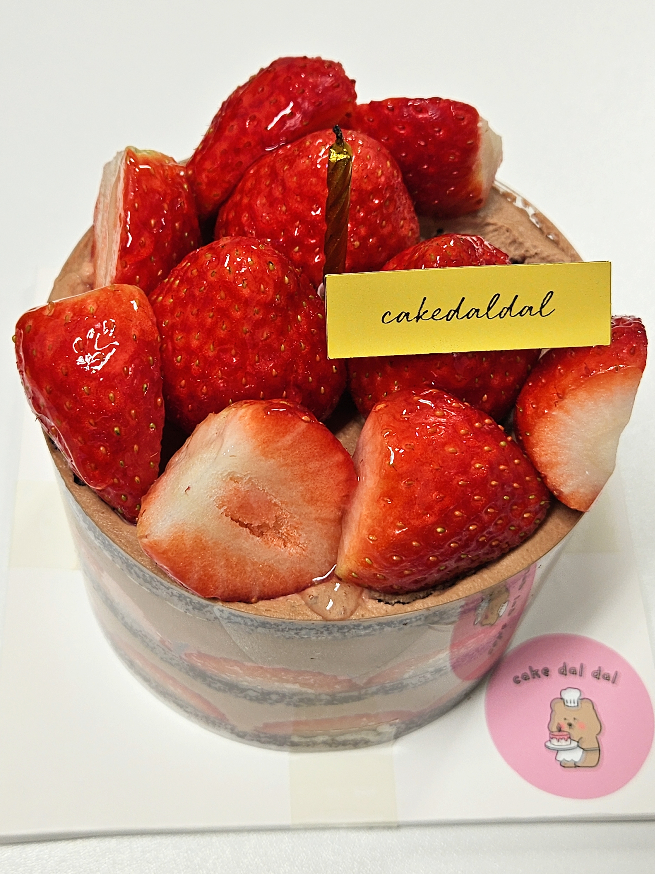 딸기를 가득 샌드 하여 만들었다는 #생딸기초코생크림케이크
