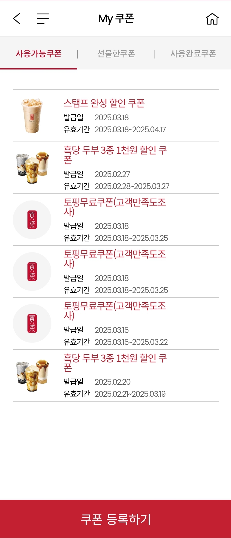 신메뉴라 1잔 당 스탬프 적립도 3개씩 해주고, 설문조사 참여 시 무료토핑쿠폰도 제공돼서 지금 아주 스탬프랑 쿠폰 부자돼서 좋음 🤣
