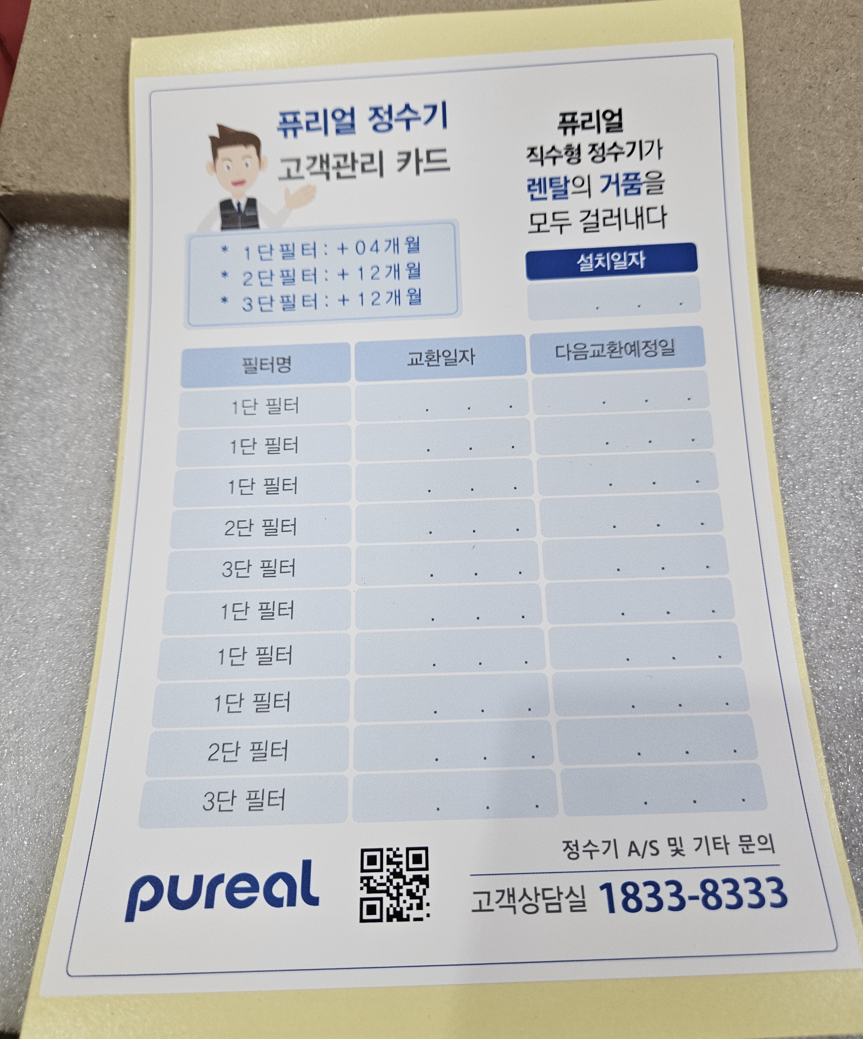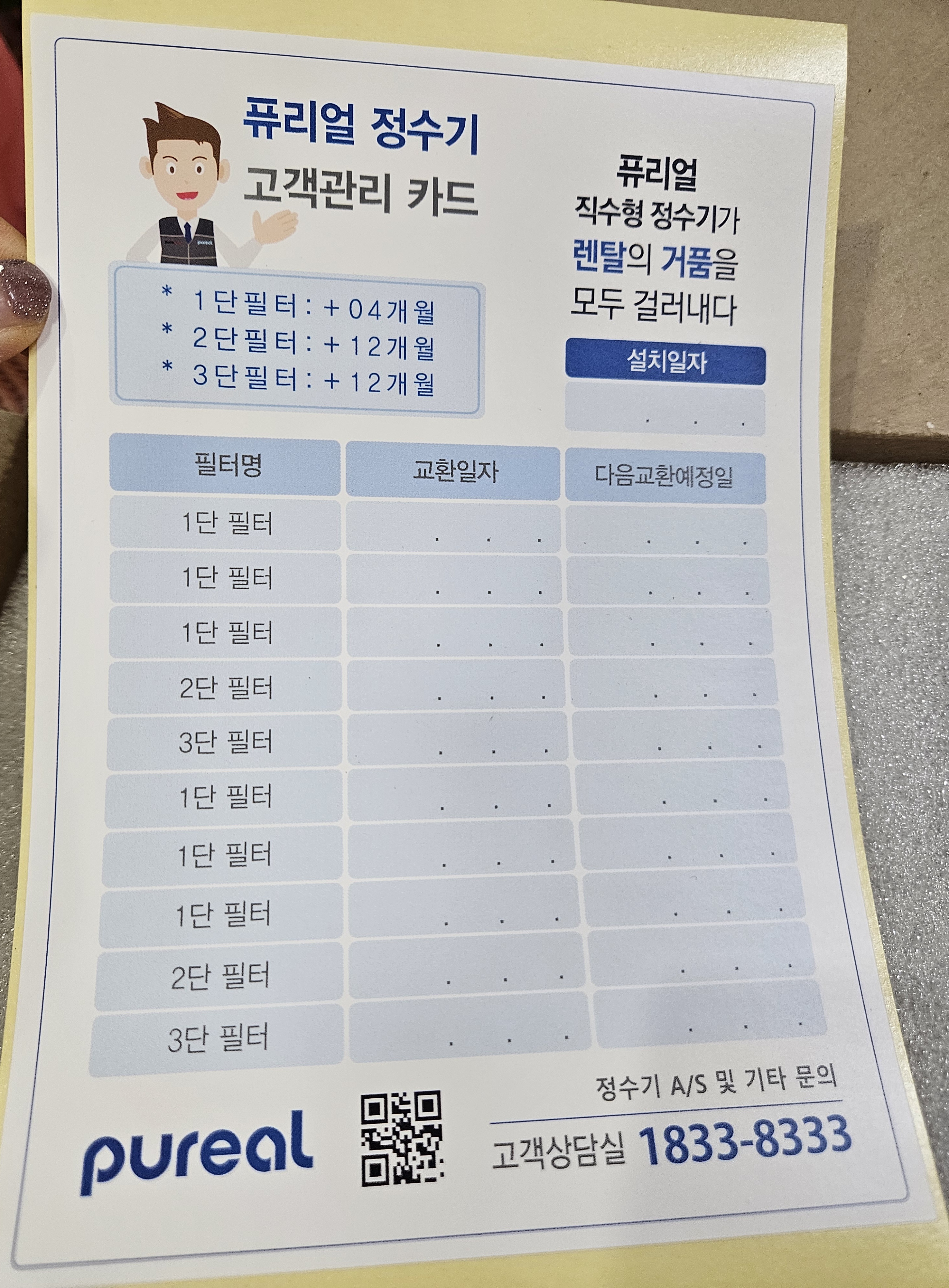 이번에도 알림 메시지 받고 조만간 교체해야겠다 싶어서 엄마한테 보관 중인 필터 찾아달라고 말씀드렸는데 4개월마다 교체하는 1번 필터만 남았다고 해서