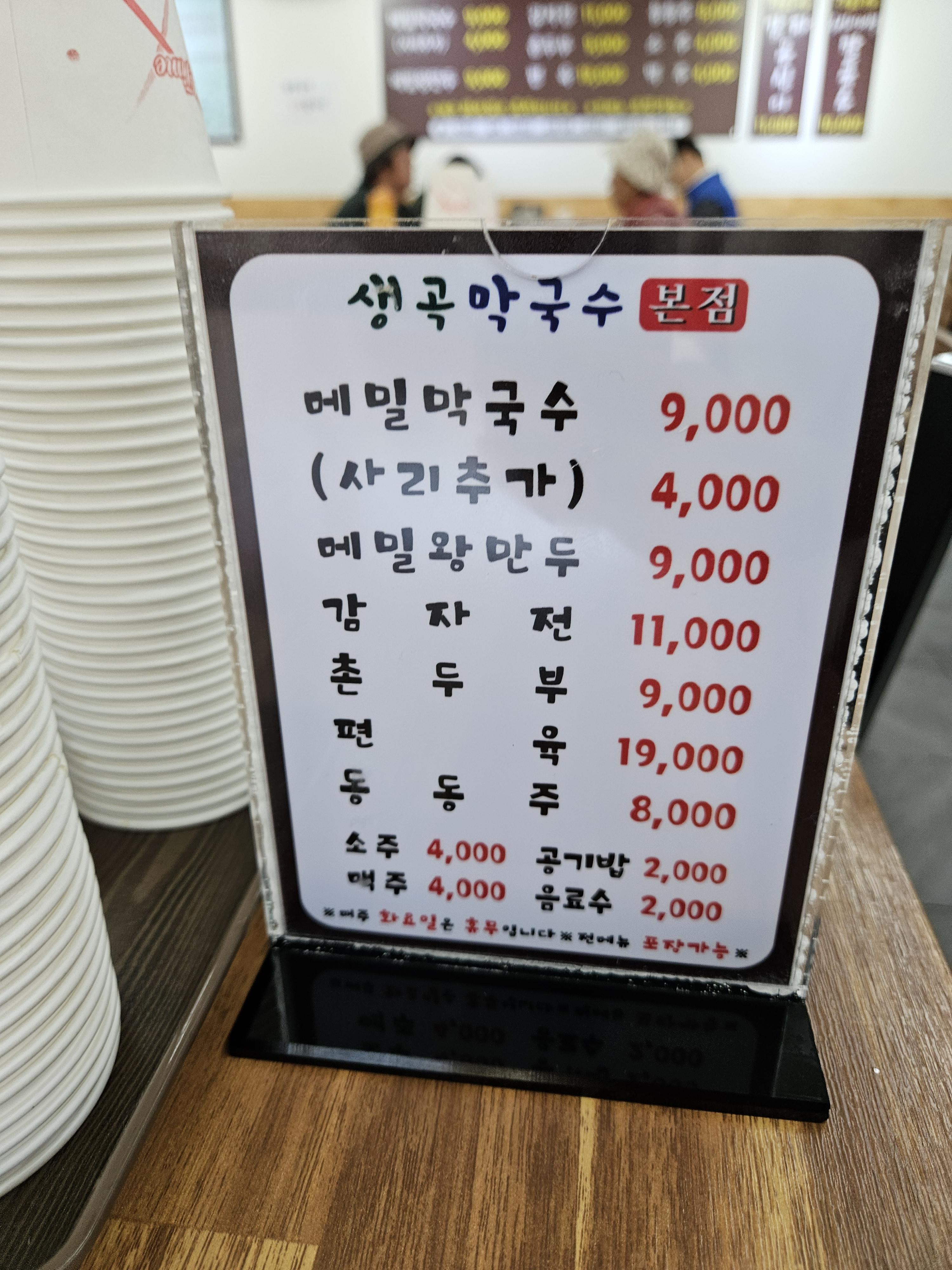막국수가 금세 나오는 메뉴라 그런지 주문 후 메뉴 취소나 자리이동은 불가하다고 하니 참고.