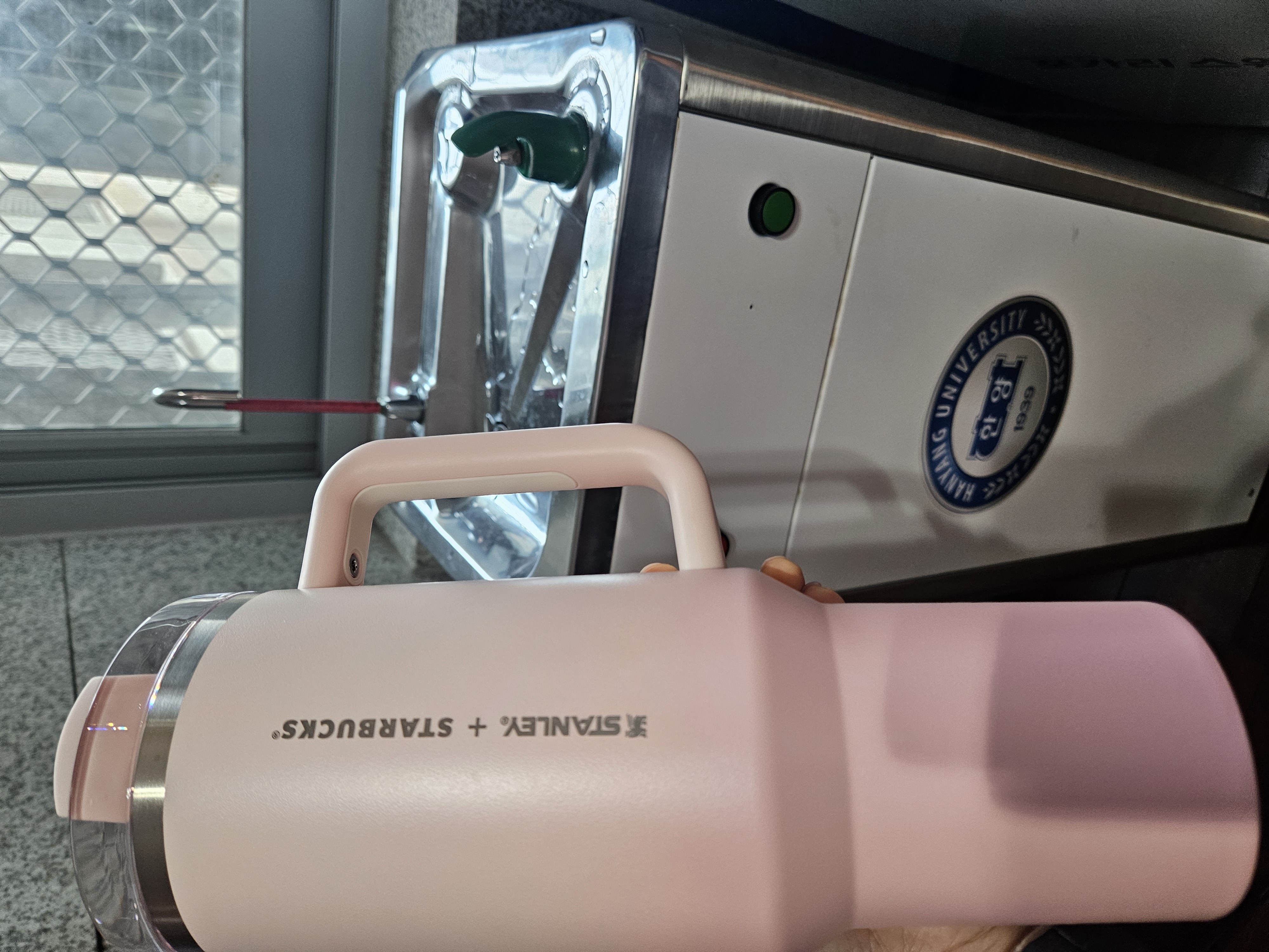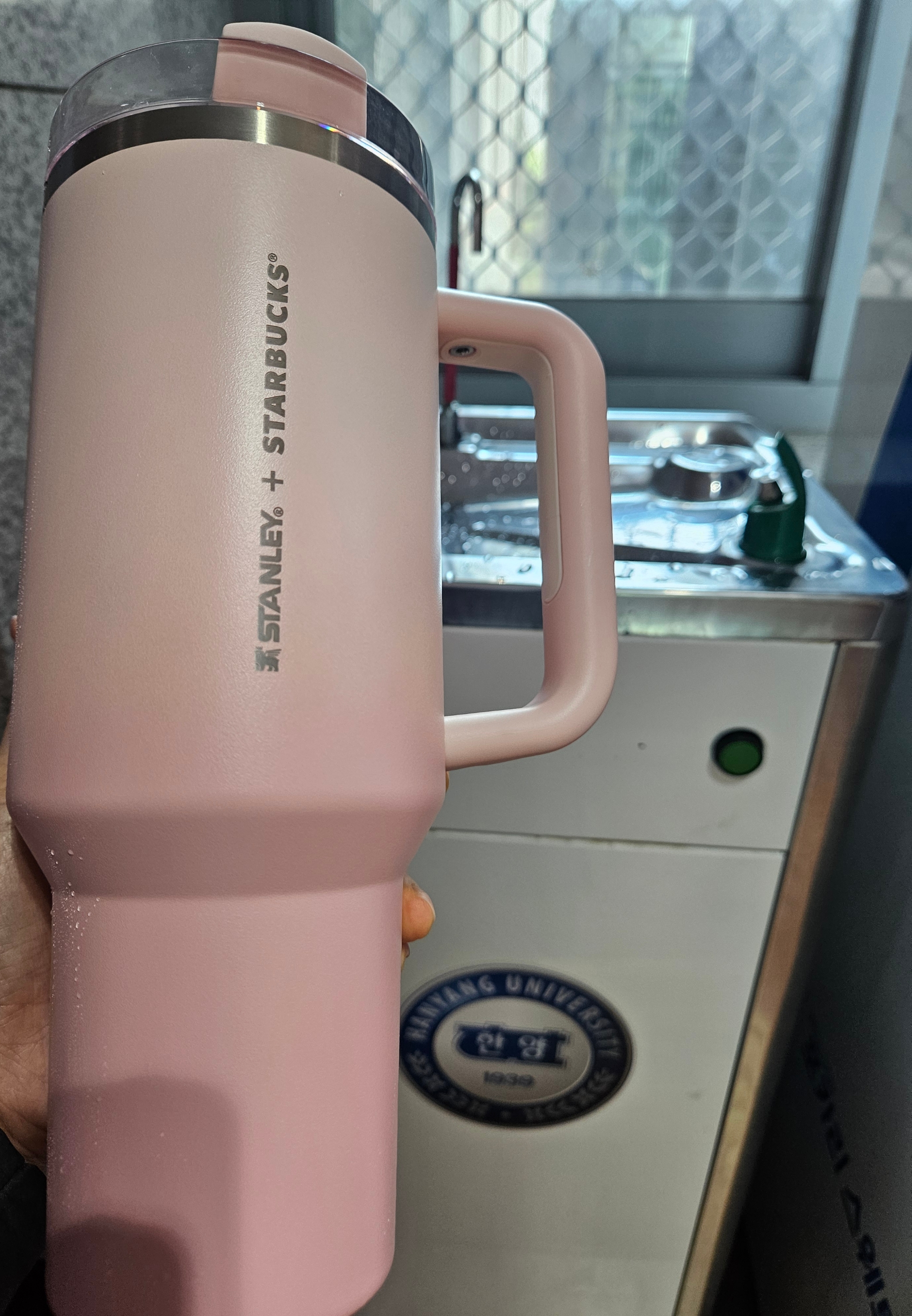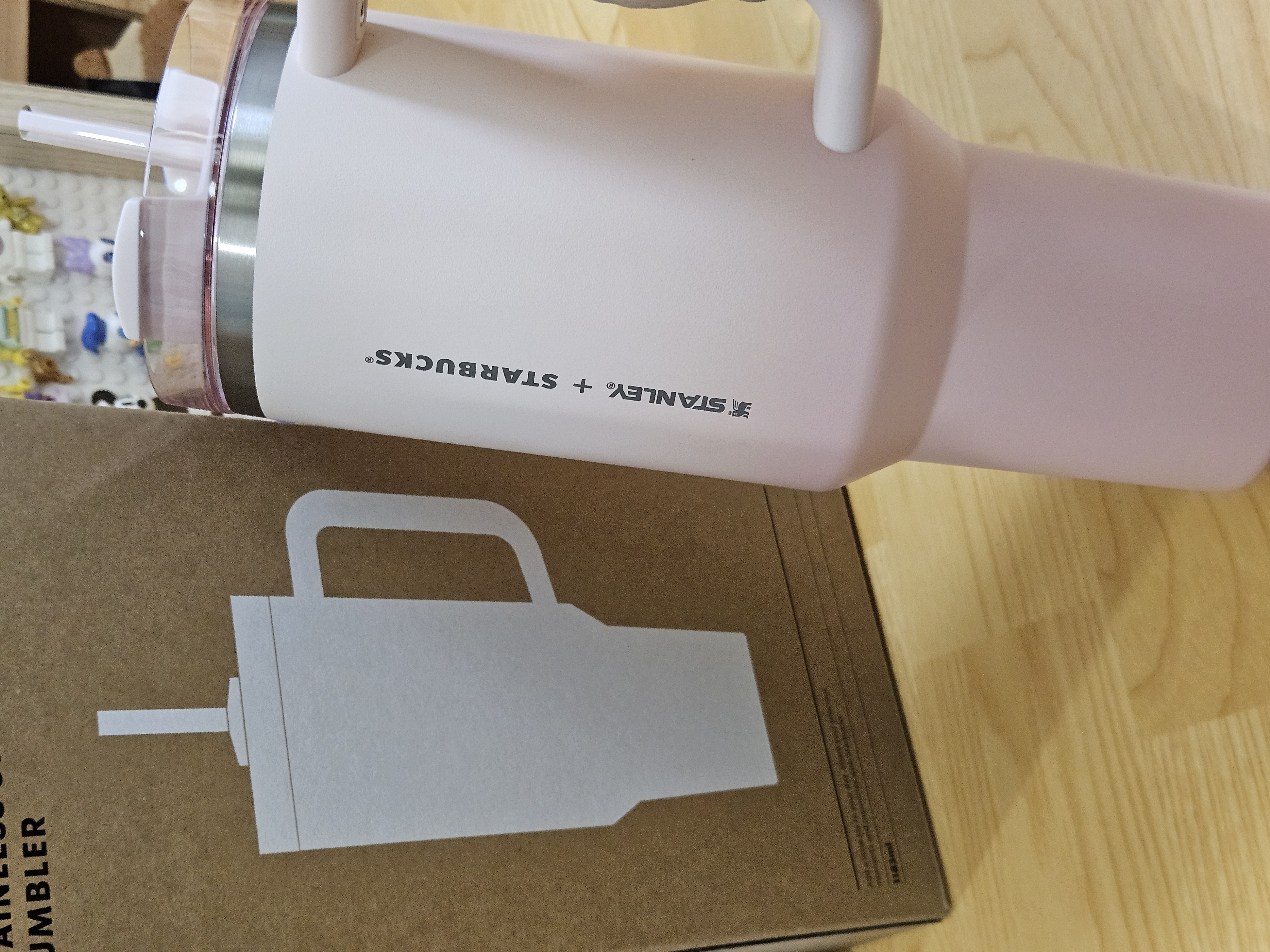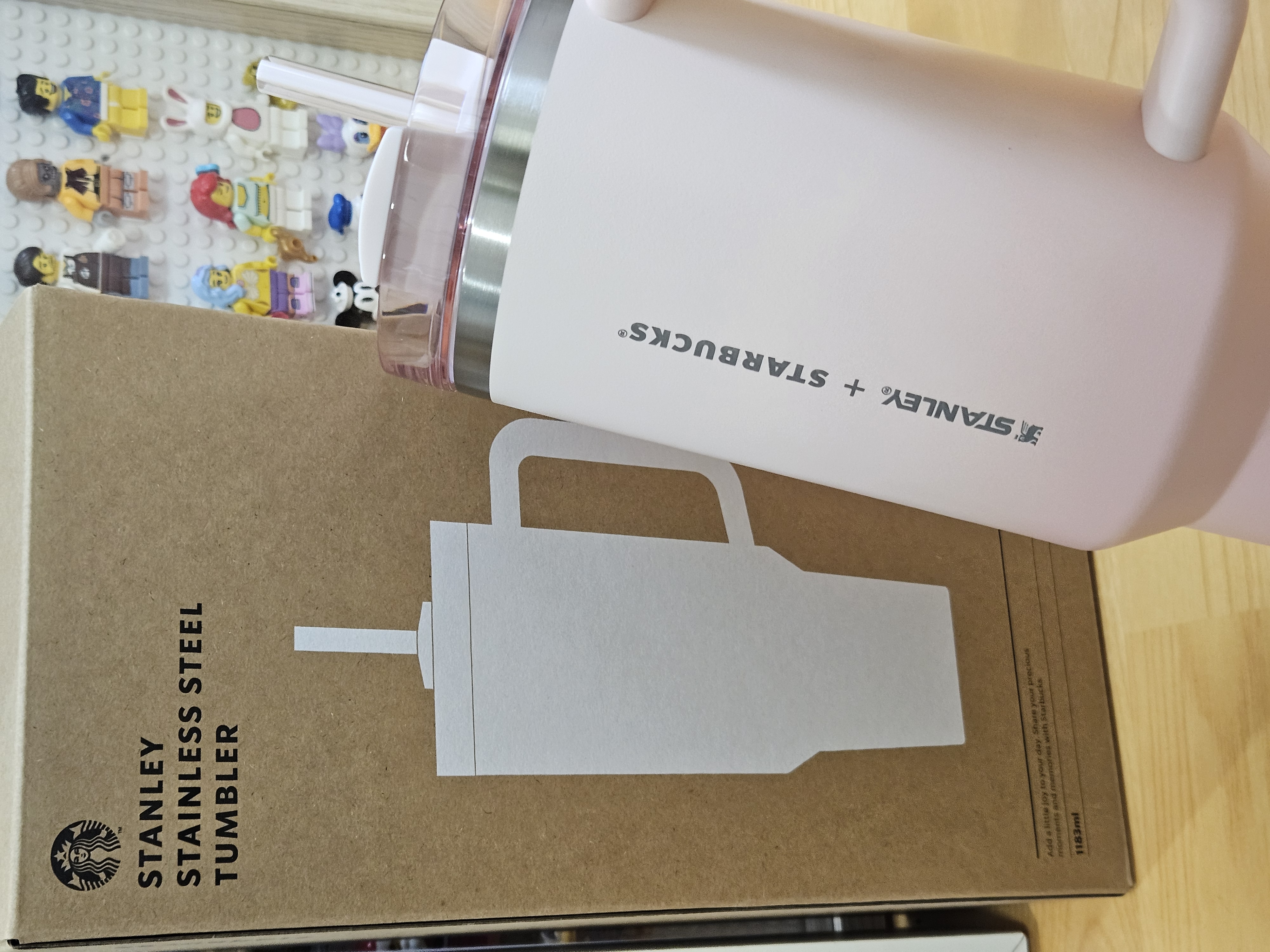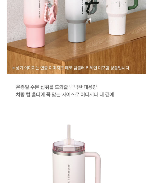 작은 폰트, 세로방향으로 인쇄된 스타벅스 + 스탠리 로고가 더 깔끔해 보이고 핑크빛 그라데이션 컬러도 요즘 더 화사하게 사용할 수 있을 것 같아서 스타벅스 SS 스탠리 핑크 켄처 텀블러 1183ml로 골랐음.